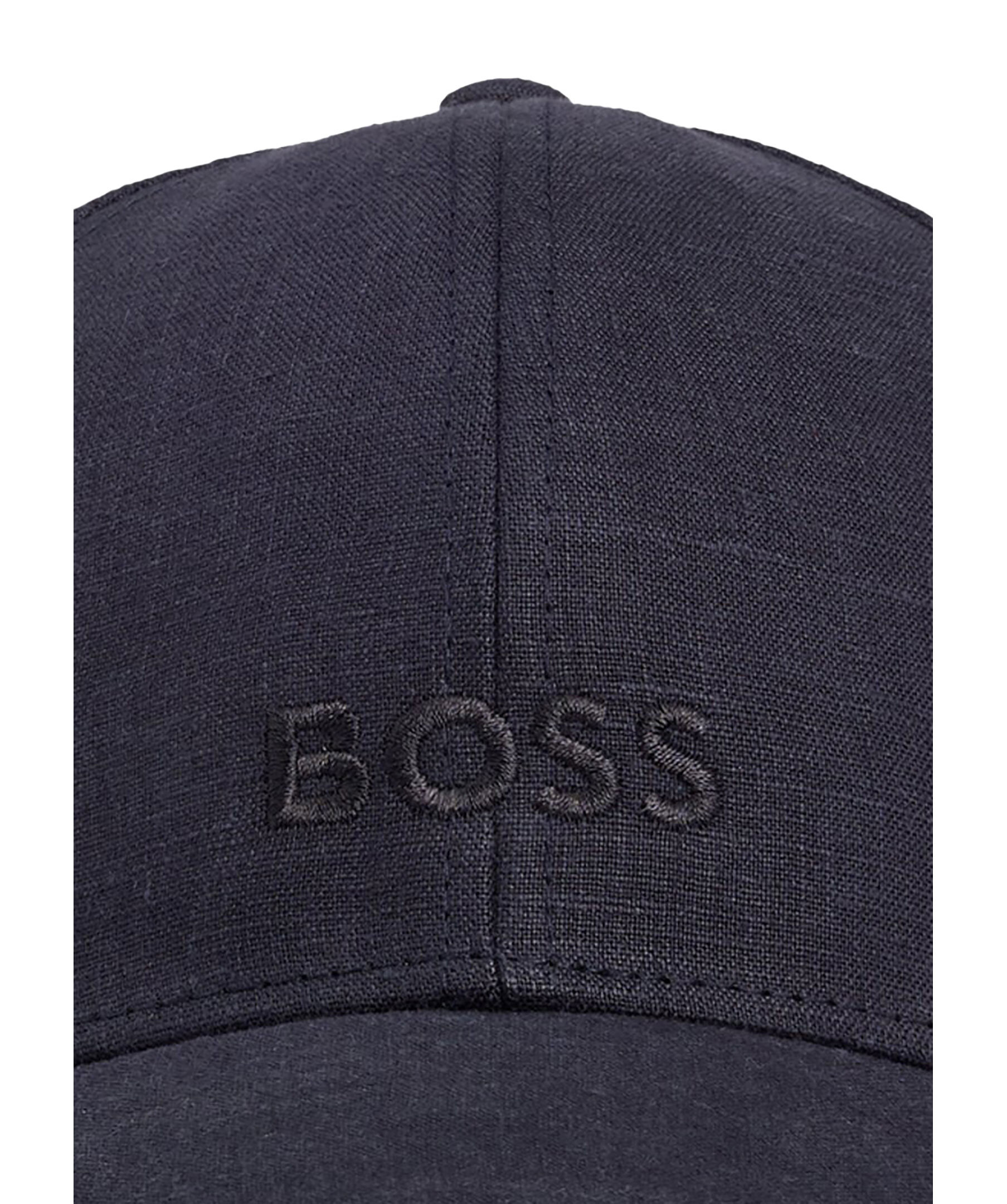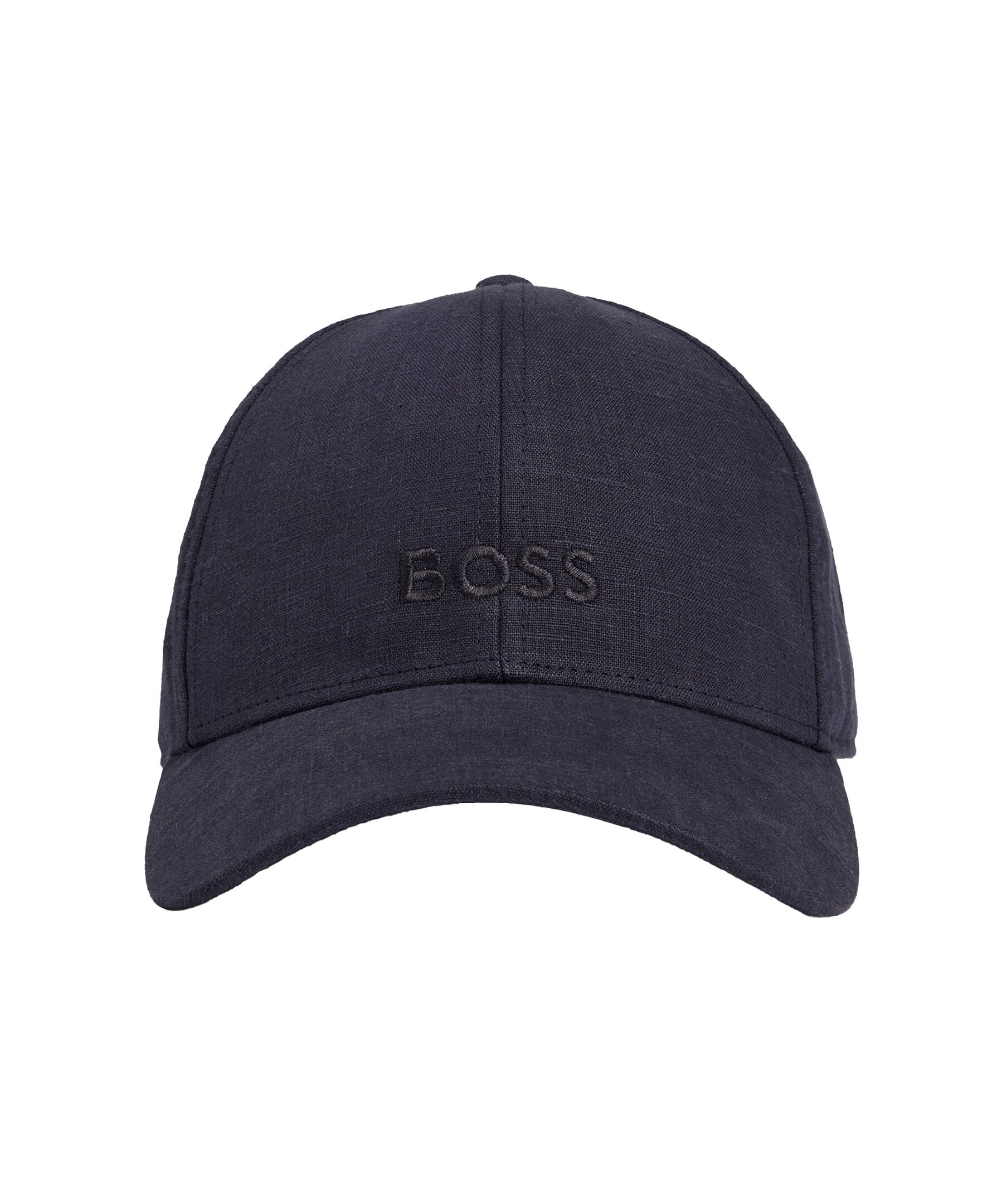 Mörkblå keps från BOSS Black. Kepsen har subtilt broderad logotyp framtill och justerbart spänne baktill. Tillverkad i 100% linne.