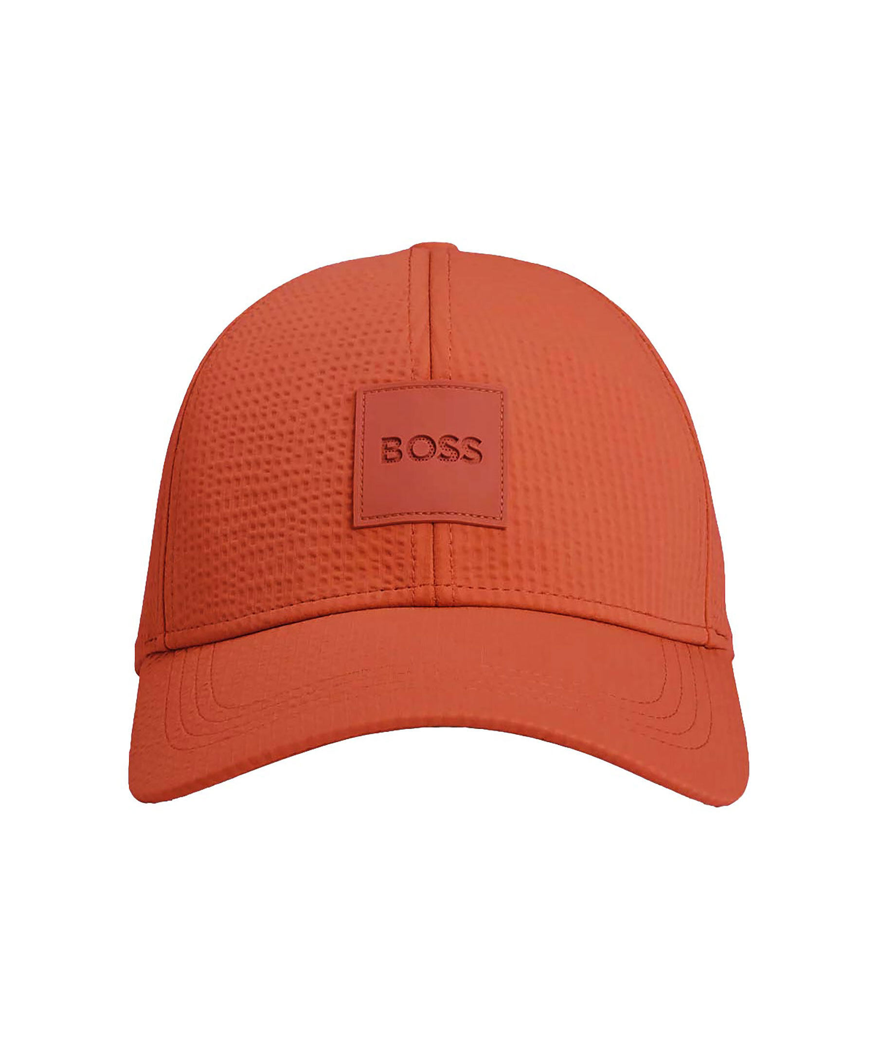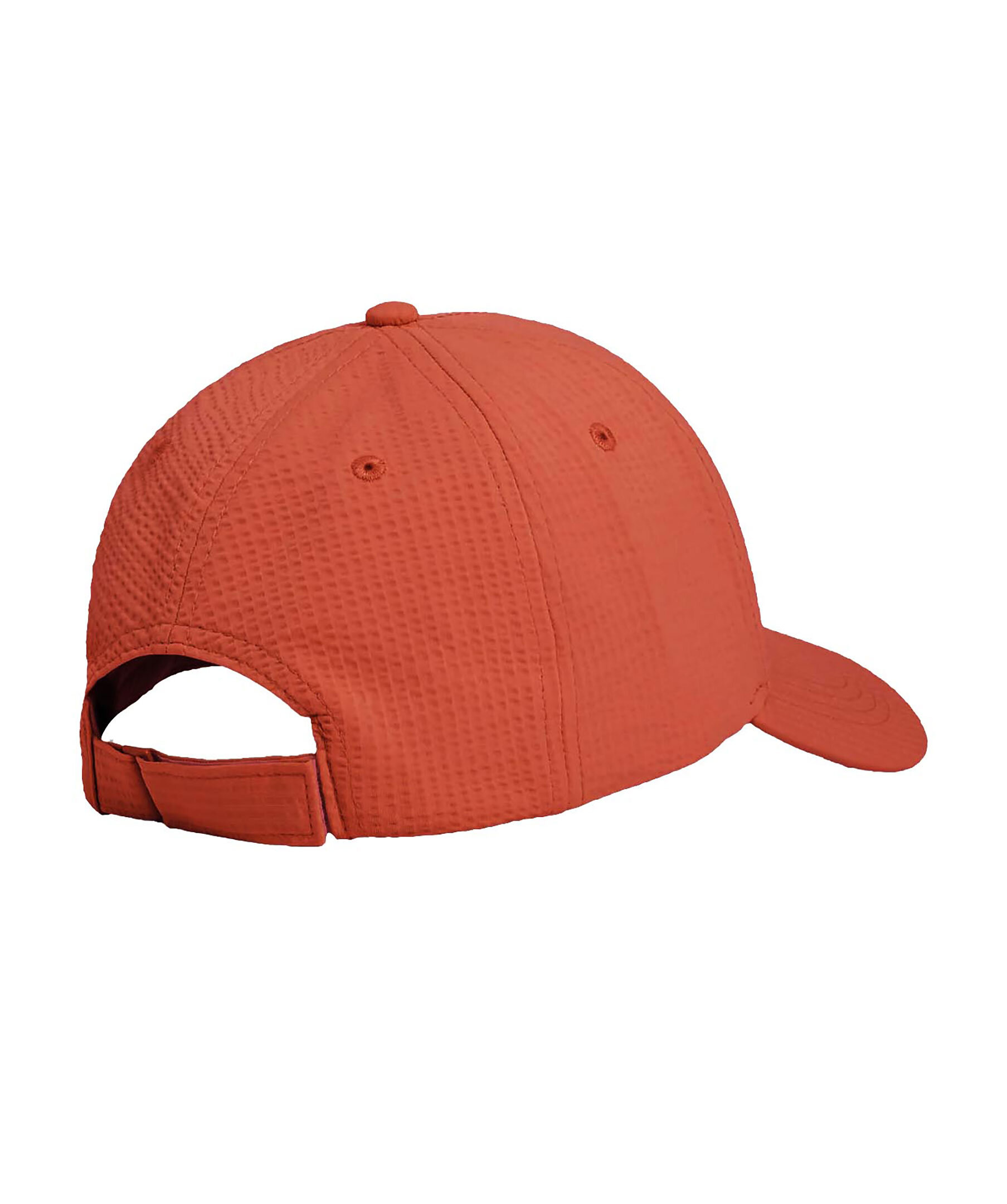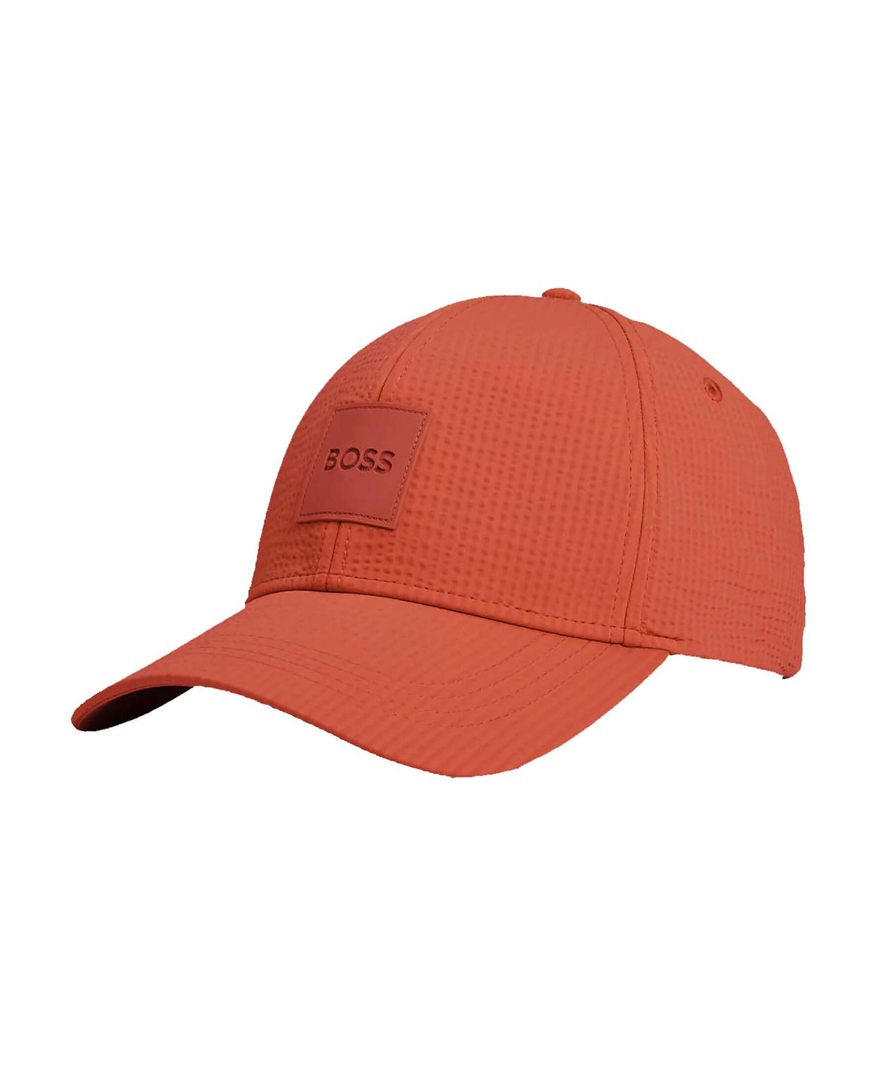 Roströd keps från Boss Black. Kepsen har spänne baktill för justerbar passform, logotyp framtill. Tillverkad av seersucker som är ventilerande.