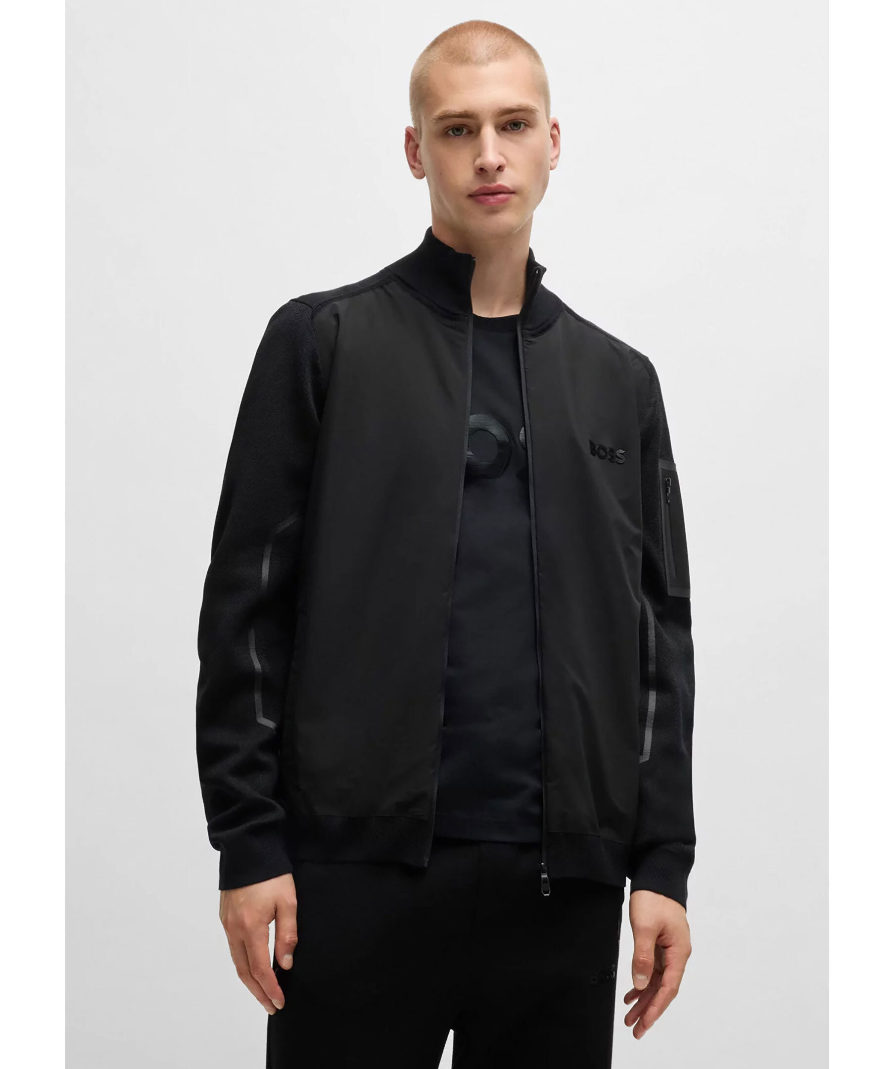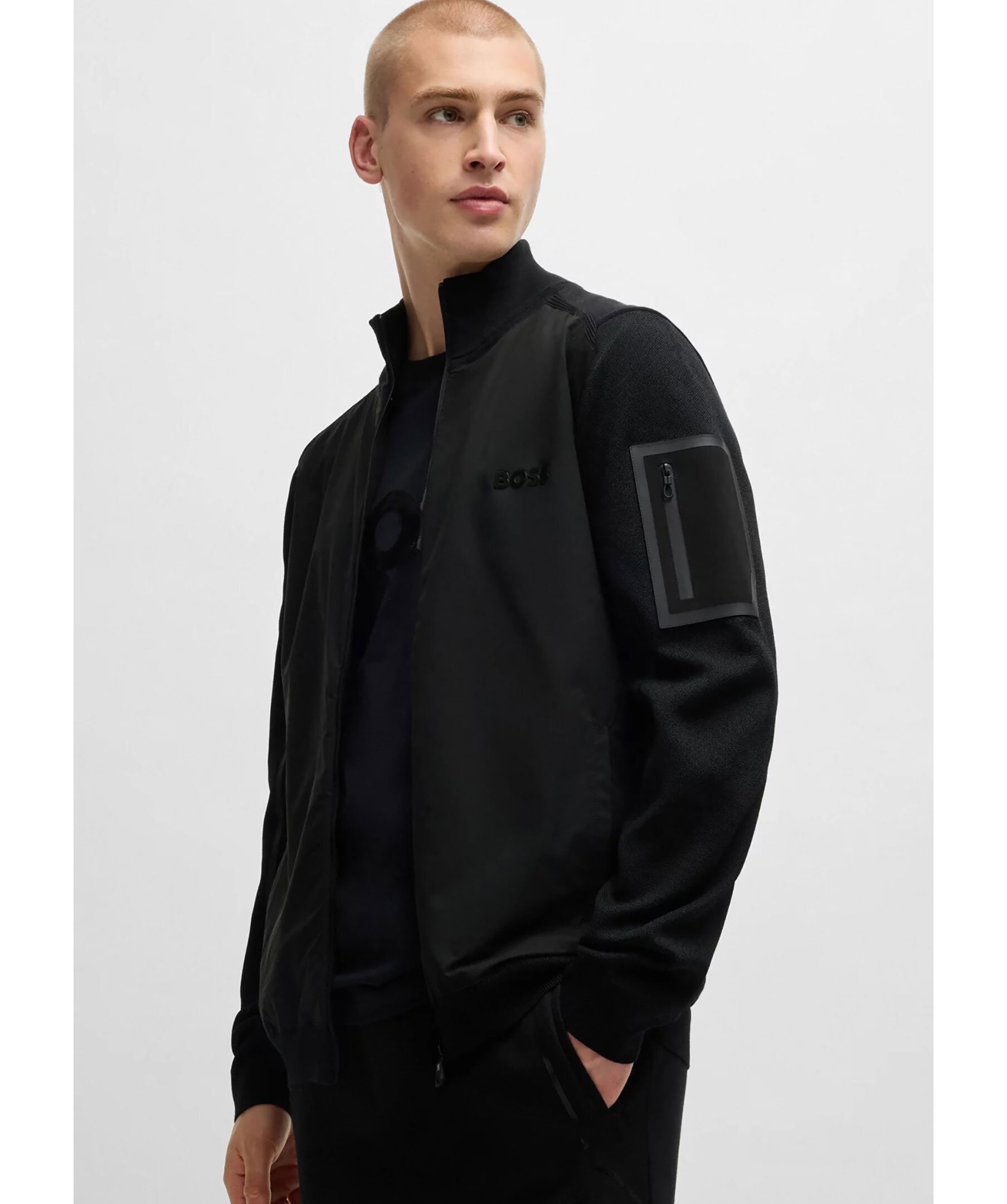 Svart zip-up sweatshirt från BOSS Green. Tröjan stängs med dragkedja och har ståkrage, två sidfickor med dragkedja samt en dragkedjeficka på vänster ärm. Konstrastdetaljer i sidorna samt vid ärmfickan. Tillverkad i en bomullsblandning.