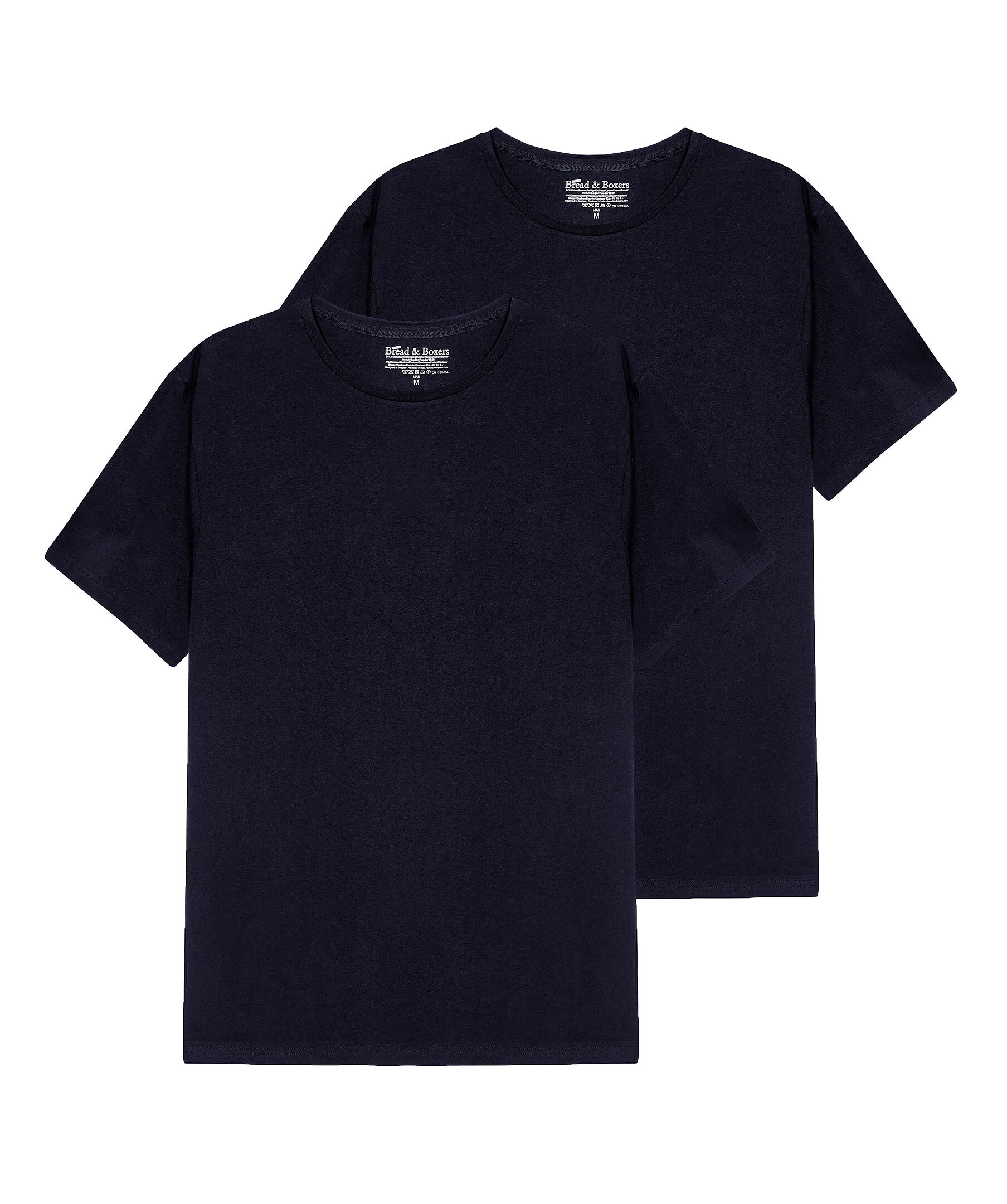 Marinblå, 2-pack bas t-shirt från Bread & Boxers. Gjord i en mjuk ekologisk bomullsblandning.