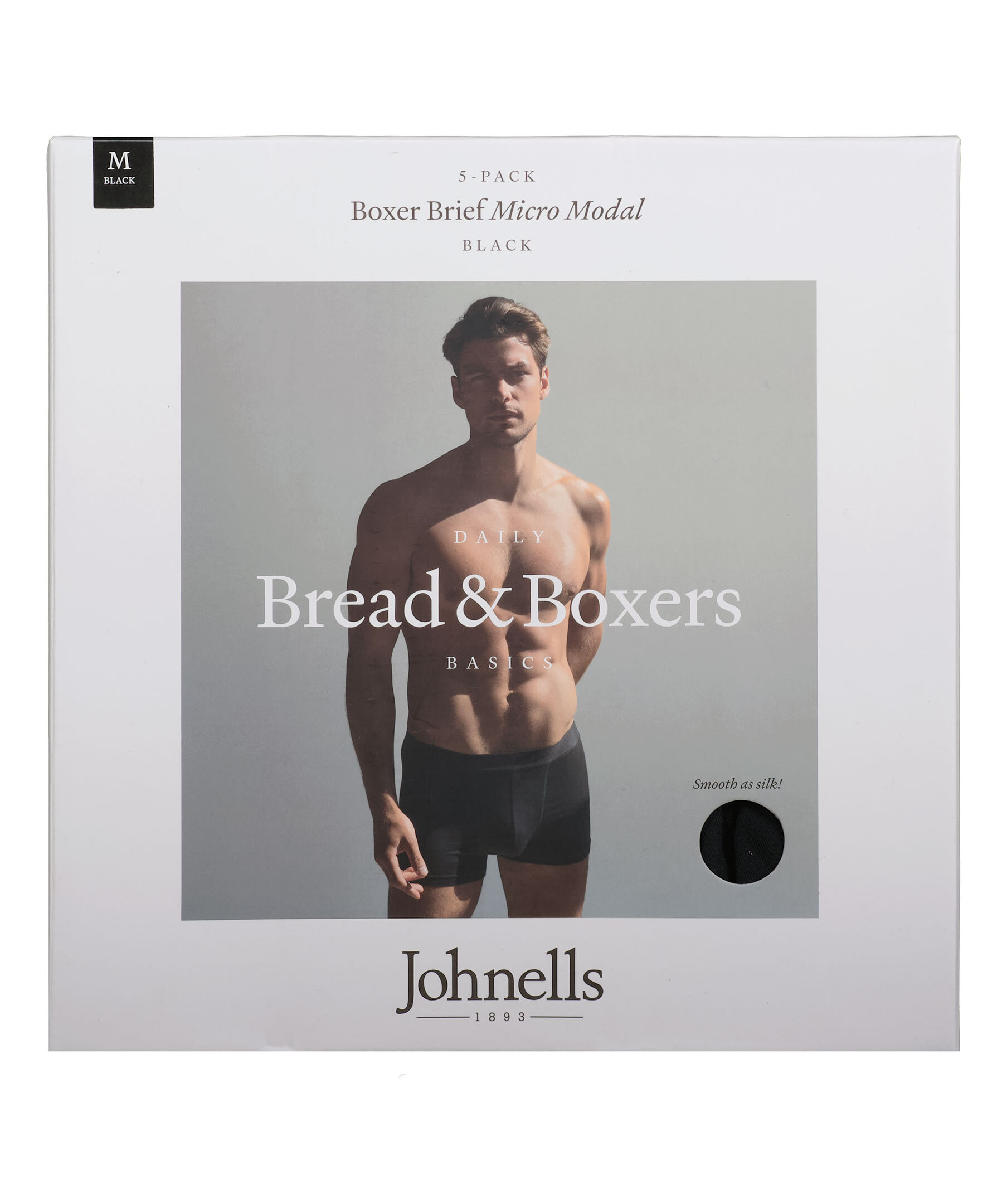 Svarta 5-pack boxer brief kalsonger i från Bread & Boxers. Tillverkade i en väldigt mjuk och skön elastisk modal. Elastiskt band i midjan. Limiterat samarbete mellan Bread & Boxers och Best of Brands och säljs endast i Best of Brands butiker.