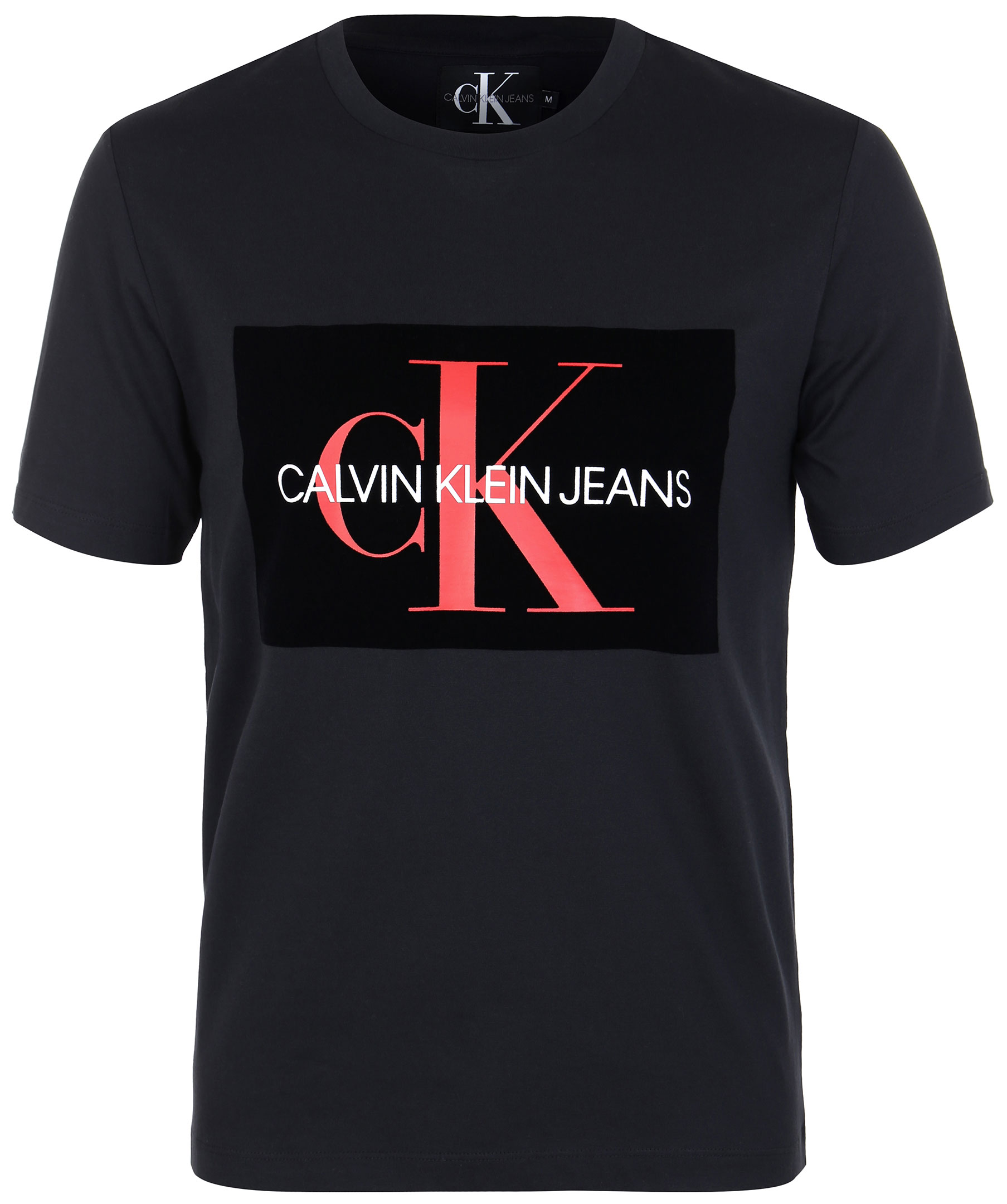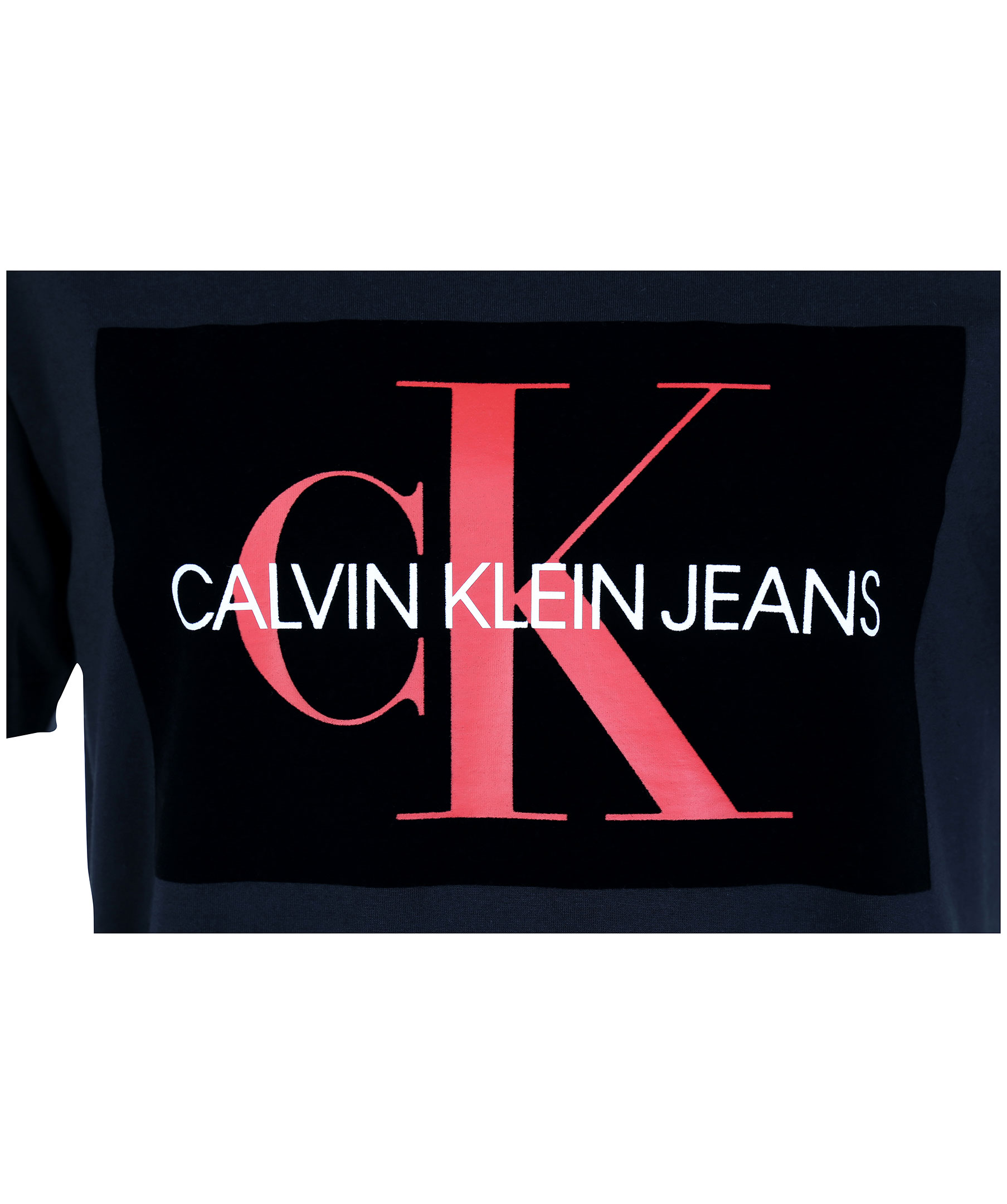 Svart t-shirt från Calvin Klein med svart/rött sammetstryck på bröstet.