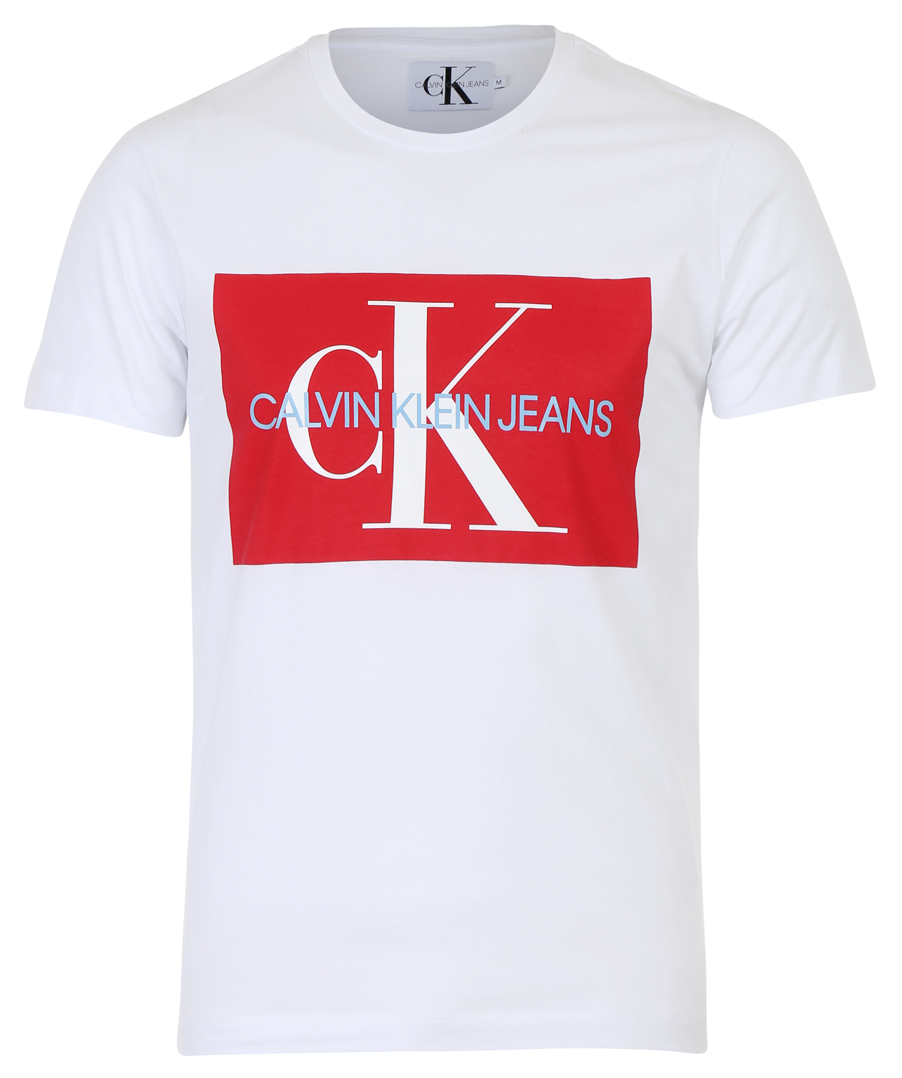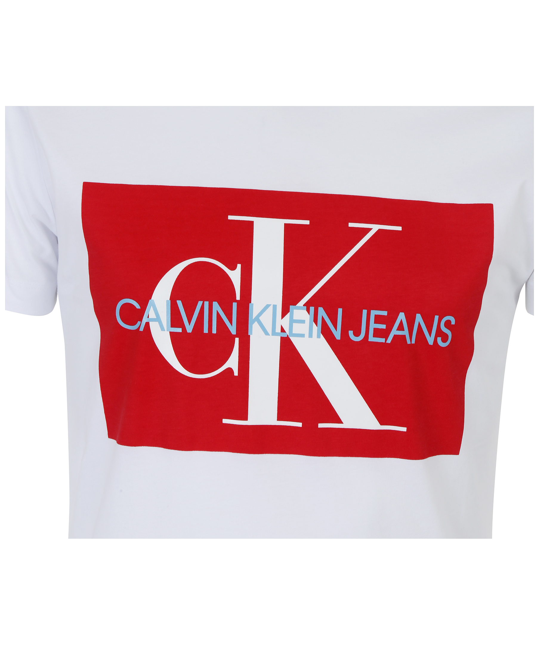Vit t-shirt från Calvin Klein med stort rött tryck på bröstet.