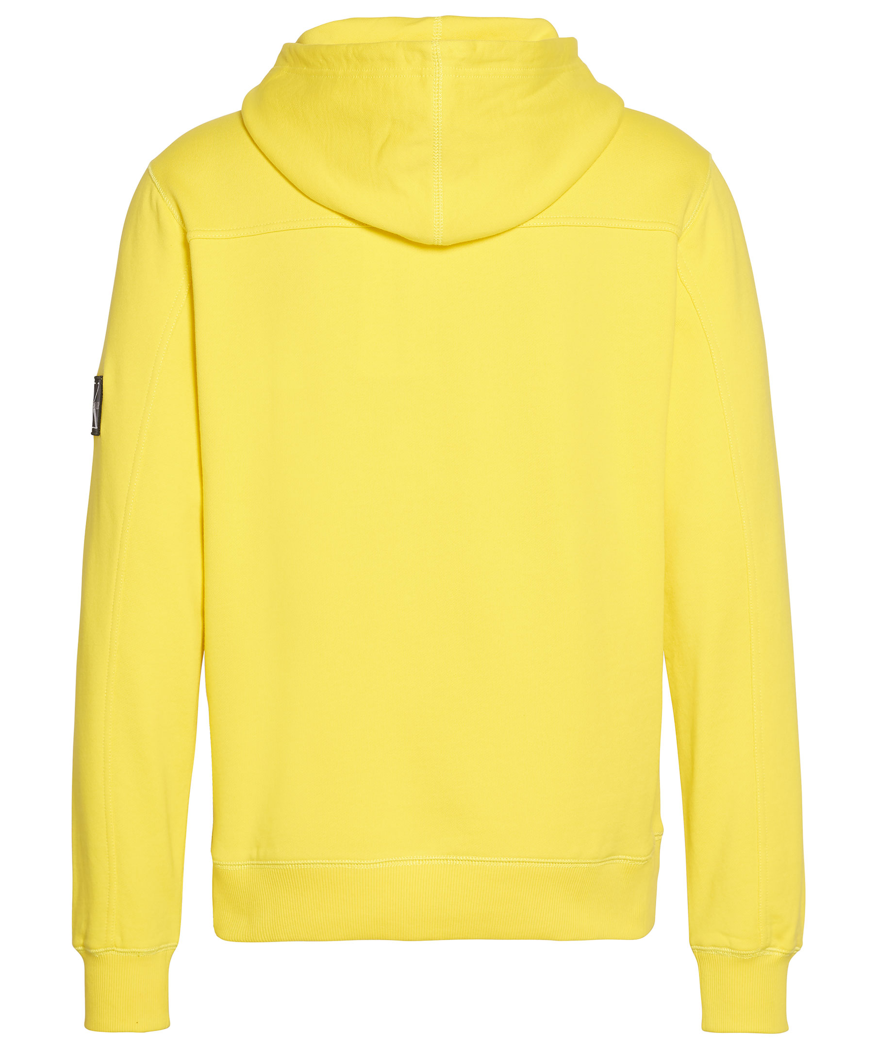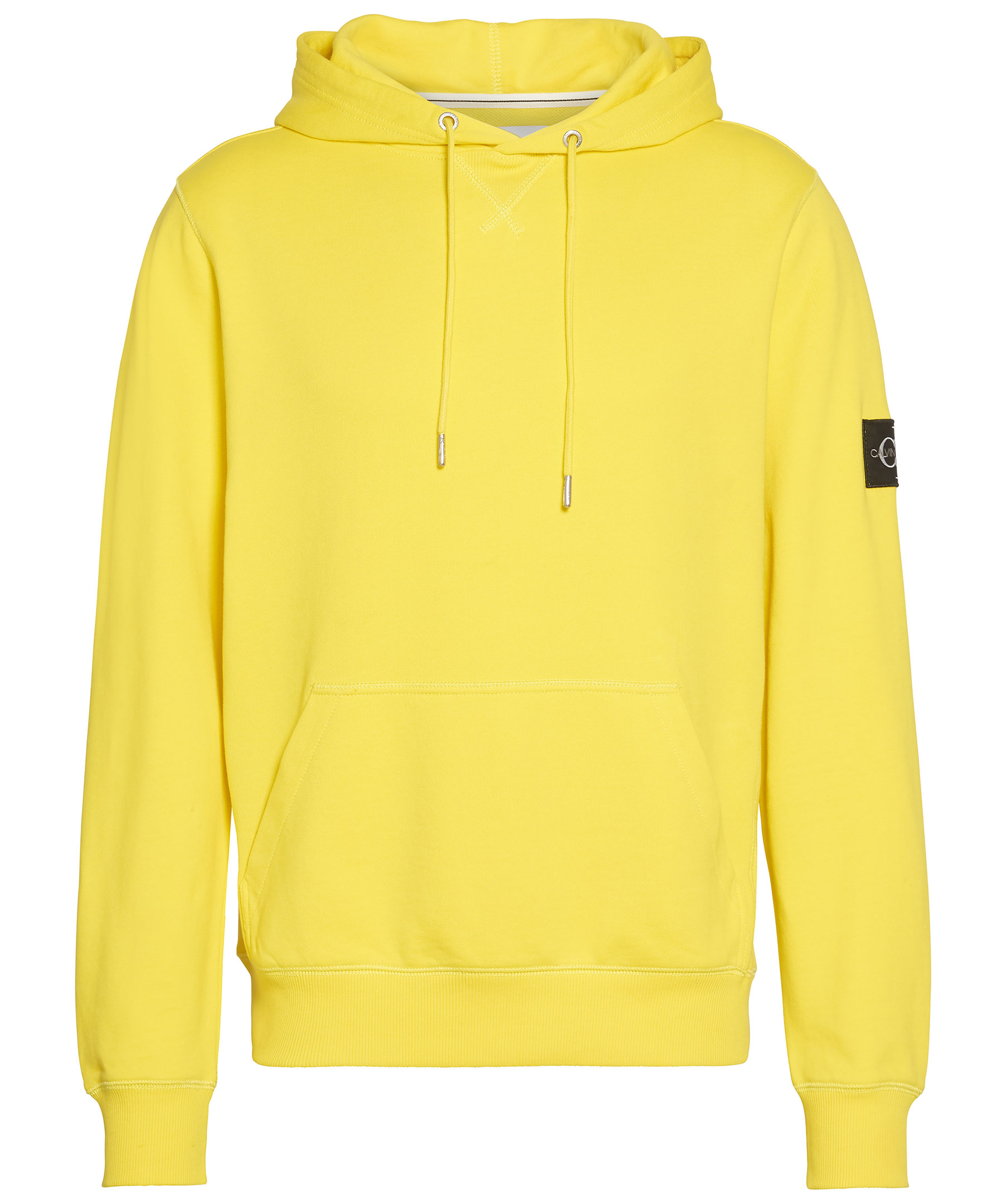 Gul hoodie från Calvin Klein. Patch med logotyp på vänster ärm. Snörning i luvan, muddar i ärmslut och plaggslut. Tillverkad i 100% bomull.