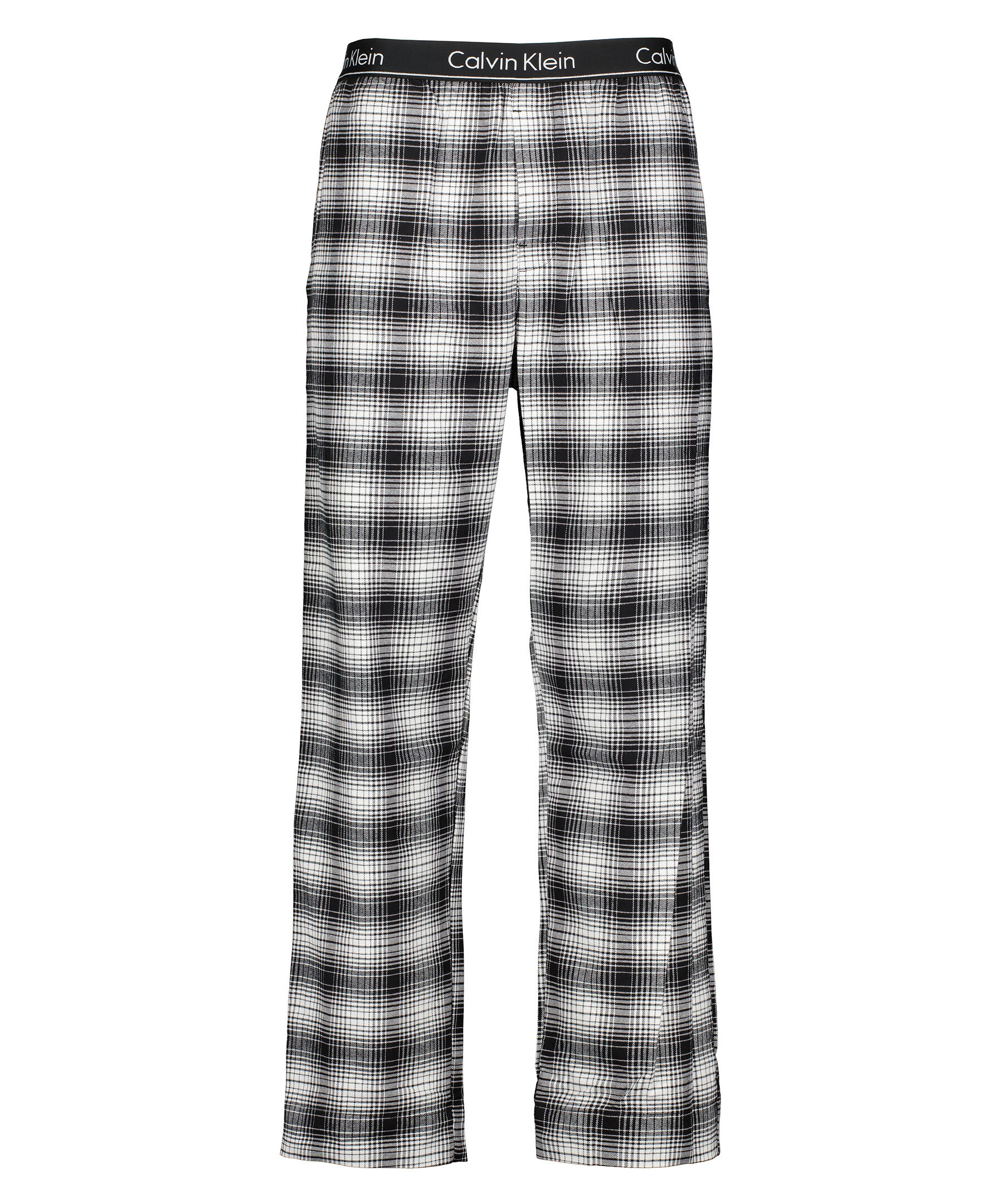 Svart och vit rutiga pyjamasbyxor från Calvin Klein. Svart mudd med vita logotyper i midjan. Två fickor framtill, gylf med knapp och raka ben. Tillverkade i stretchig bomull.