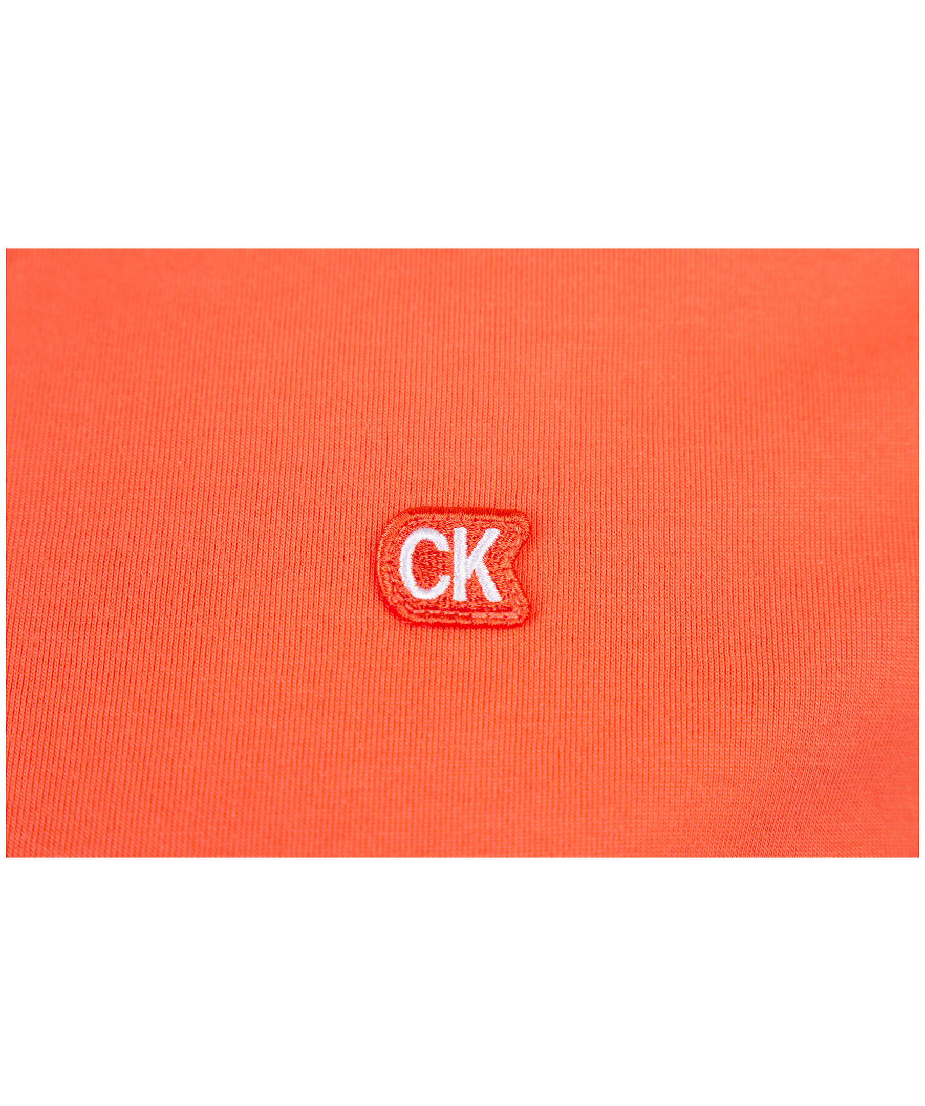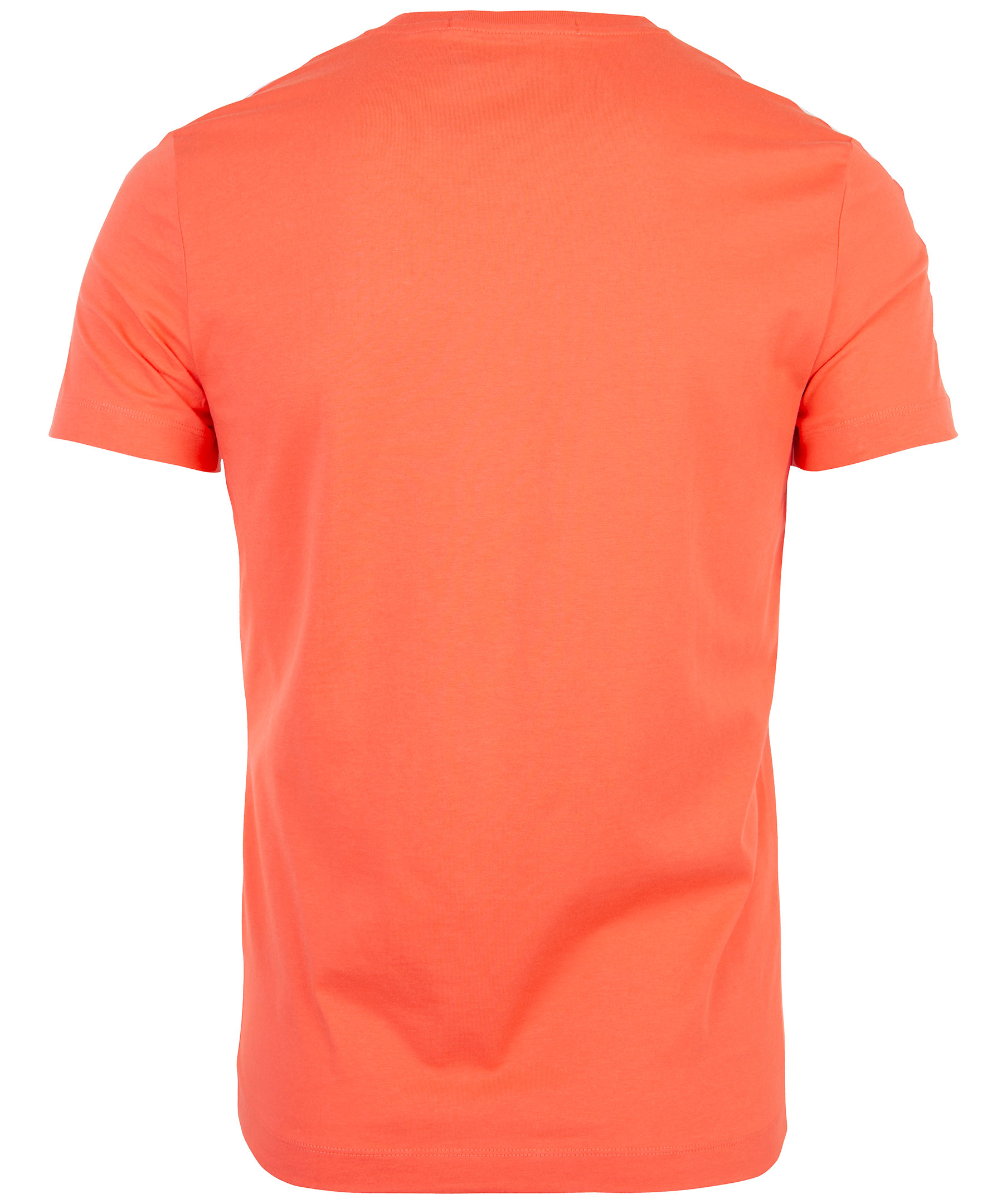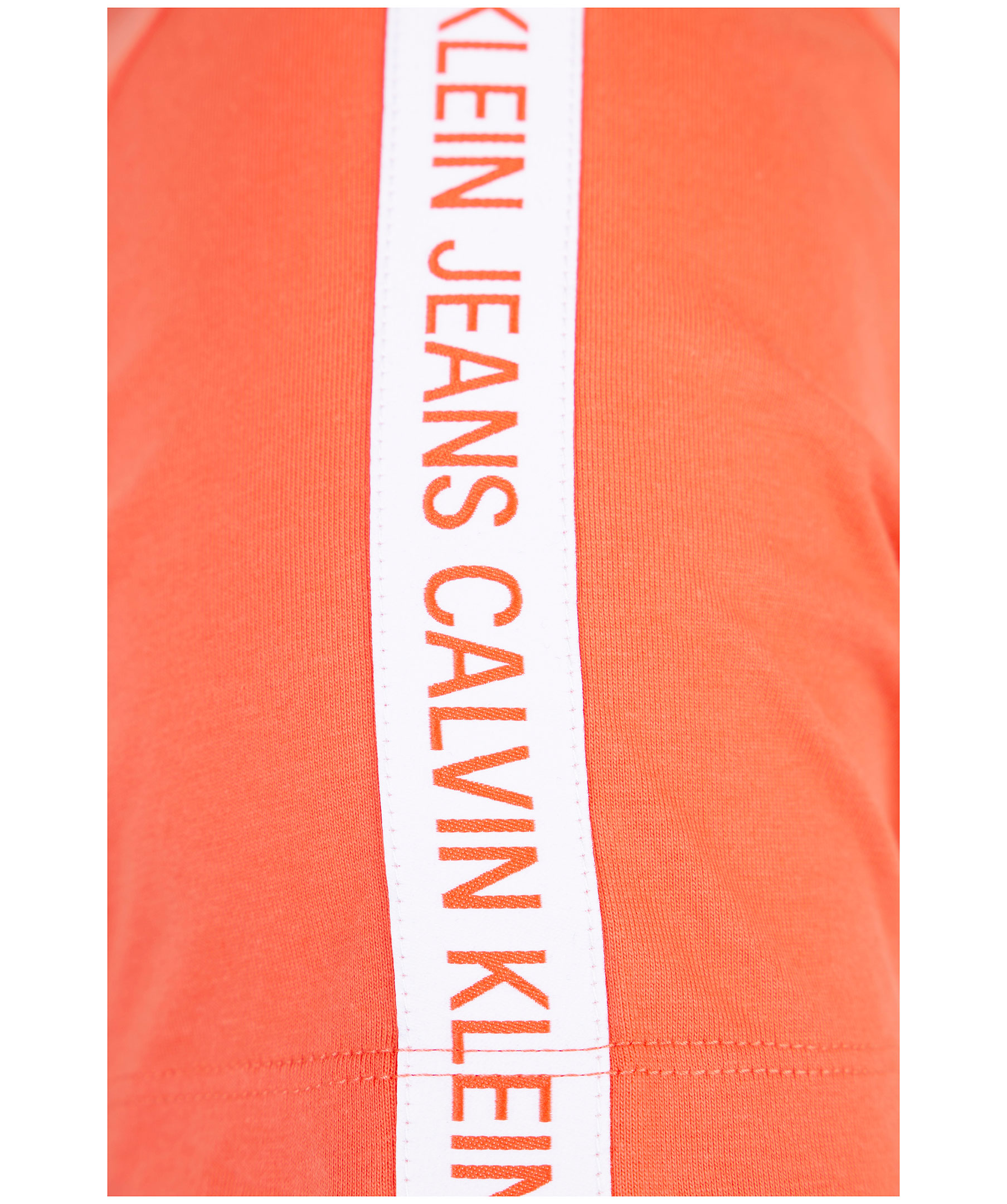 Korallfärgad t-shirt från Calvin Klein som pryds med vita revärer med logotyp längs ärmarna. Liten applikation på bröstet. Gjord i skön bomull.