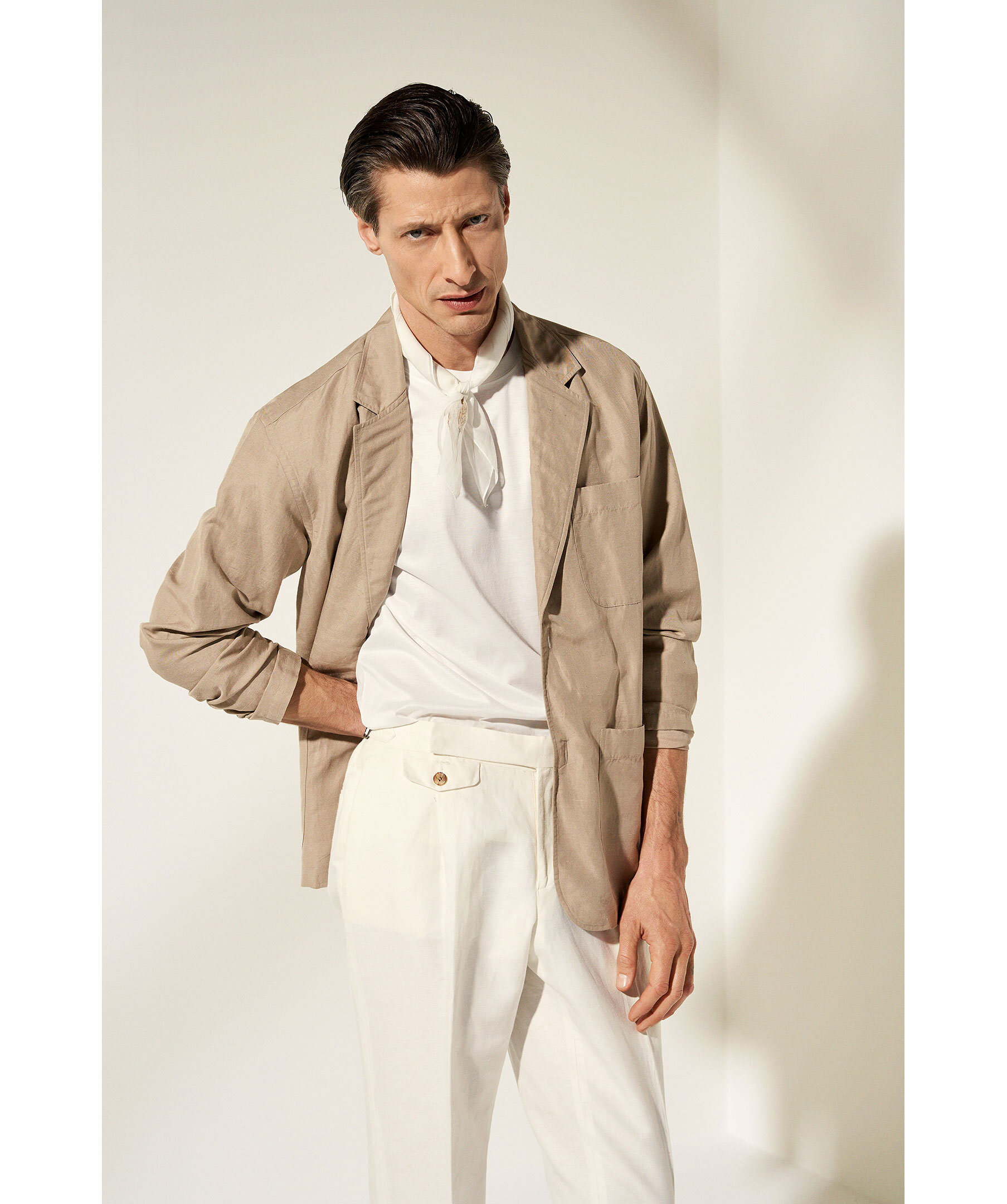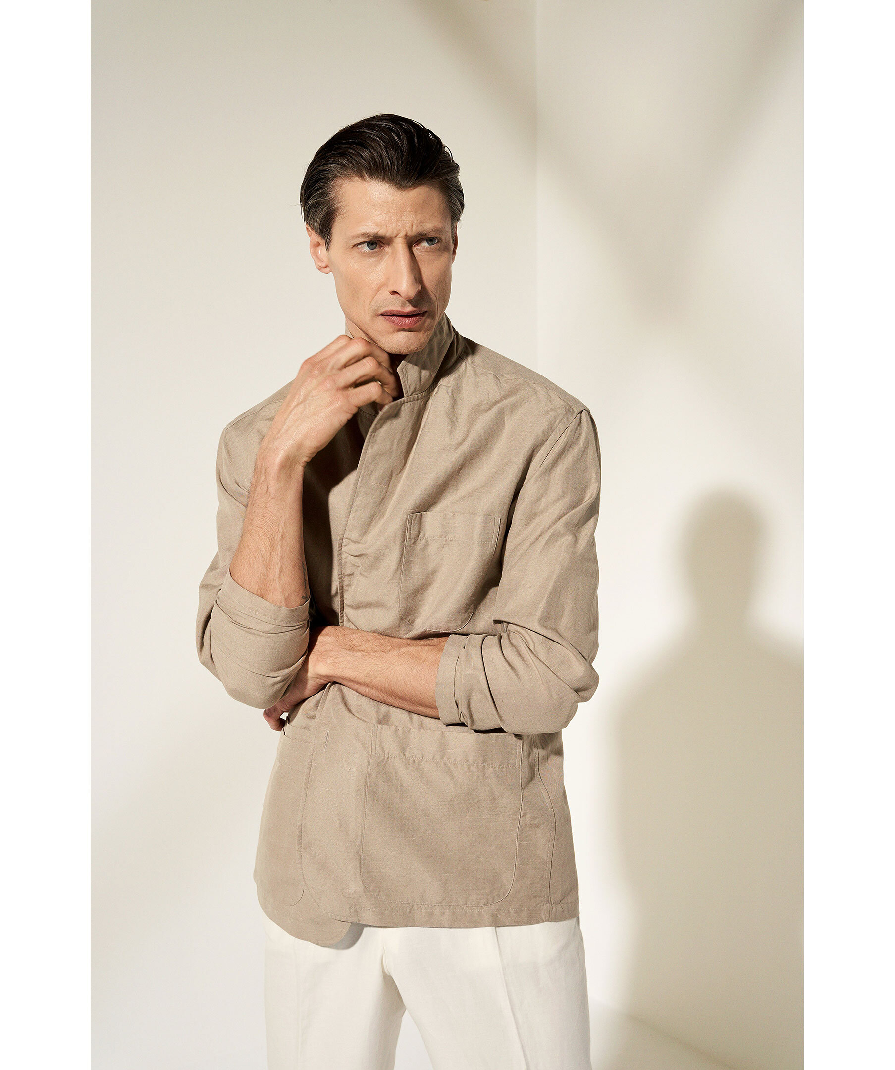 En lyxig kombination av skjorta och kavaj i bomull, linne och siden. Ett hybridplagg som hämtar sin elegans från den exklusiva kavajen och sin mångsidighet från överskjortan. Byt ut den klassiska kavajen eller ta jeans- och sneakers-stilen till en ny nivå.