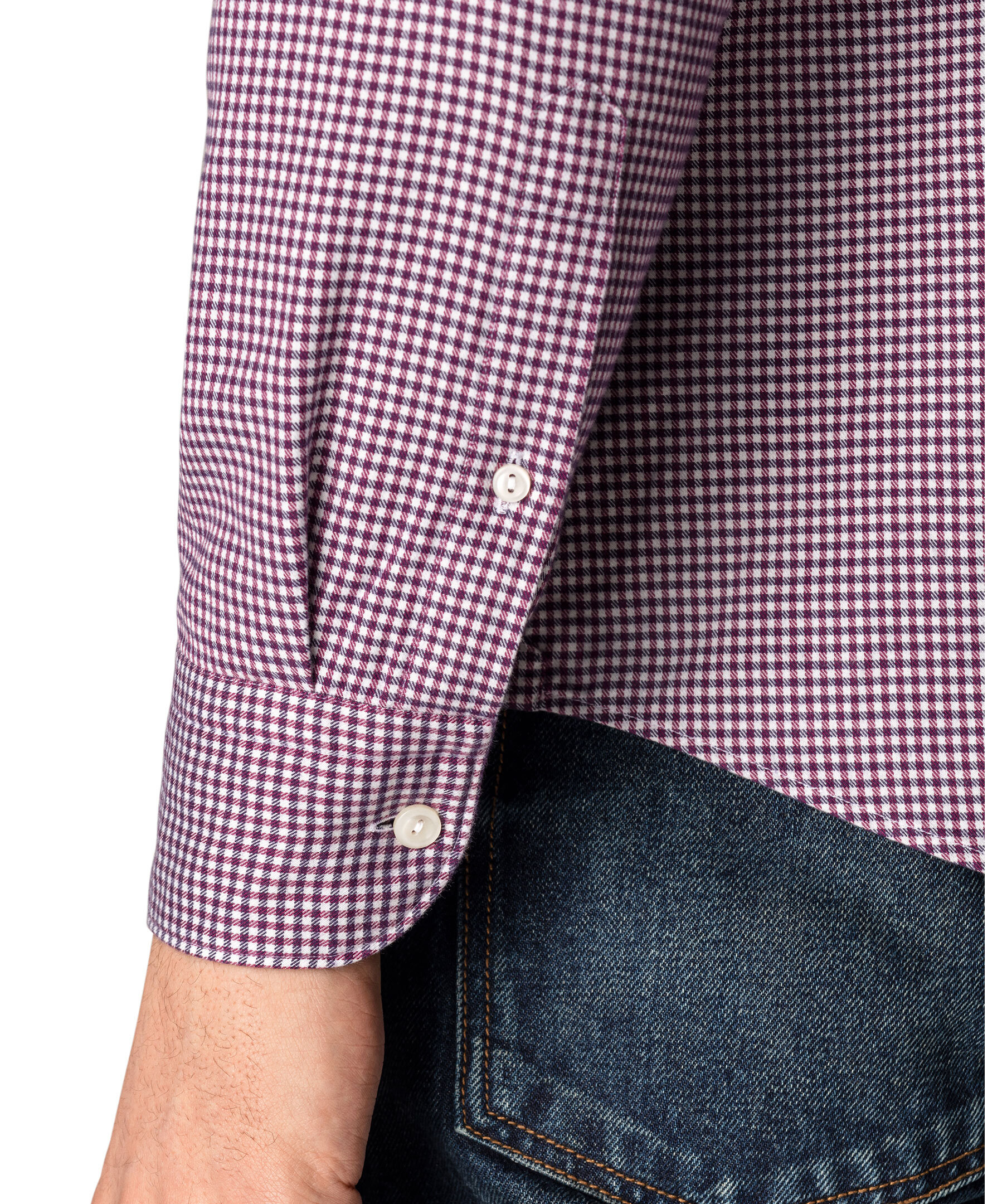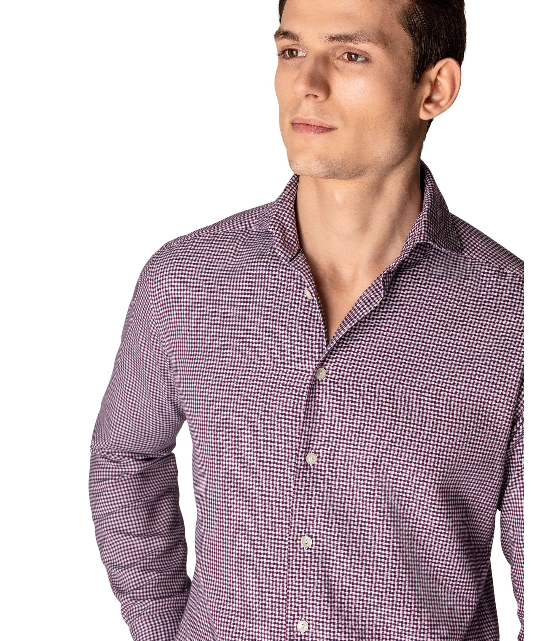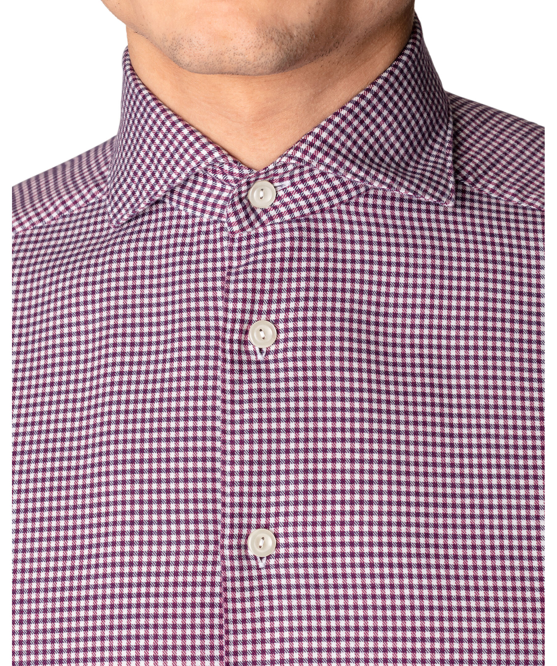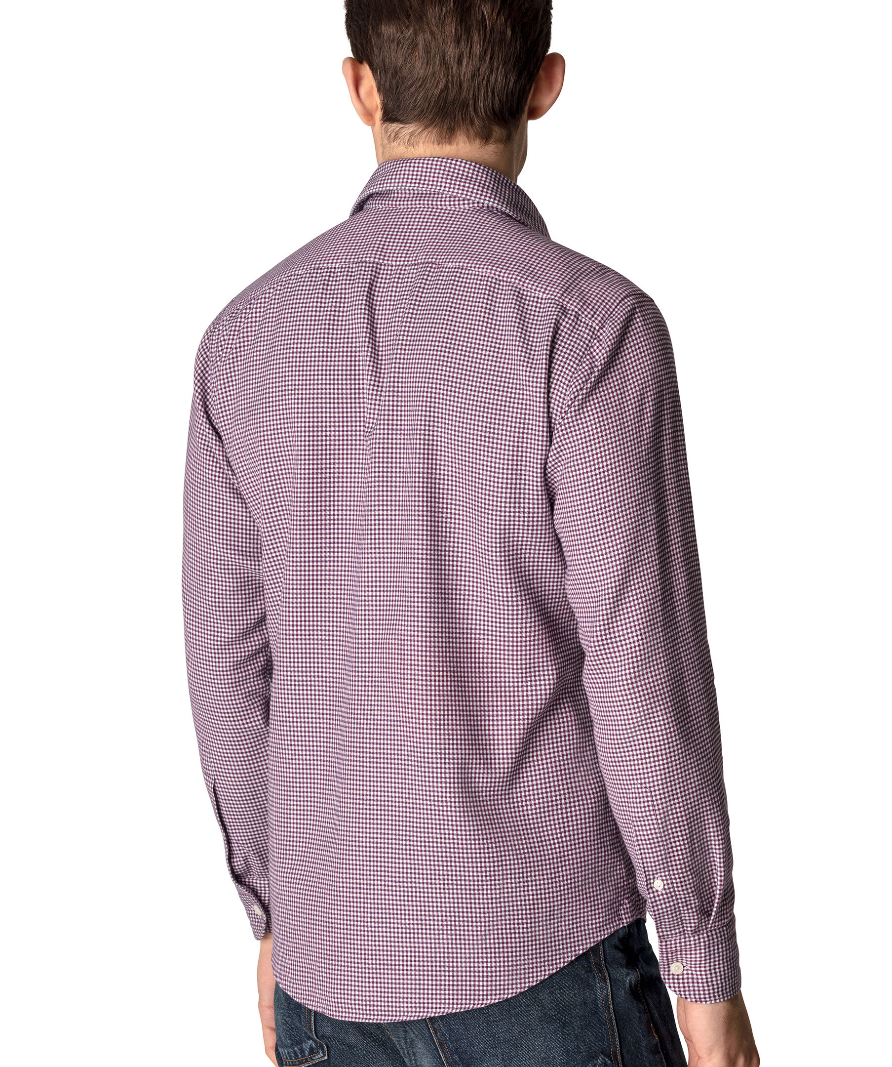 Vinröd och vit flanellskjorta i ett litet rutigt mönster från Eton. Ett avslappnat plagg i mjuk och silkeslen bomull-Tencel™ som förhöjer casual- och business casual-stilen. Den förfinade texturen i säsongens färger och det klassiska rutmönstret ger en skjorta som passar riktigt bra både på jobbet och på fritiden. Smal men inte åtsittande.