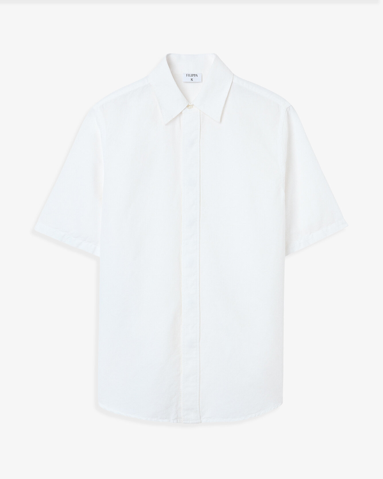 Vit kortärmad skjorta från Filippa K - en luftig och lätt skjorta i en bomull‑linne‑blandning med kort ärm och klassisk skjortkrage. Skjortan har en elegant, minimalistisk design som passar lika bra till sommardagar som till smart casual‑outfits
