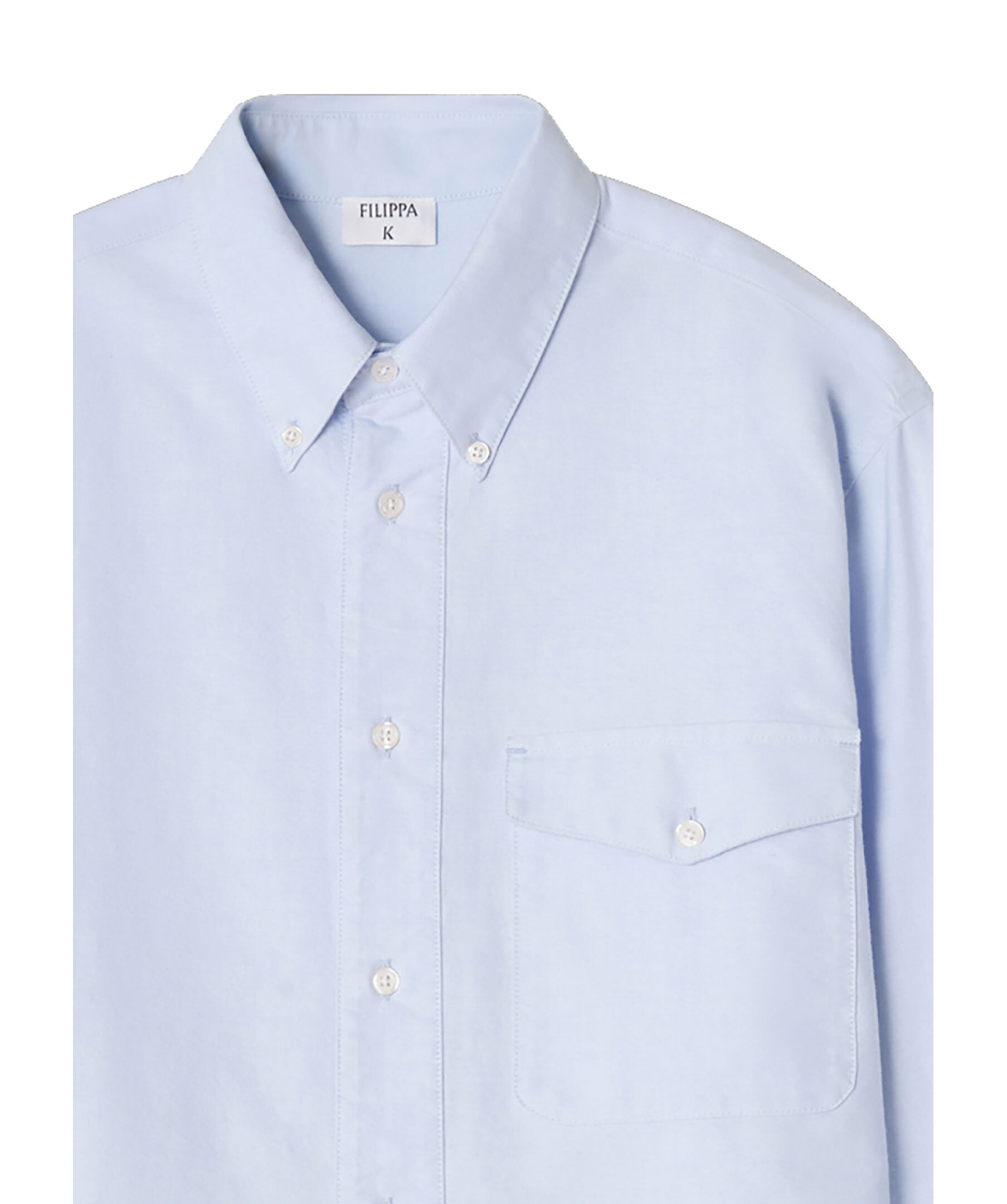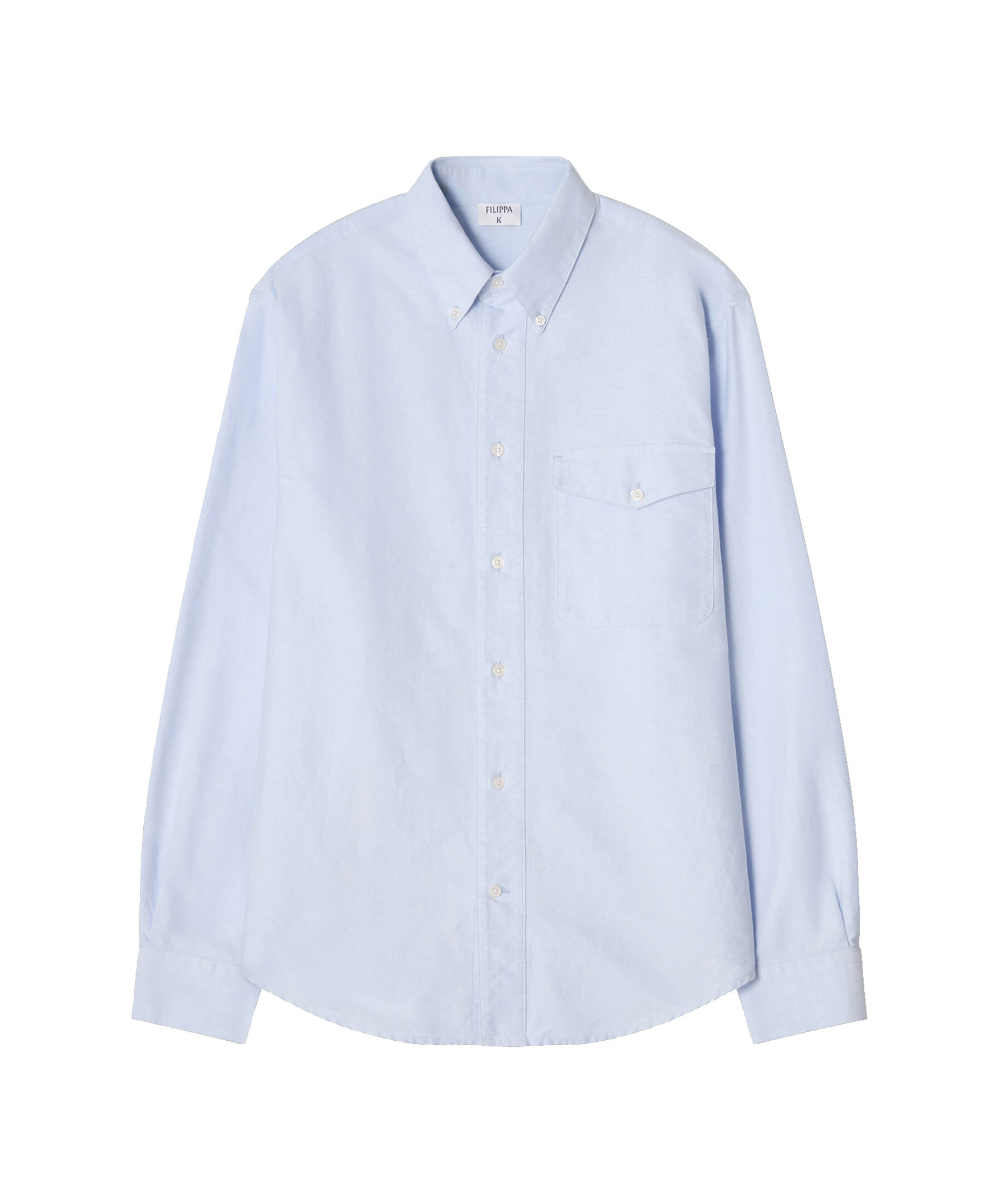 Ljusblå oxfordskjorta från Filippa K. Skjortan har button-down krage och en påsydd bröstficka med lock. Tillverkad i bomull.