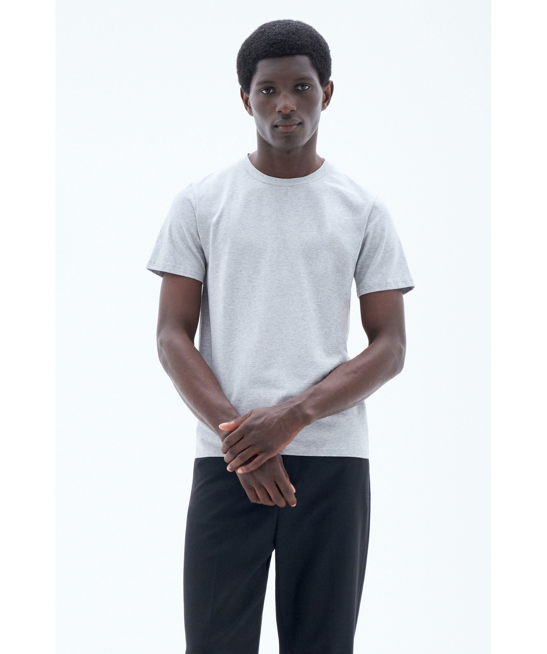 Ljusgrå, melerad t-shirt från Filippa K. T-shirten har rund halsringning och slimmad passform. Tillverkad i en bomullsblandning.