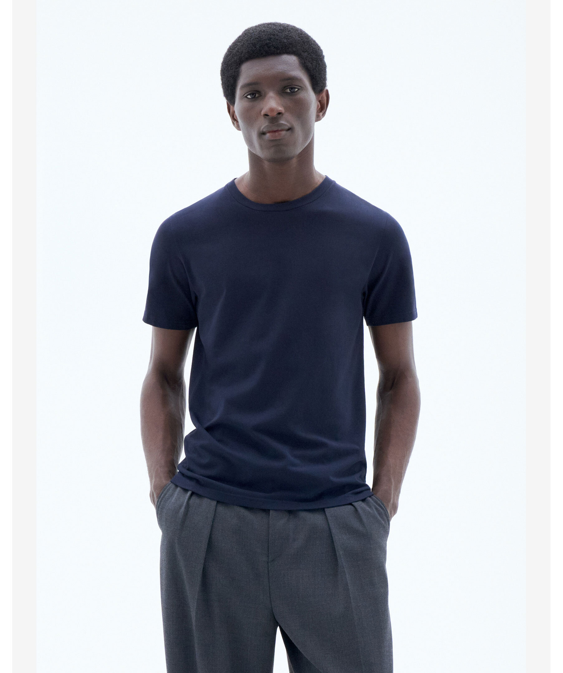 Marinblå t-shirt från Filippa K. T-shirten har rund halsringning och slimmad passform. Tillverkad i en bomullsblandning.
