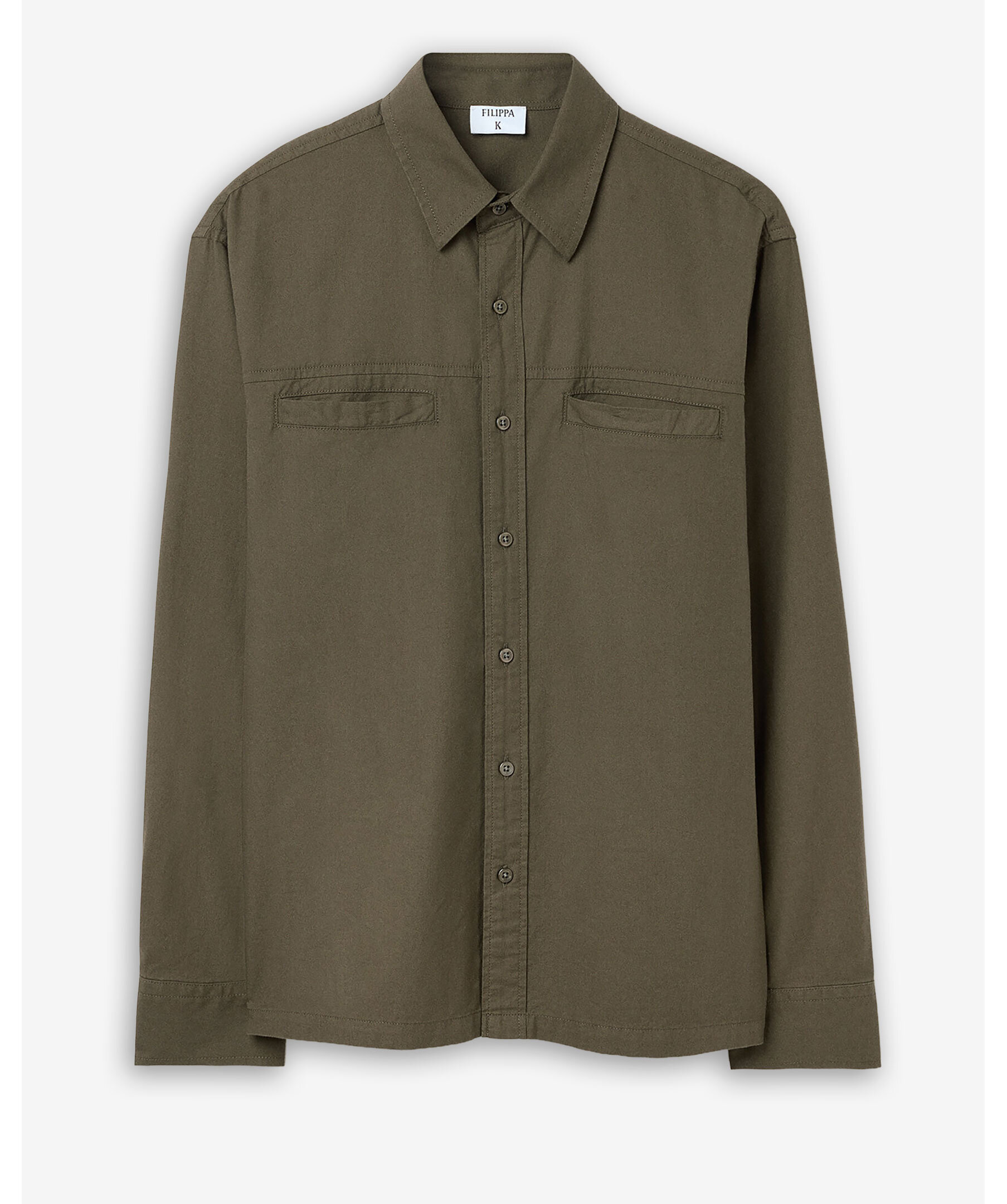 Welt Pocket Shirt från Filippa K är en avslappnad skjorta i färgen Dark Olive Green. Skjortan har en rak passform, knappslå framtill, bröstficka med passpoalfack, pleated cuffs och en rak nederkant. Tillverkad i 100 % ekologisk bomull (GOTS-certifierad) med en lätt borstad yta för en mjuk känsla. En stilren skjorta som passar både till vardags och till festligare tillfällen.