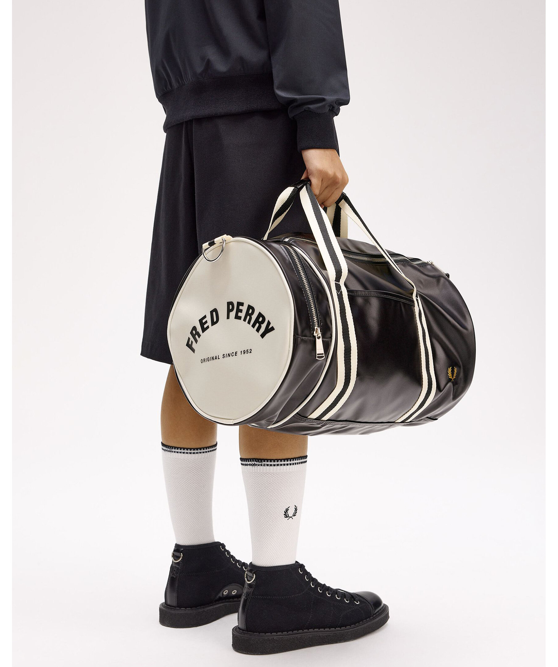 En klassisk barrelväska från Fred perrysom för tankarna till gympass, replokaler och cityresor, tillverkad i helt återvunnet material med TPU-beläggning. Med ständigt uppdaterade färger, dubbla dragkedjefack och sidofickor får du både stil och gott om plats – pålitlig in i minsta detalj.