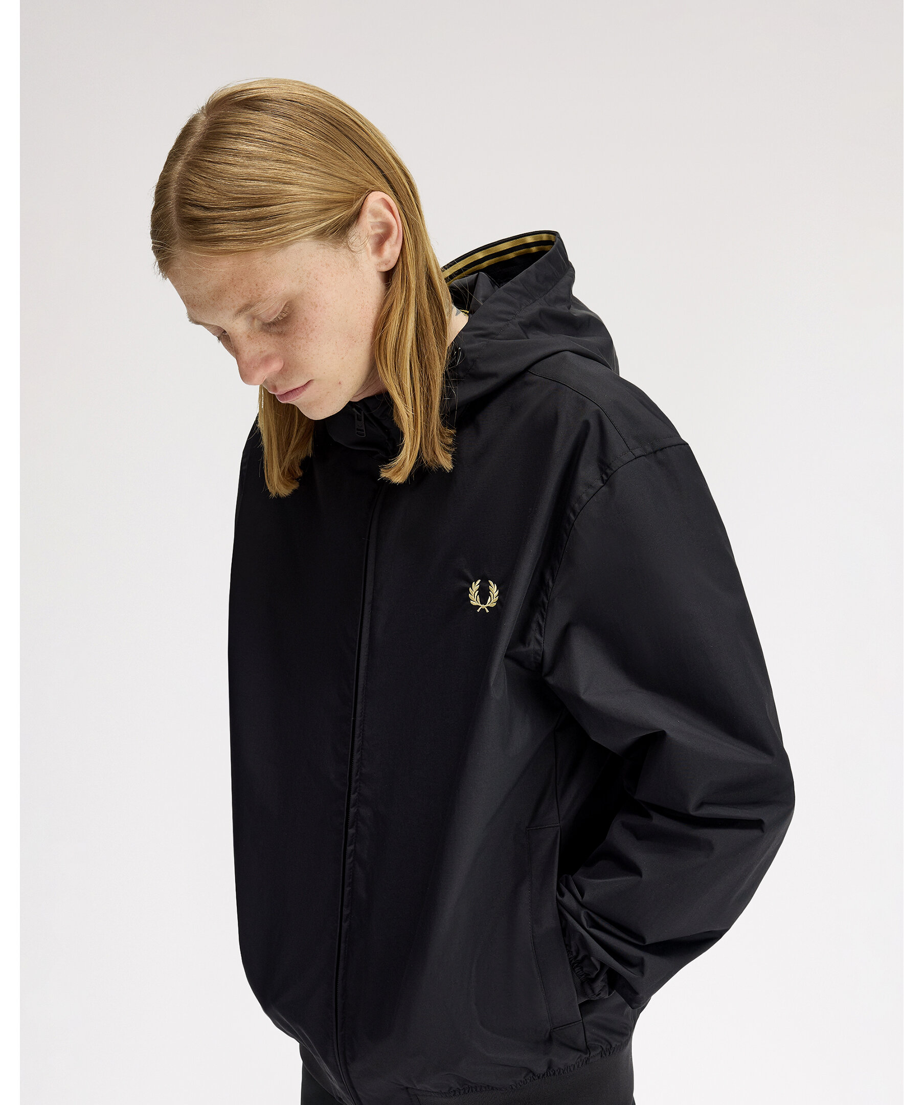 Uppdaterad version av den ikoniska Brentham-jackan från Fred Perry, med huva och inspiration från tennisklubben där Fred Perry formade sitt spel. Tillverkad i återvunnet material i regular fit med meshfoder, twin tipping på insida krage och fåll samt broderad logotyp på bröstet.