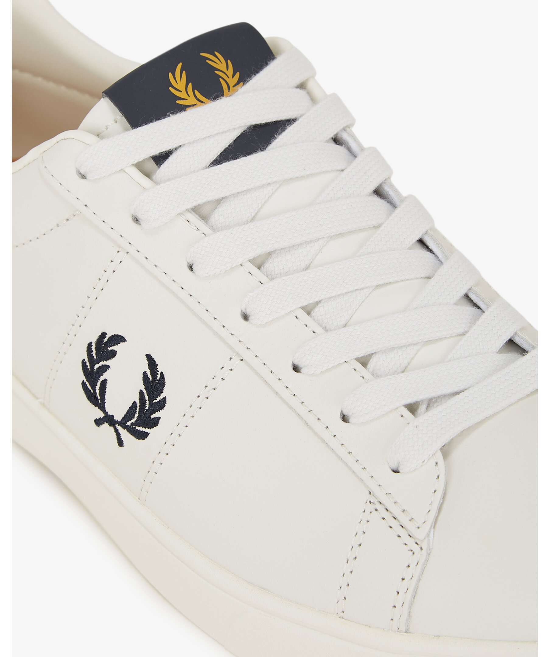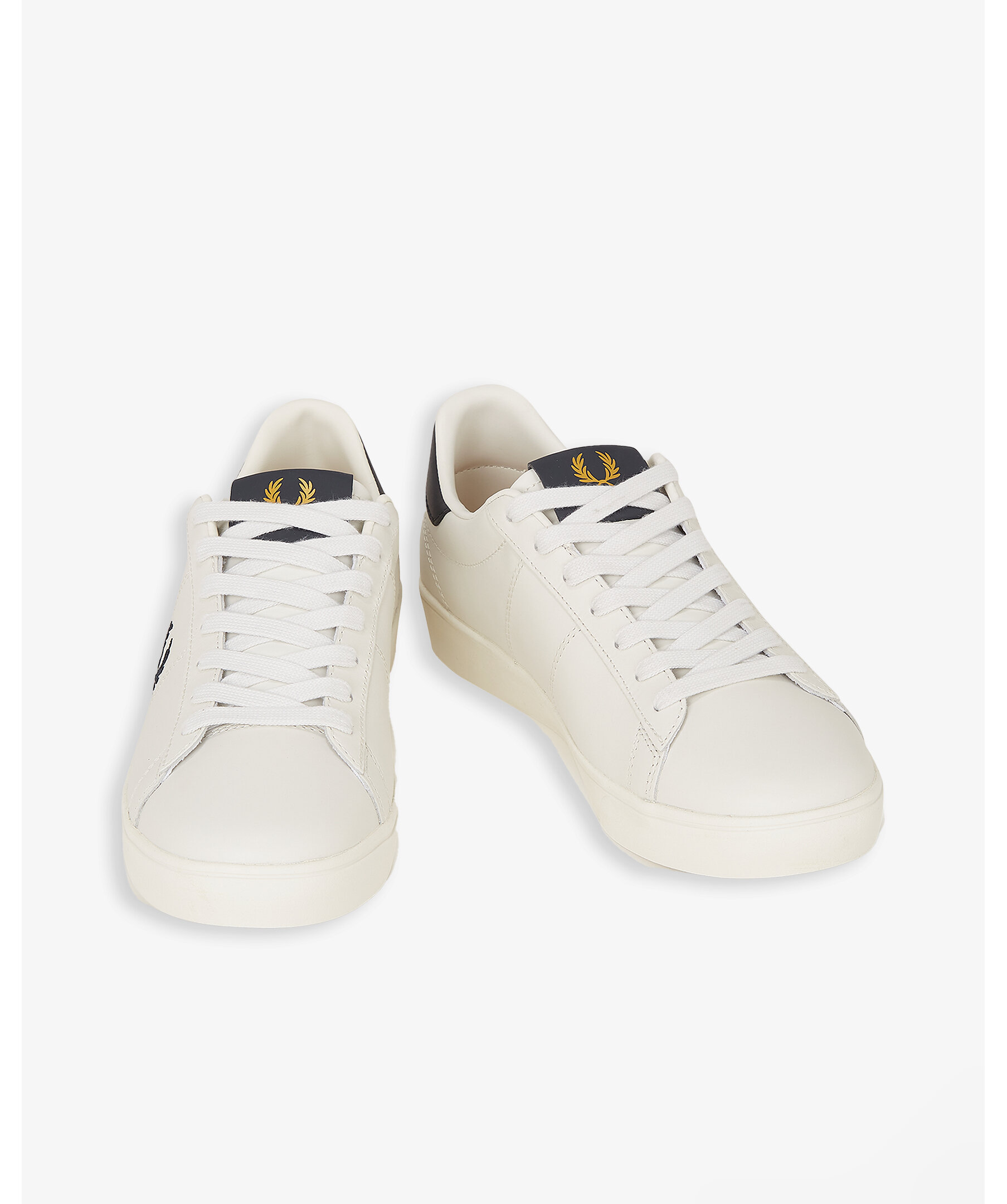 Klassiska tennisskor från Fred Perry som är inspirerade av det Fred bar på banan. För att bli trefaldig Wimbledonmästare krävs ett riktigt bra par skor, så vi har tagit grunderna och skapat något nytt. Designade med klassiska tennsdetaljer som cupsula, sportpaneler och viktigt ankelstöd, samt en perforerad innersula som återspeglar ett mönster från traditionella tennisracketar.