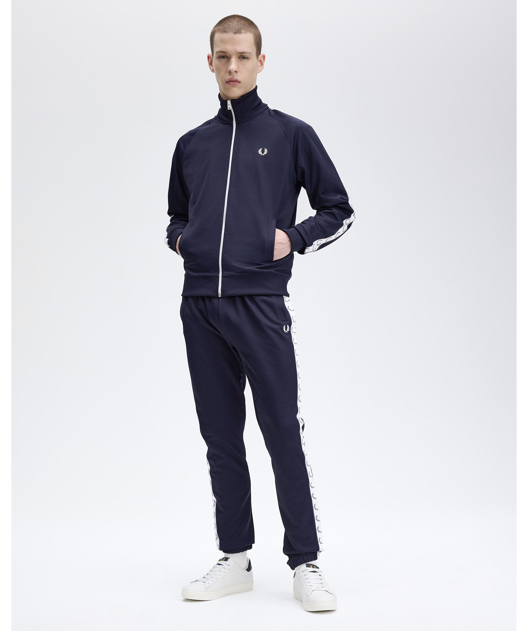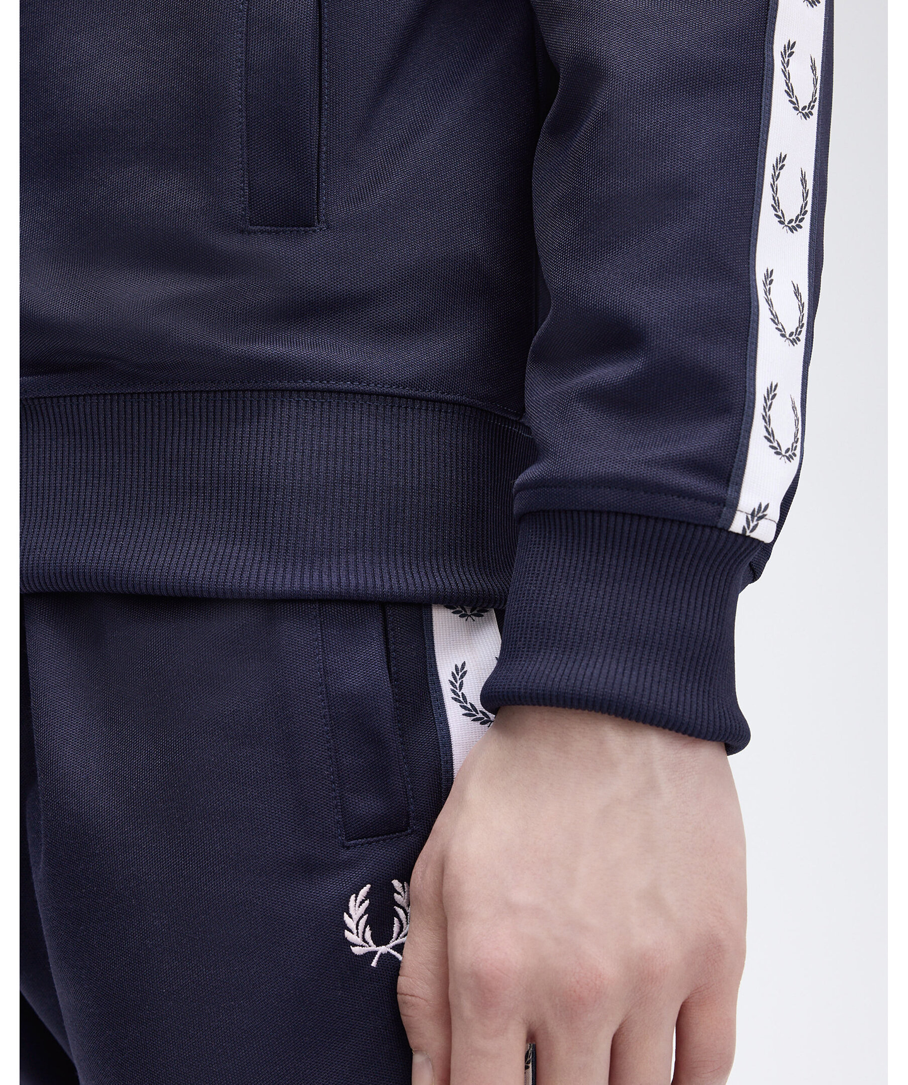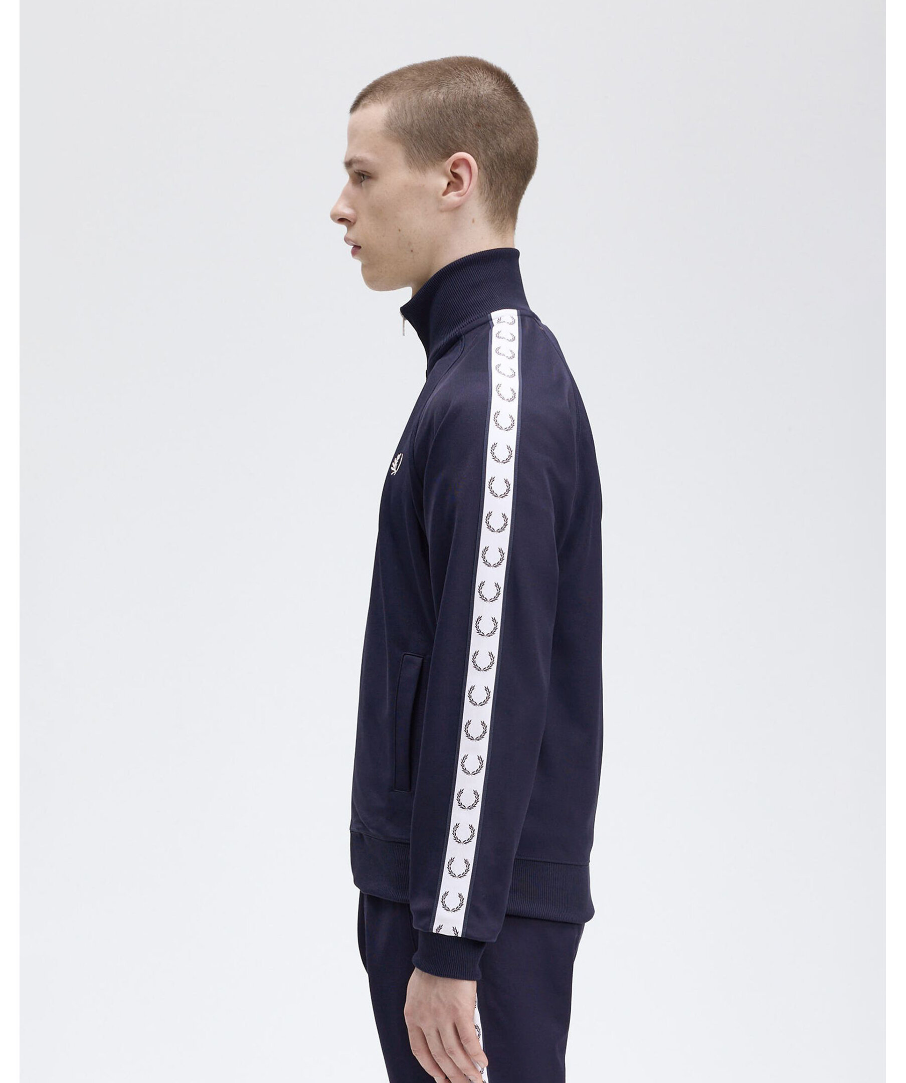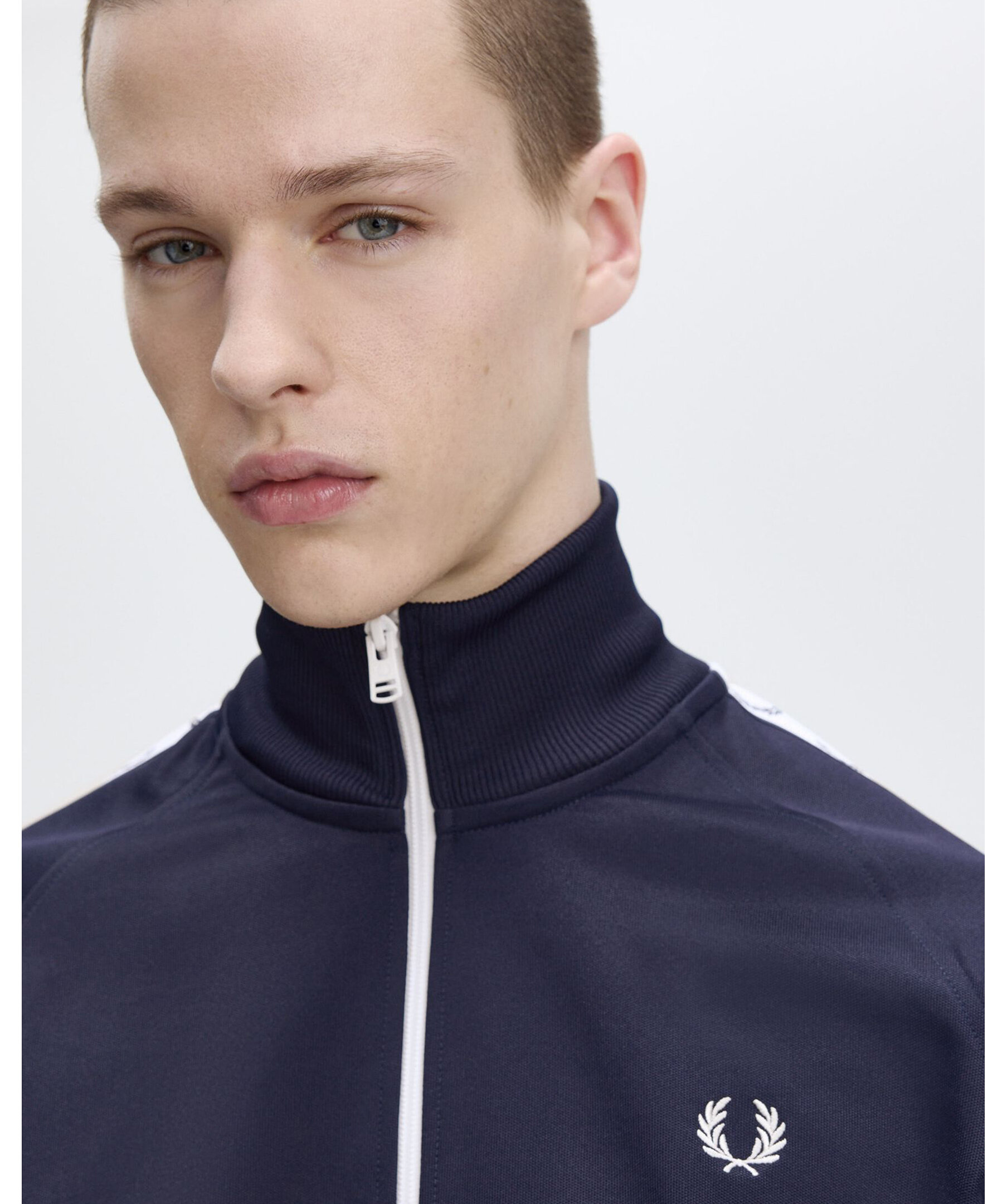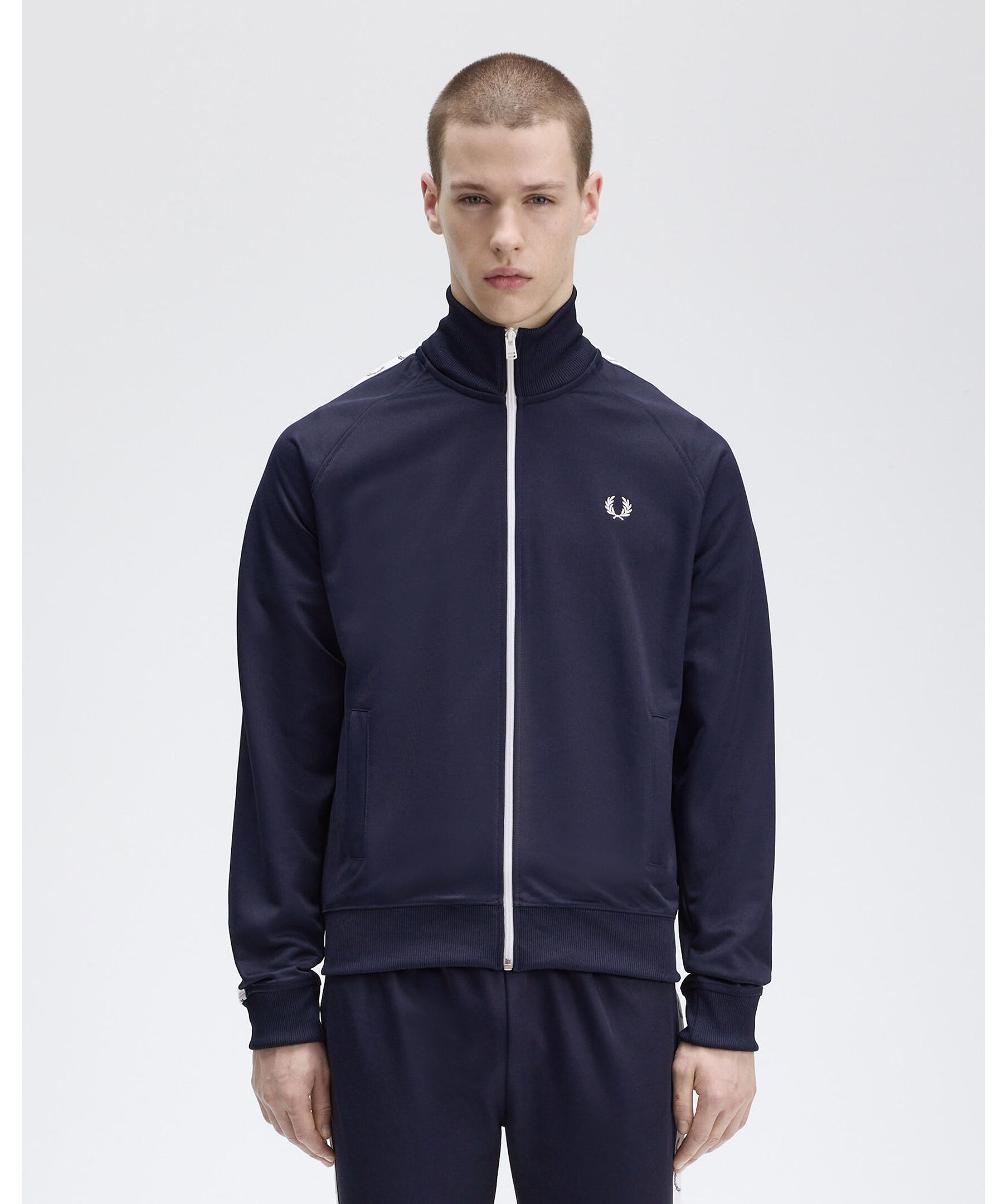 Track jacket från Fred Perry med alla originaldetaljer. Tillverkad i glansigt trikåtyg med vit emaljerad dragkedja och Laurel Wreath-band längs ärmarna.