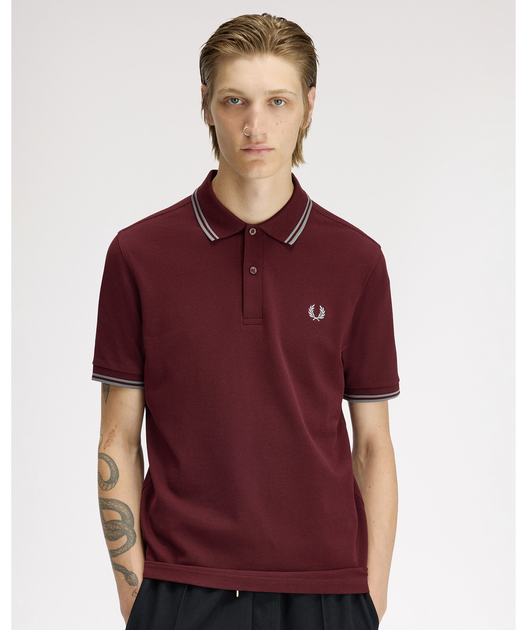 Klassisk pikétröja från Fred Perry i regular fit och med tvåknappsknäppning. Designen fulländas av twin tipping vid krage och ärmslut samt den ikoniska broderade logotypen på bröstet.