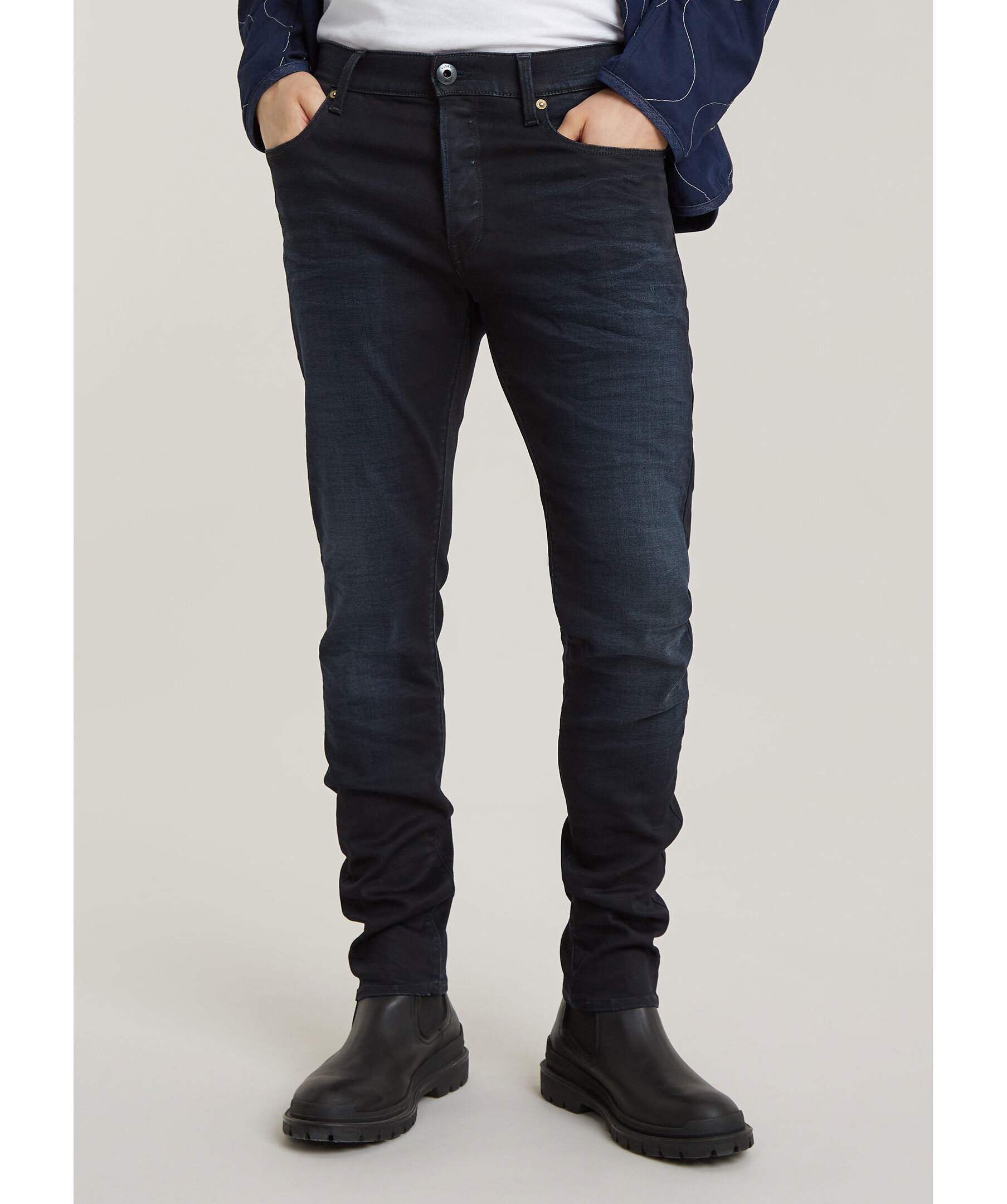 Mörkblåa jeans från G Star. Byxorna har bälteshällor i midjan, fem fickor samt logotyp baktill på linningen. Tillverkade i en bomullsblandning.