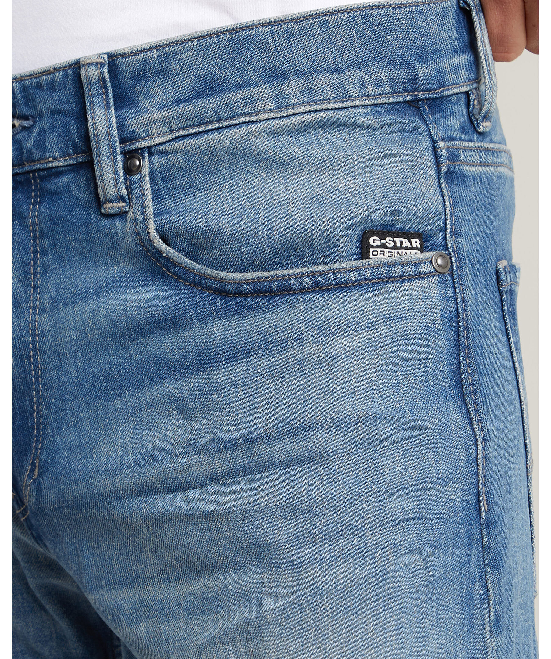 Blåa jeans från G-star. Byxorna har en straight-fit med smala ben. Vid linningen på baksidan finns en läderliknande patch med G-stars logotyp. Jeansen är stretchiga och har gylf och på höger bakficka finns en liten logotyp patch. Tillverkade av en bomullsblandning.