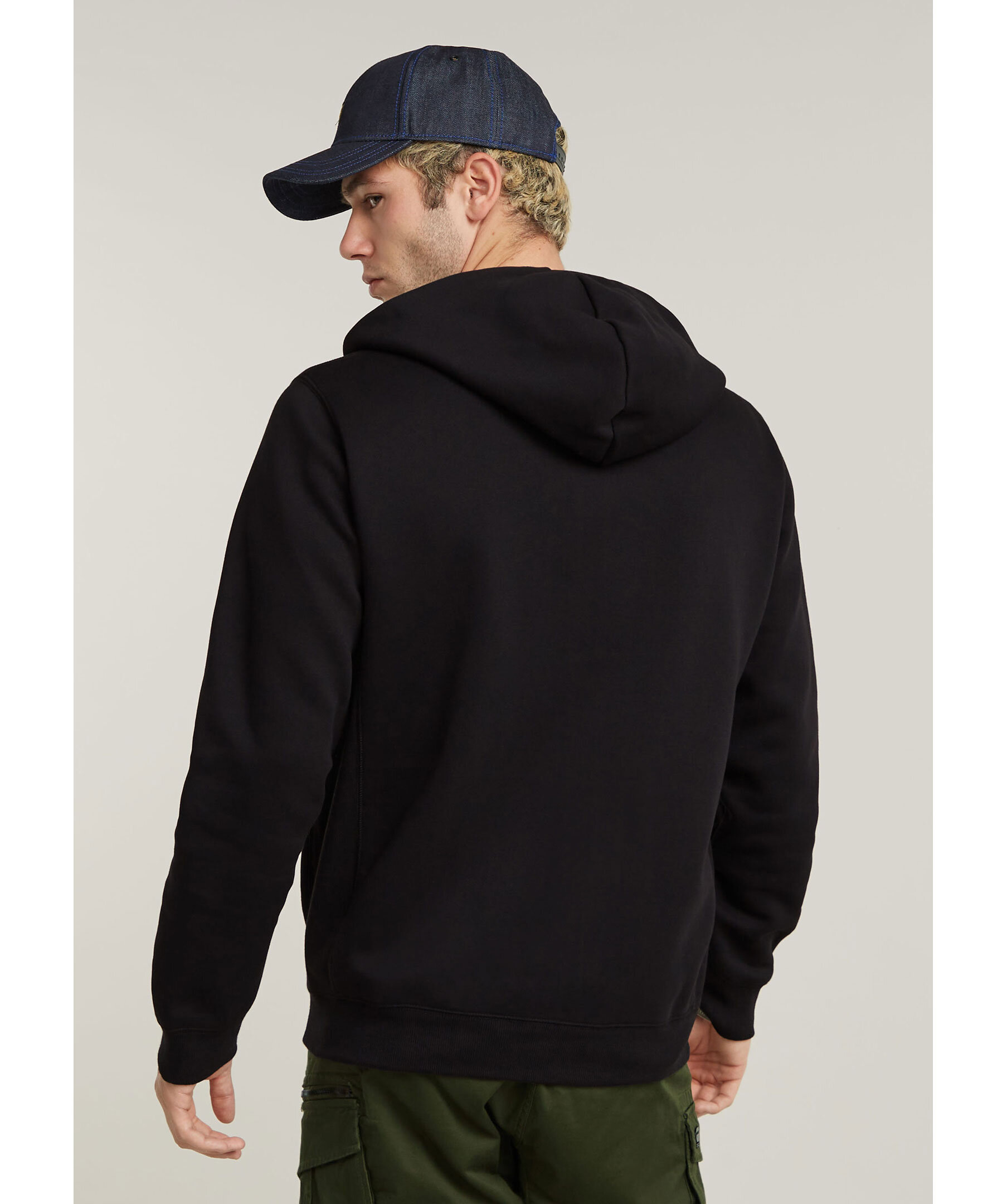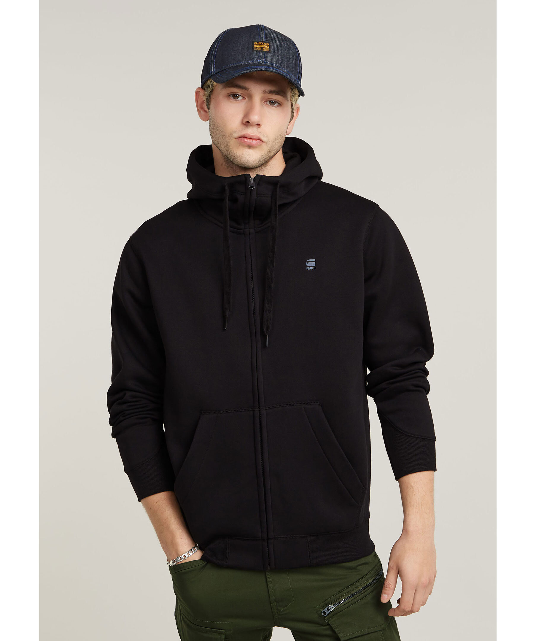 Svart zip-up hoodie från G Star. Stängs med dragkedja framtill och har två sidfickor och huva med dragsko. Liten broderad logotyp på bröstet. Tillverkad i en bomullsblandning.