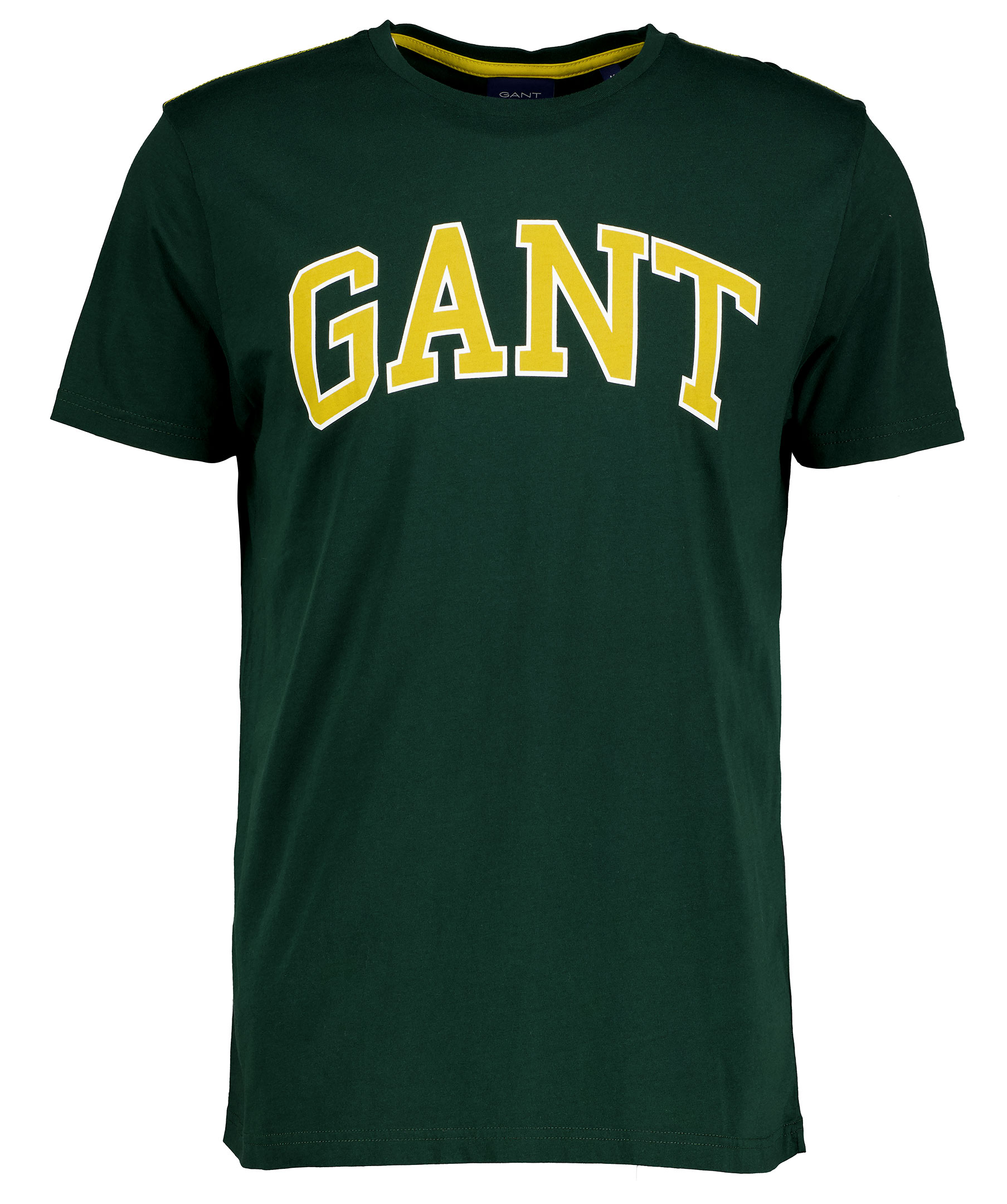 Grön t-shirt i 100% bomull från Gant. Tryckt, gul logotyp över bröstet. Rundad halsringning. * Rundad halsringning * Broderad logotyp * 100% bomull