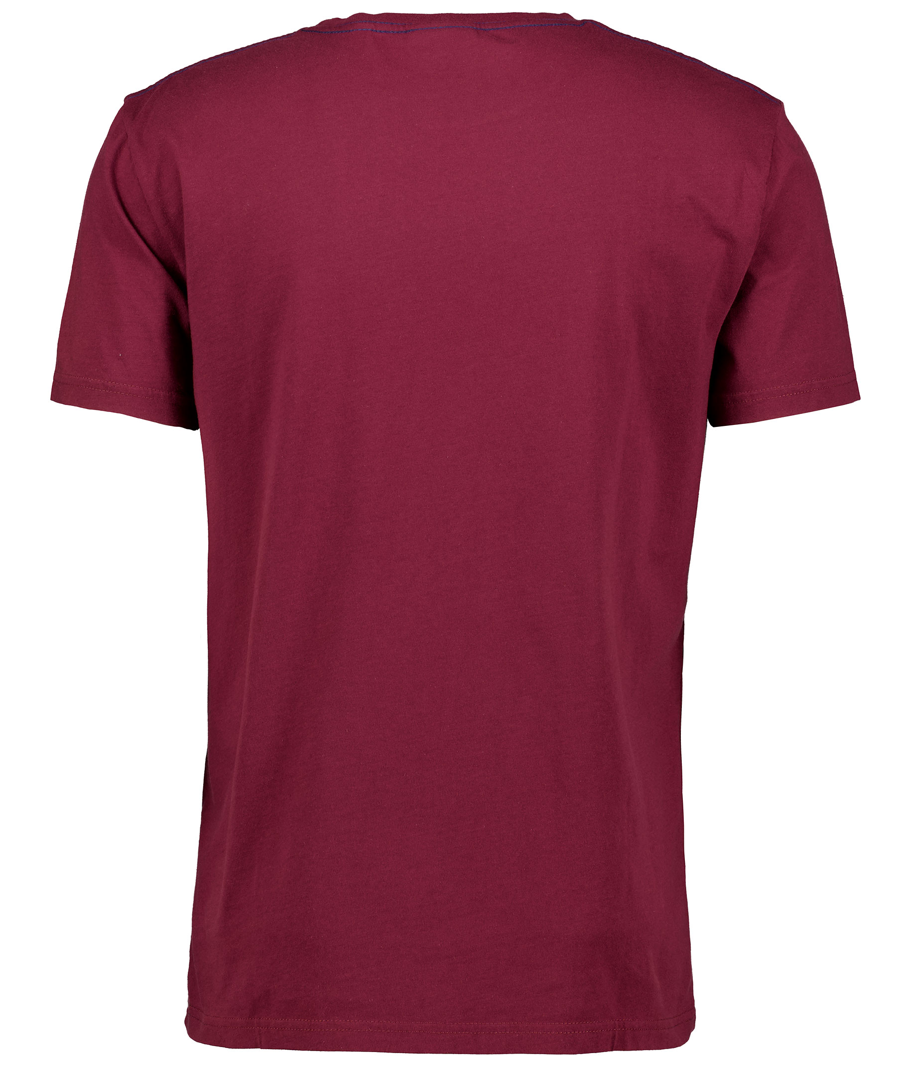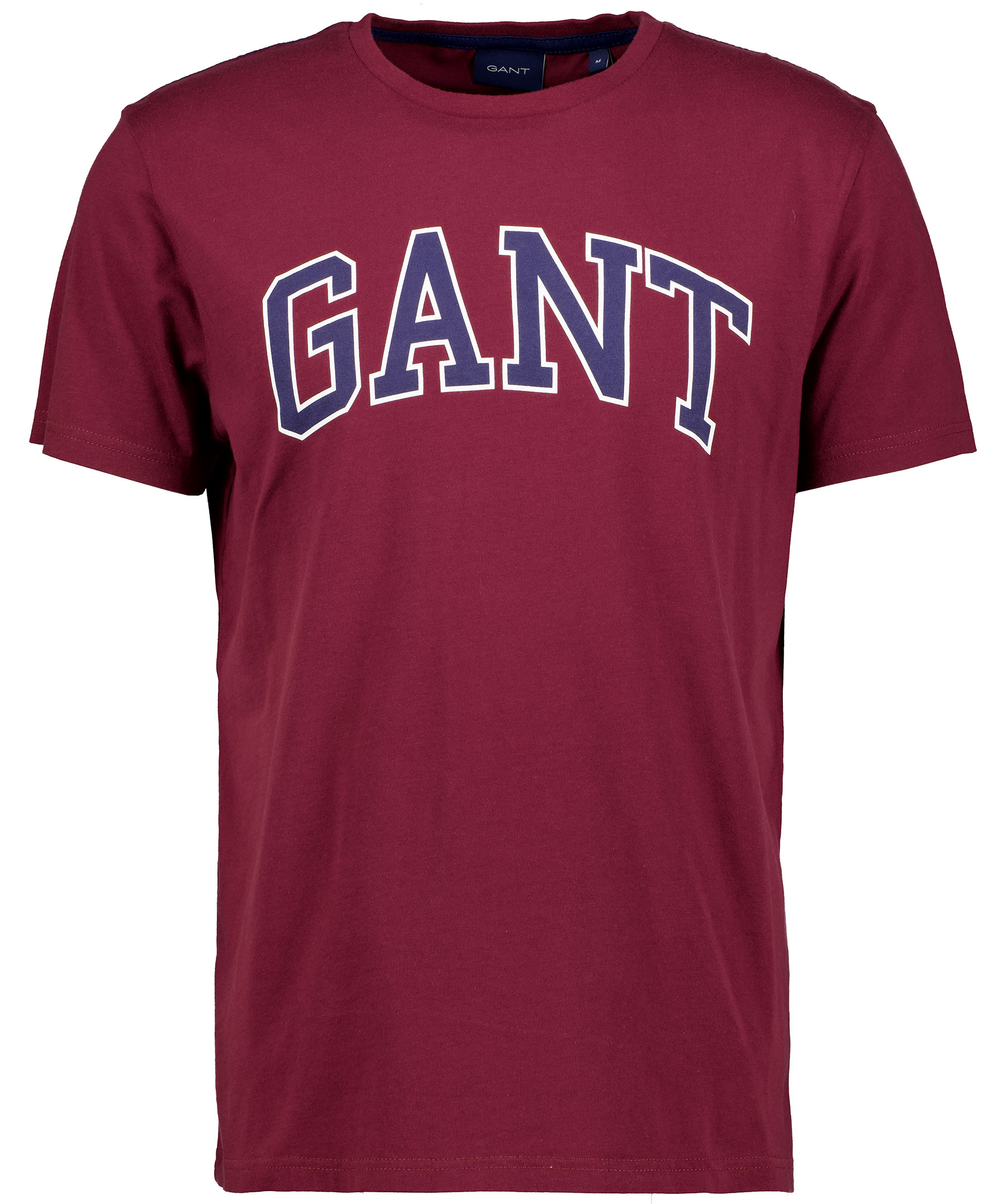 Mörkröd t-shirt i 100% bomull från Gant. Tryckt, marinblått logotyp med vita kanter över bröstet. Rundad halsringning. * Rundad halsringning * Tryckt logotyp * 100% bomull