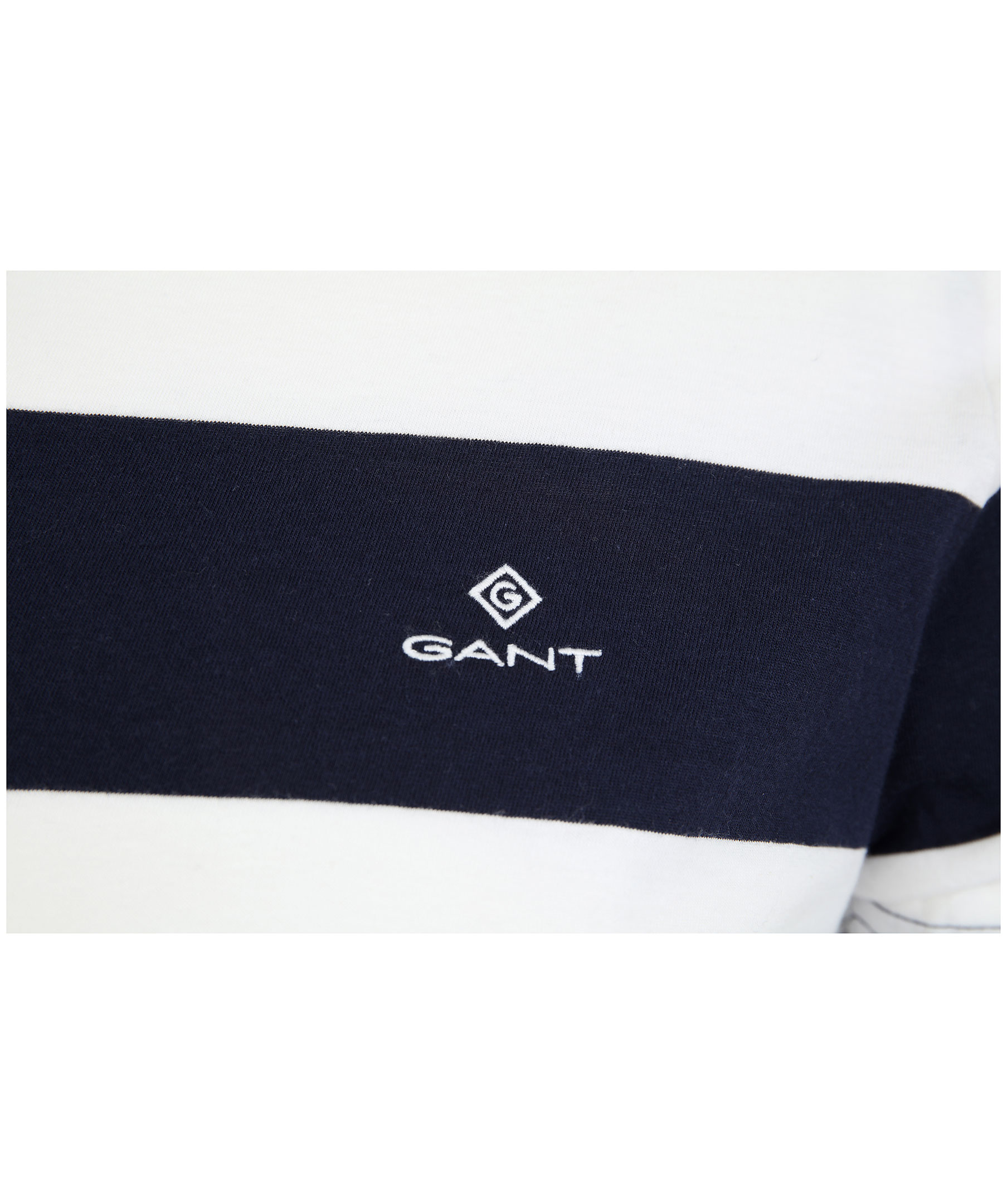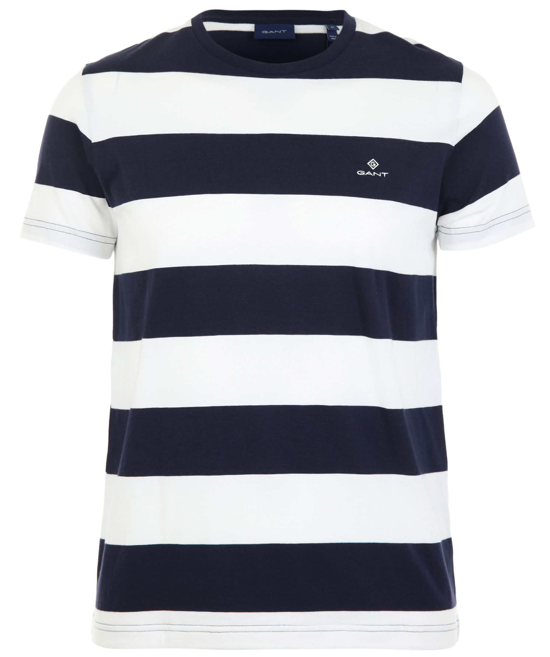 Bredrandig t-shirt från Gant. Tillverkad i 100% bomull. Liten, broderad logotyp på sidan av bröstet, normal passform. Rundad halsringning och randig med vitt och marinblått.