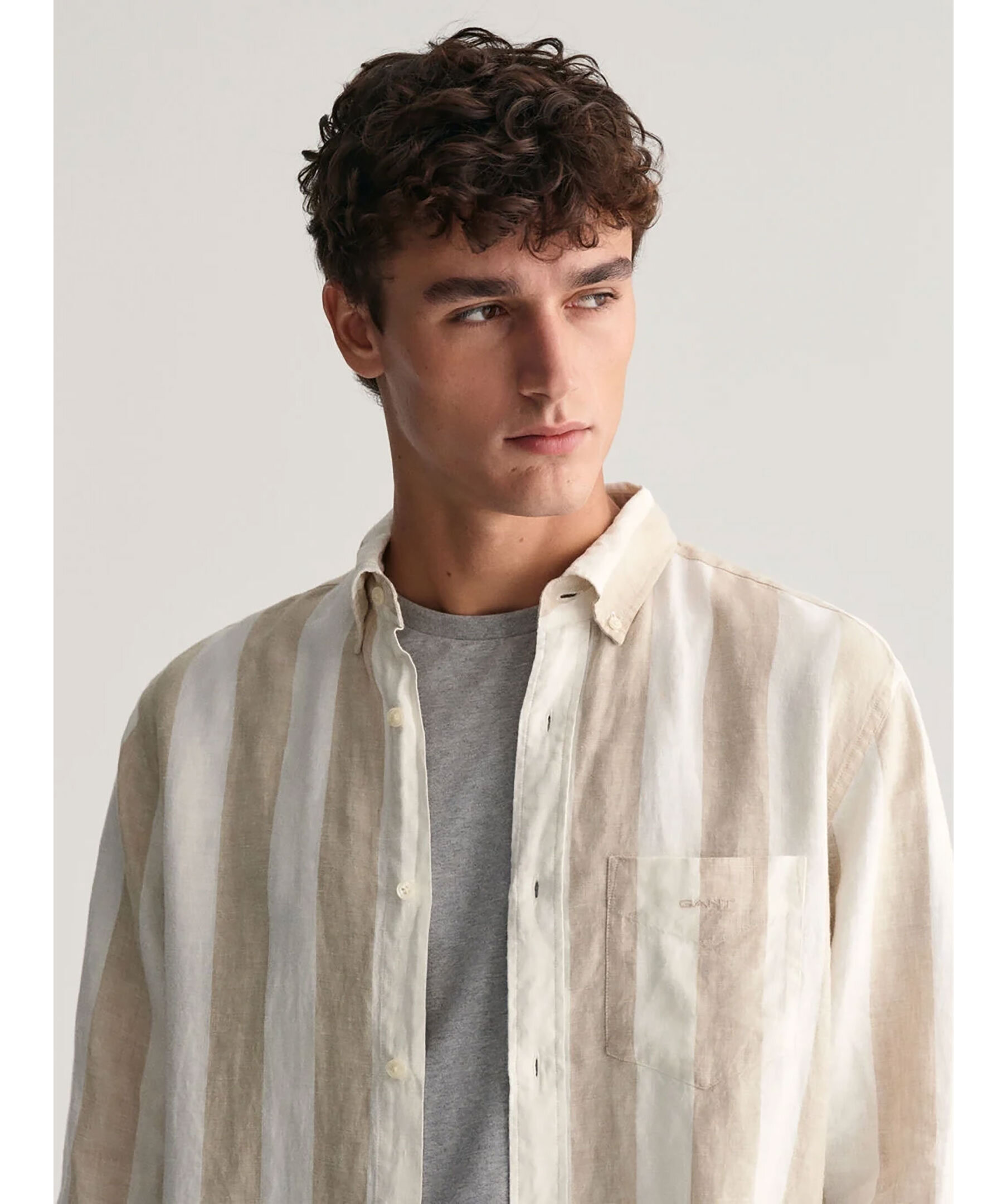 Gant Bold Stripe Linen Shirt - Beige