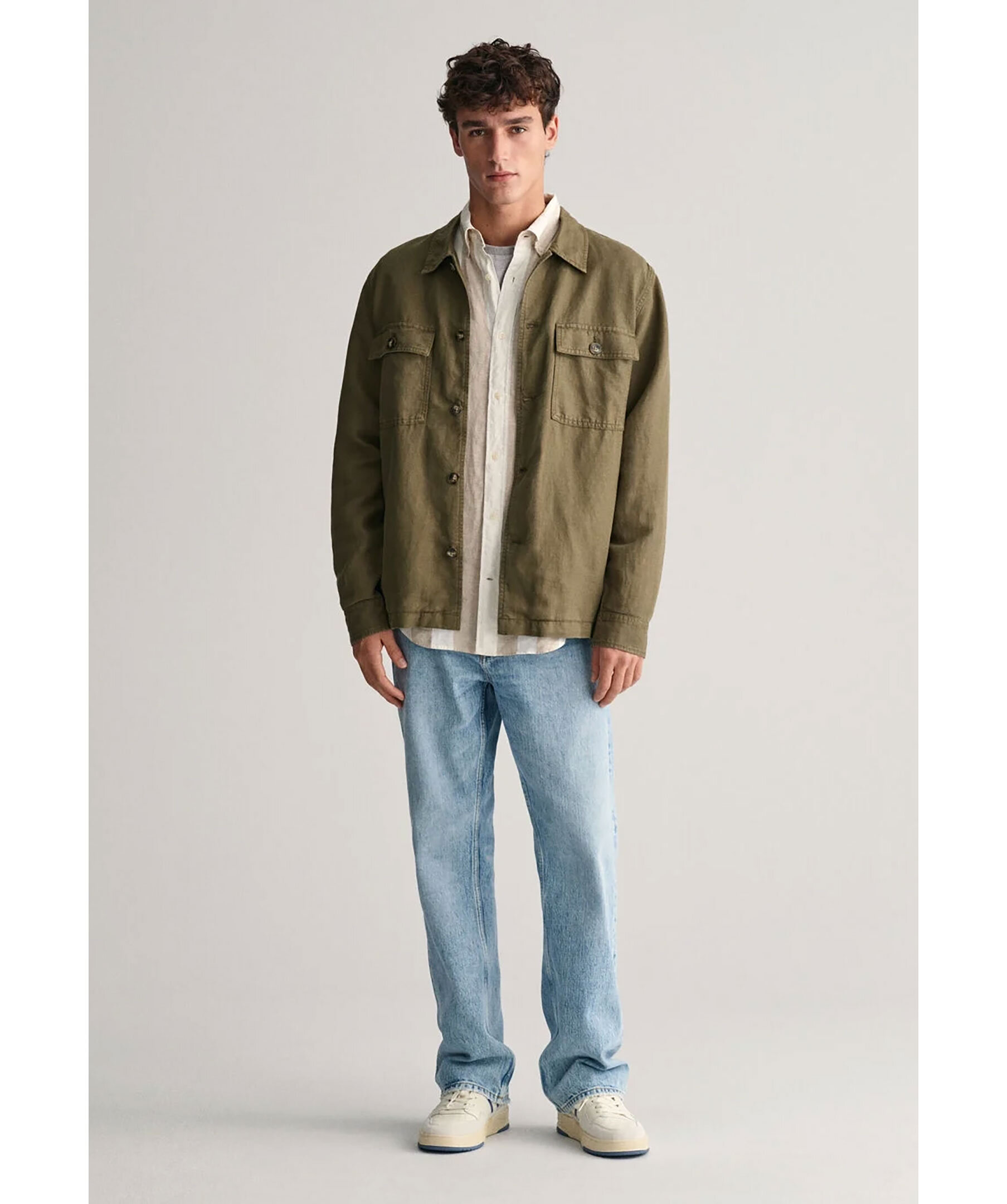 Vit och beige randig skjorta i linne från Gant. Stängs framtill med knappar. Button down-krage. Bröstficka på vänster sida med broderad logotyp. Enkla manschetter. Tillverkad i 100% Linne. Box pleat och locket loop i ryggen.