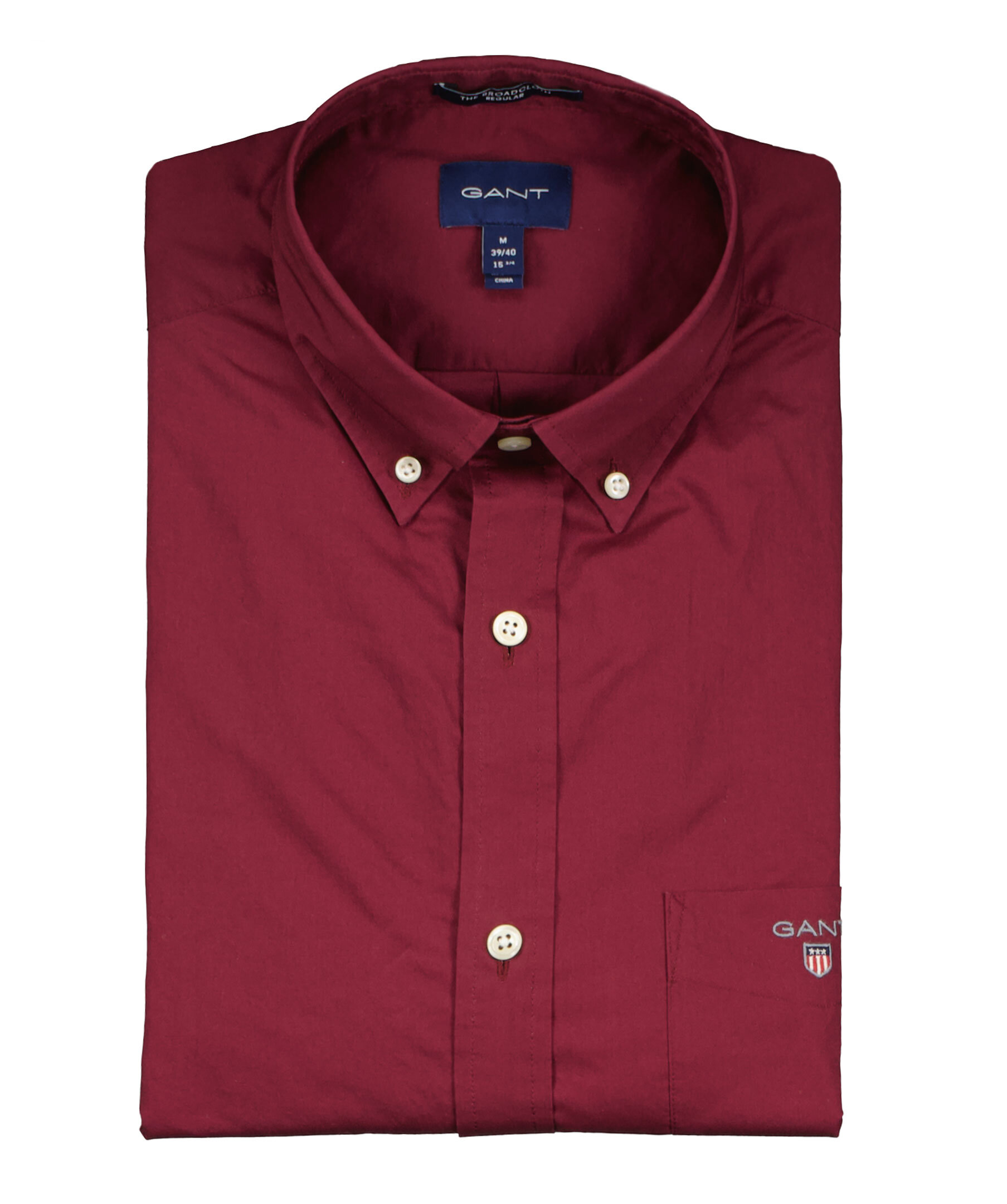 Vinröd skjorta från Gant. Tillverkad i 100% Bomull. Bröstficka på vänster sida med broderad logotyp. buttondown krage.