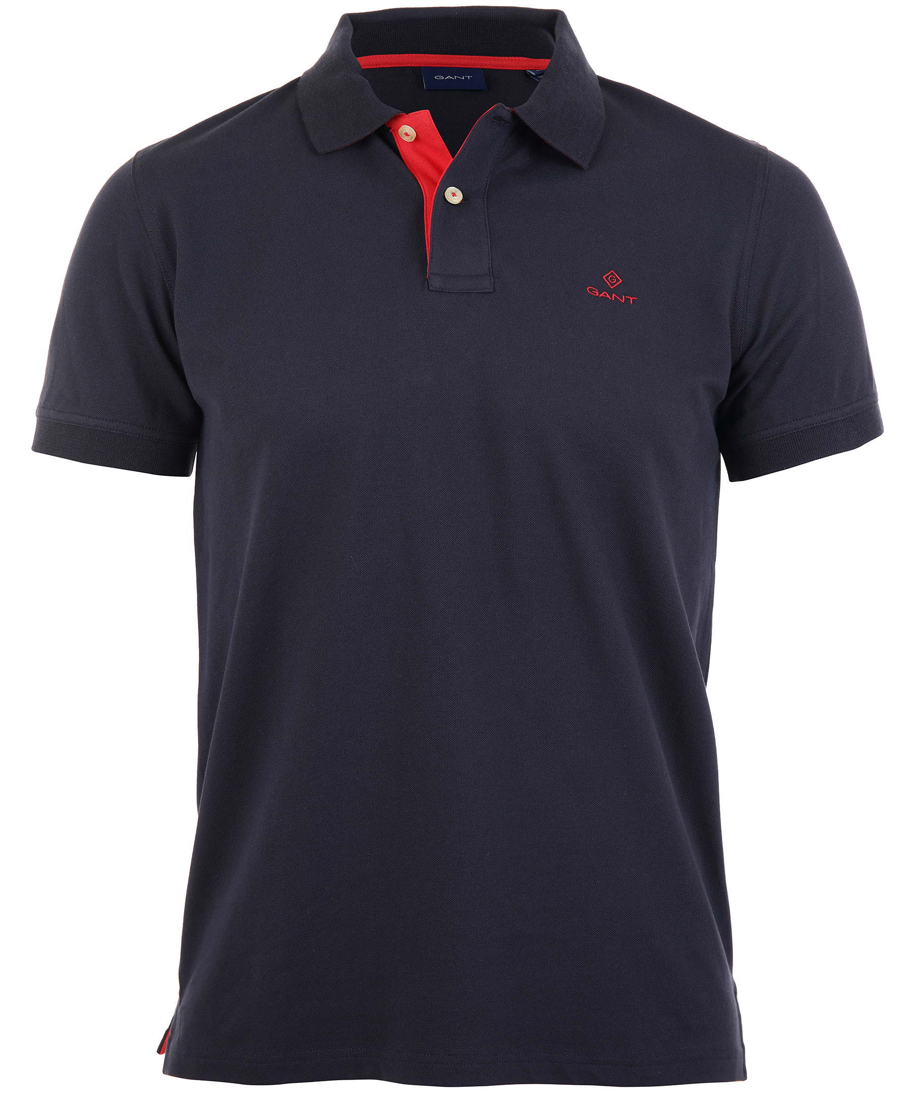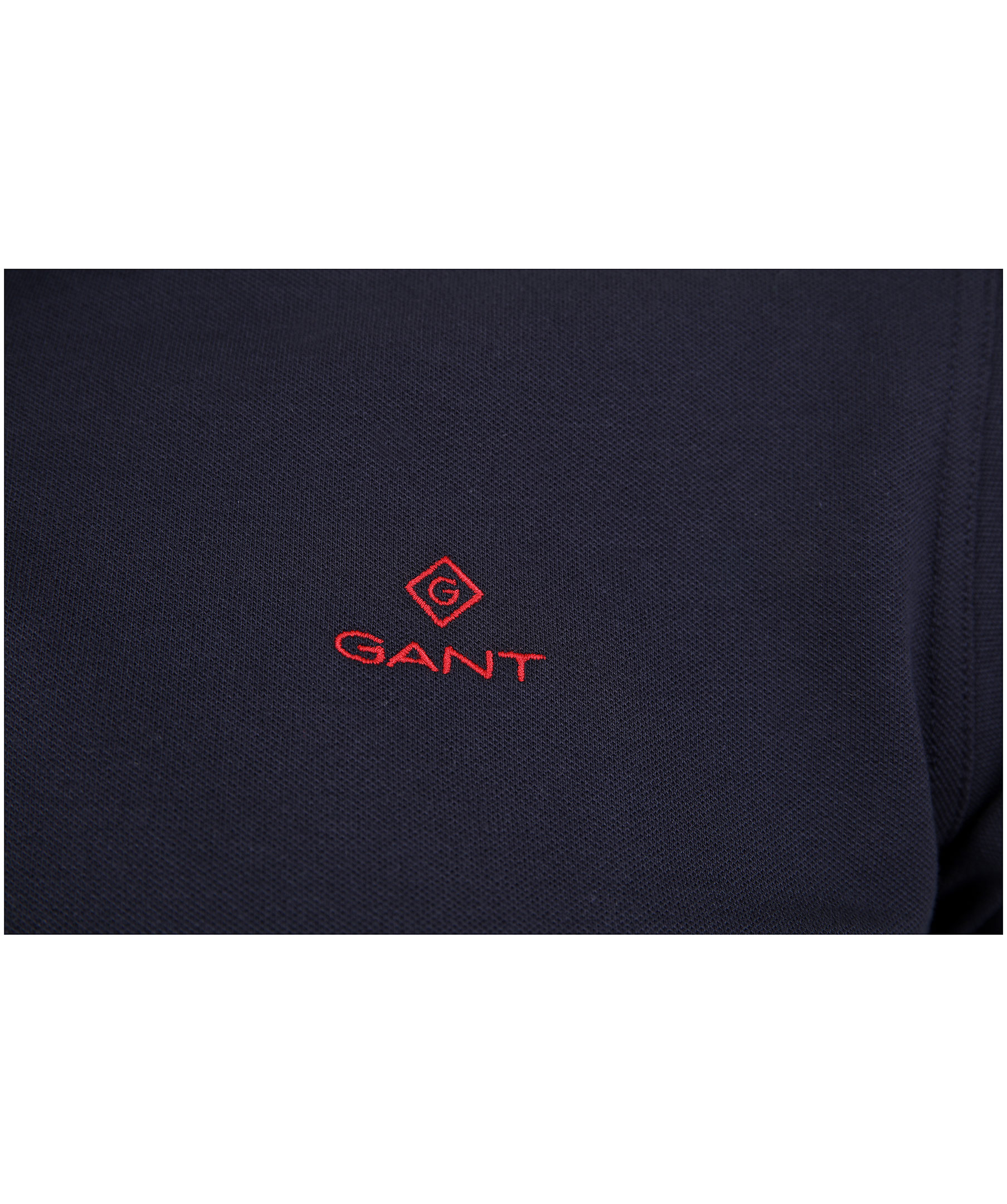 Marinblå pikétröja från Gant. Tillverkad i bomullsmix. Broderad logga på bröstet, kontrastfärger vid krage och ärm.