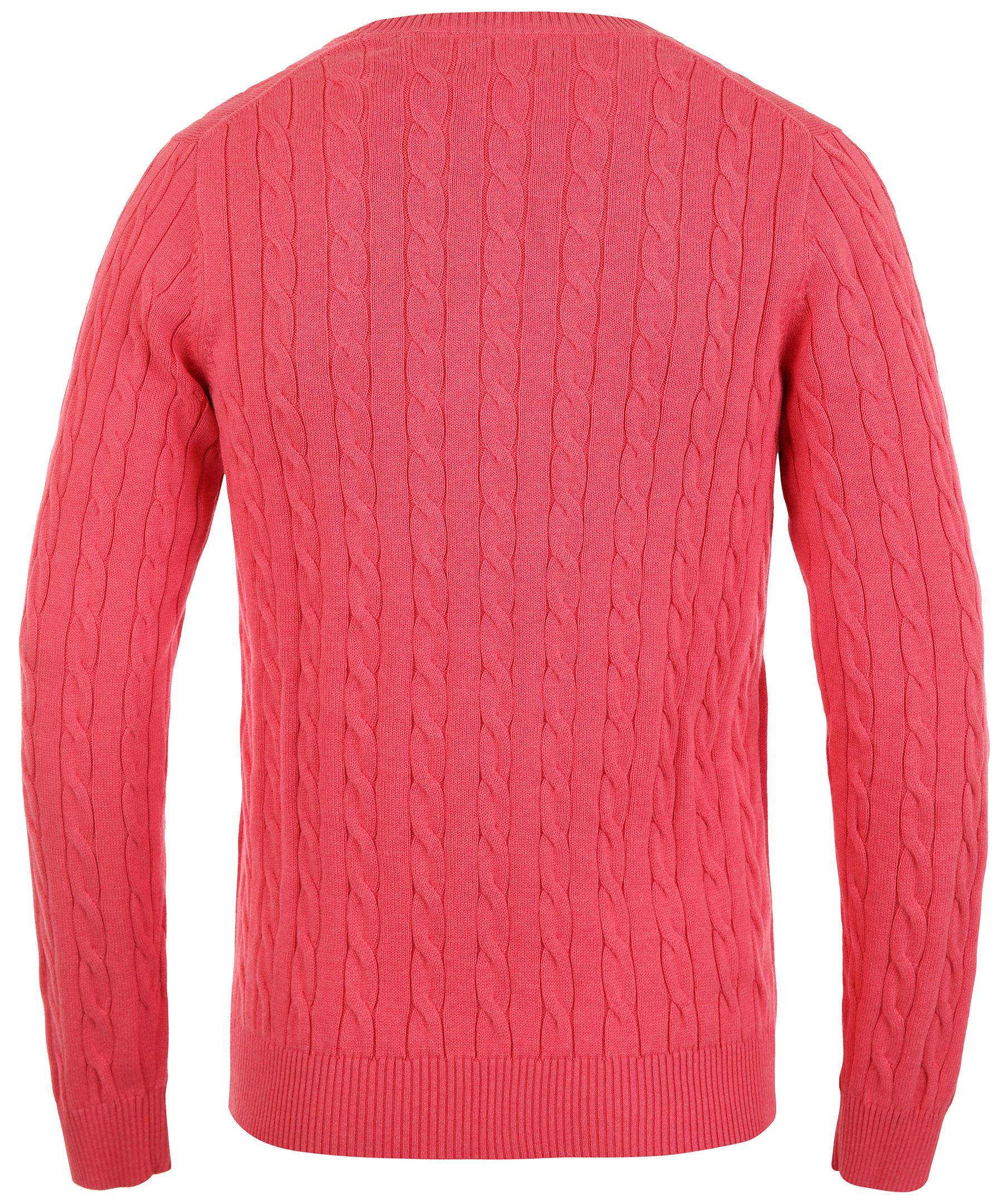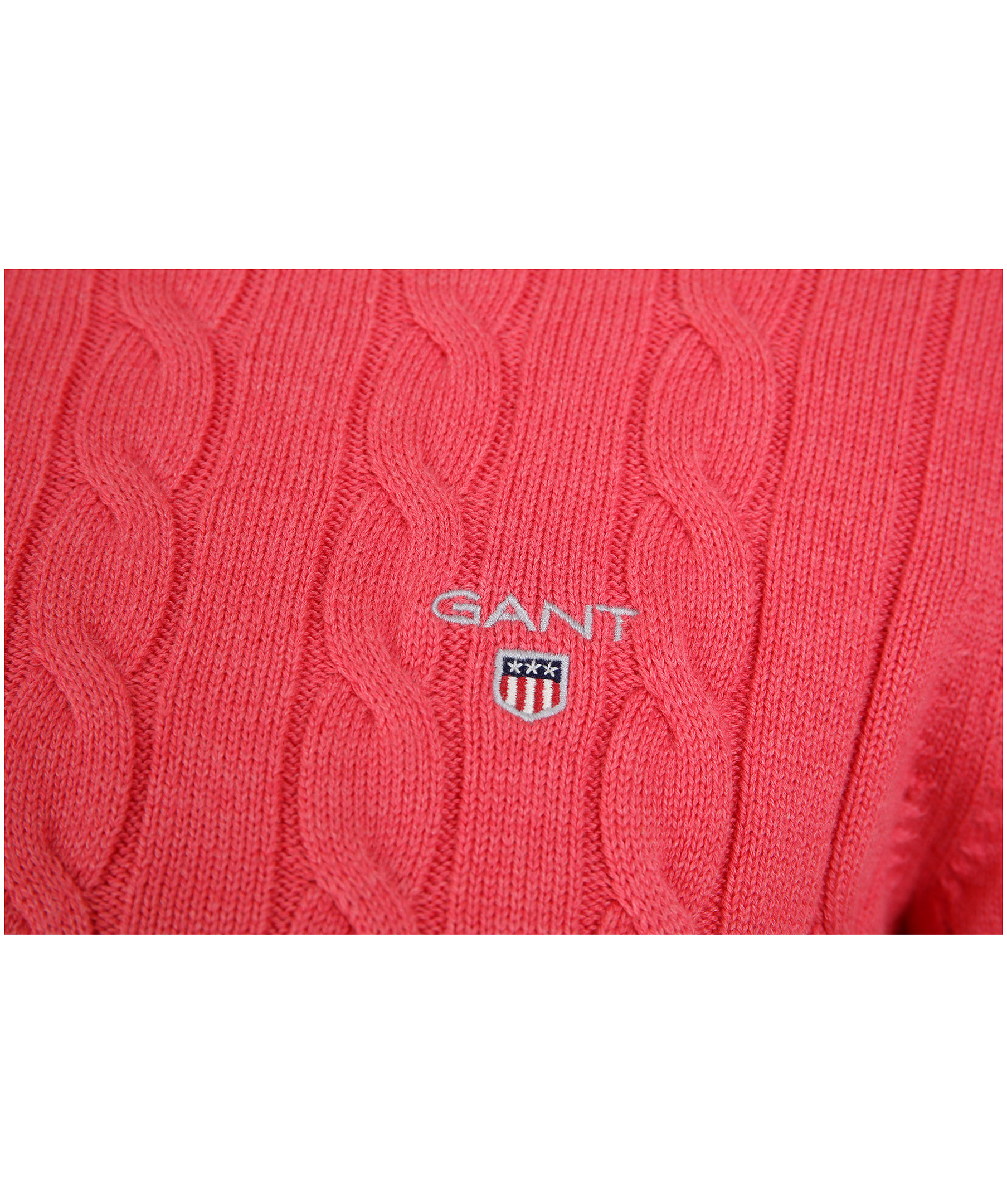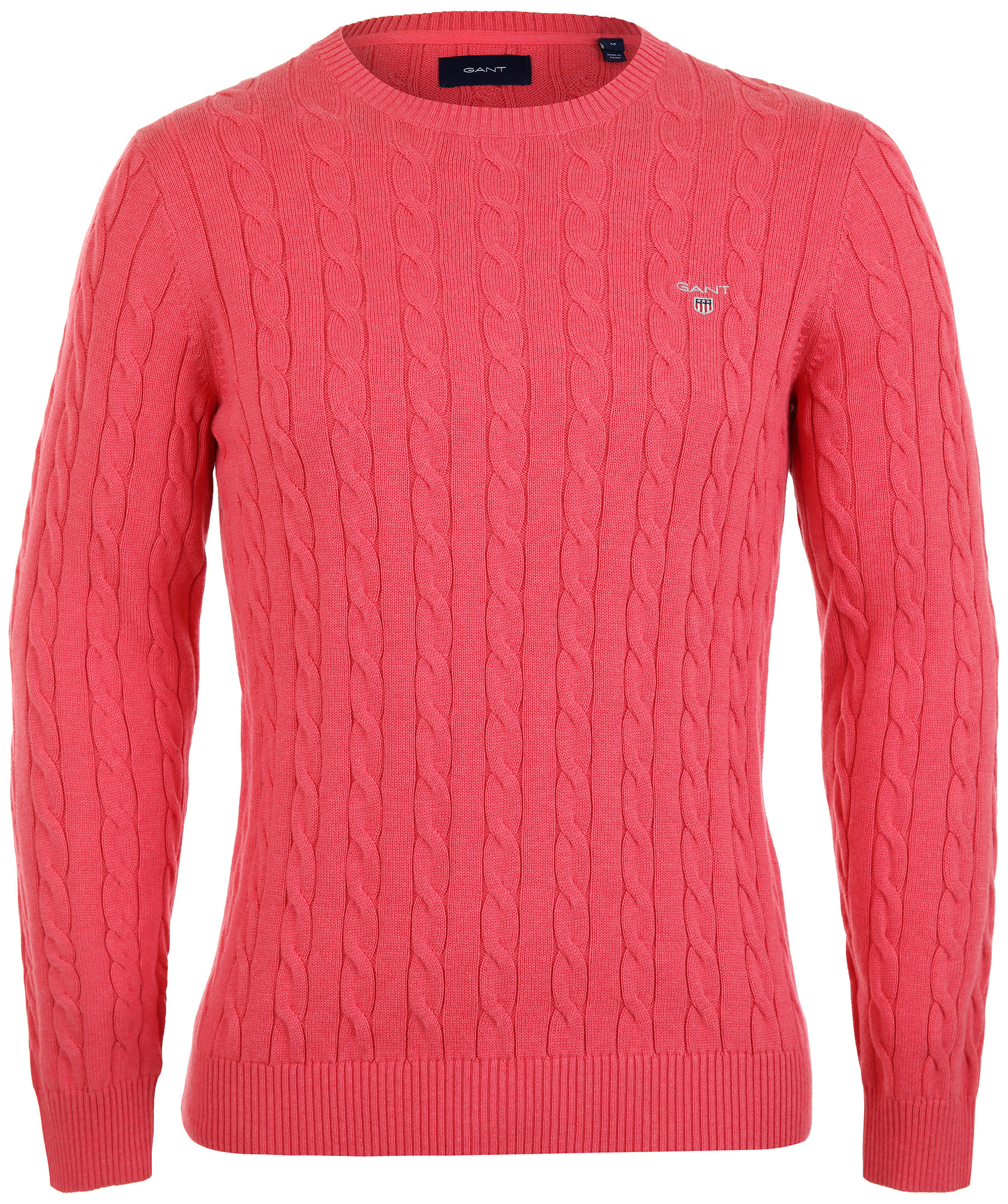Rödrosa kabelstickad pullover från Gant. Tillverkad i 100% bomull. Broderad logga på bröstet, crewneck.