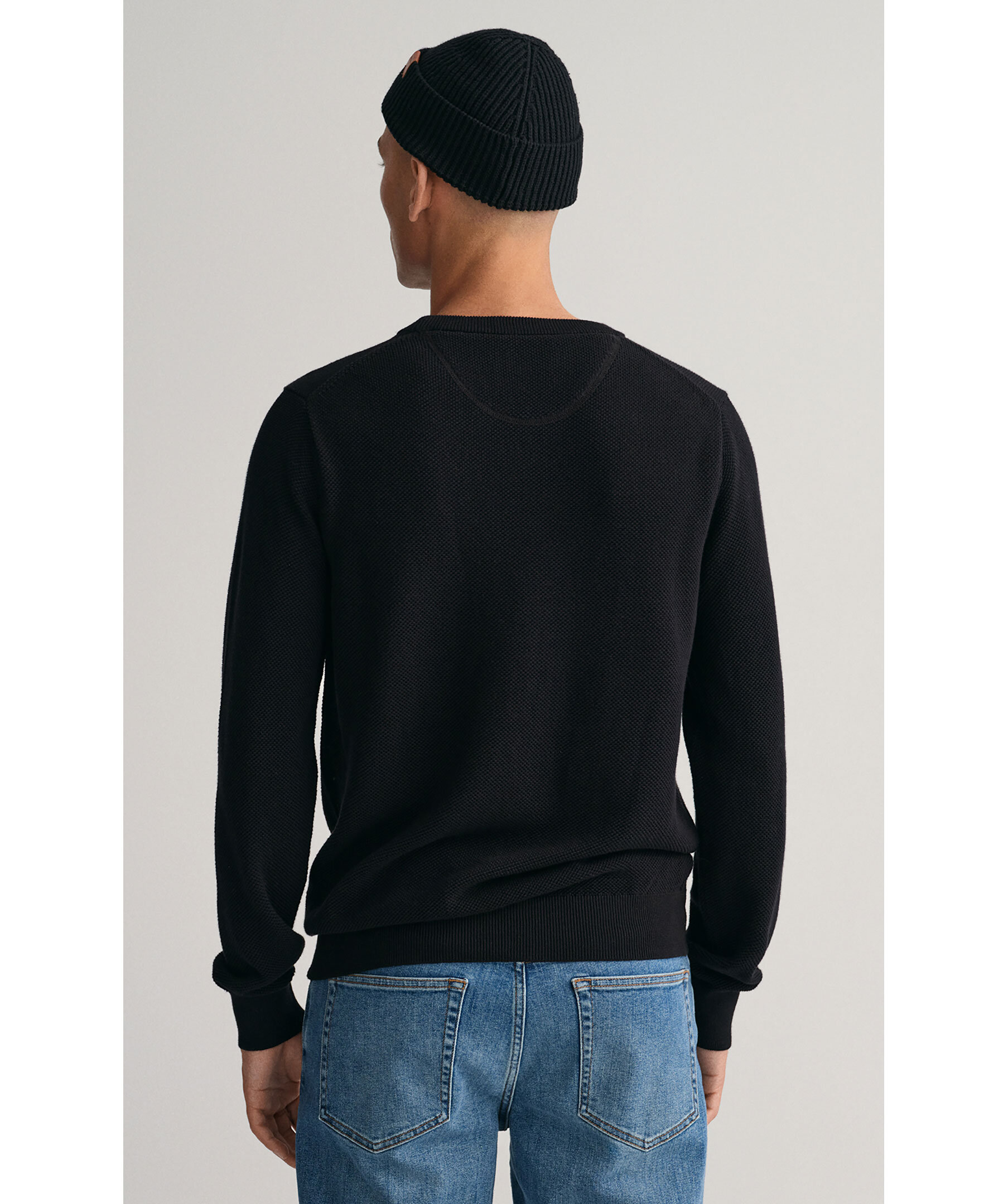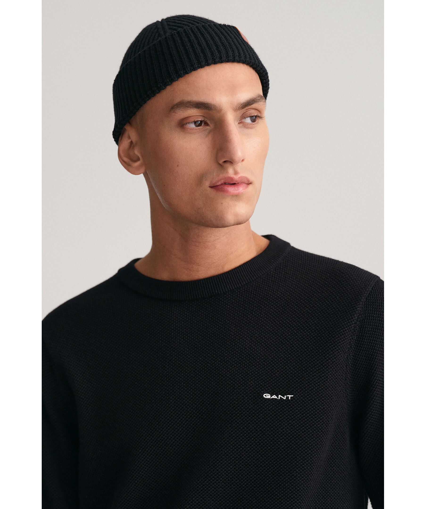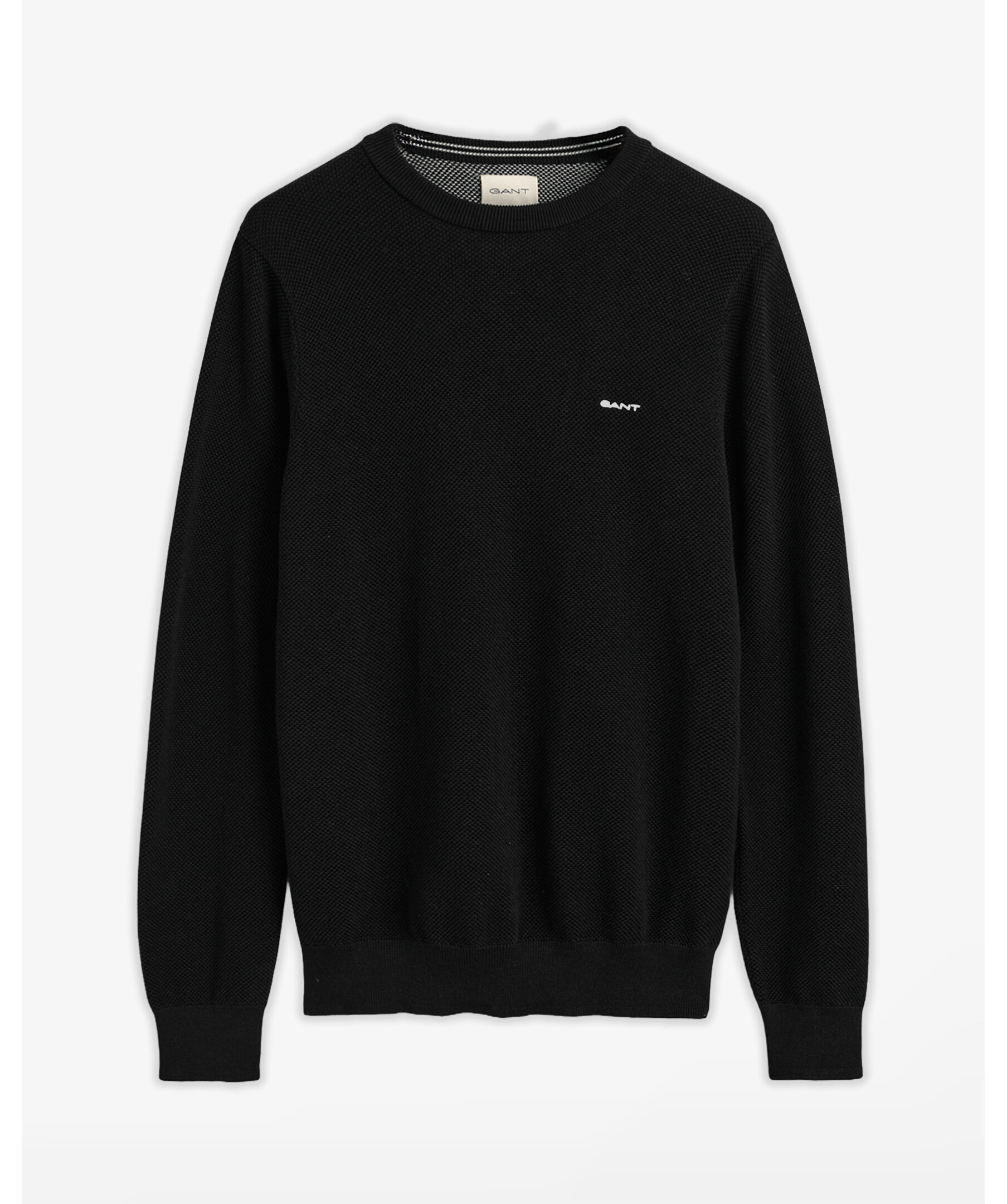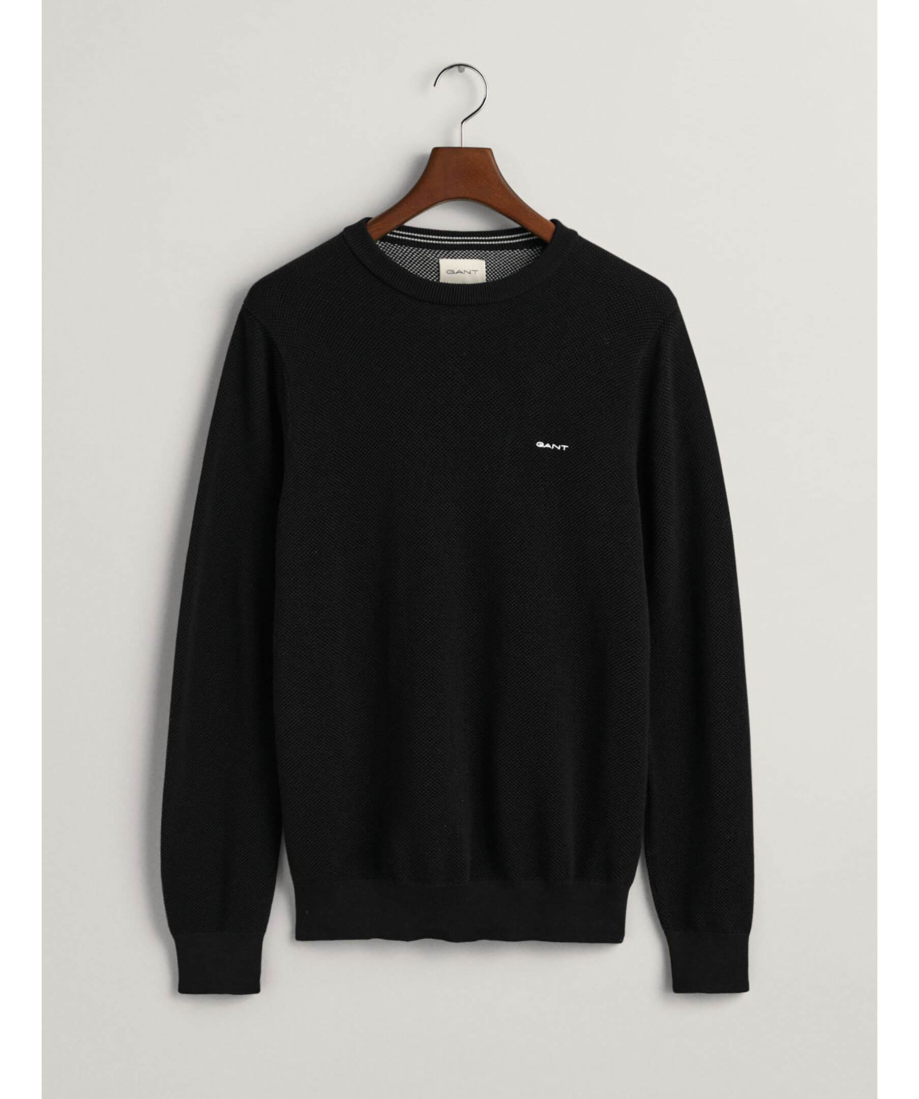 Svart tröja i tunn bomullspiké med rund halsringning för en enkel look från Gant. Den har en normal passform och vår klassiska GANT-logotyp broderad på bröstet. Ribbstickad krage och muddar. Den kommer garanterat bli en storfavorit i garderoben.