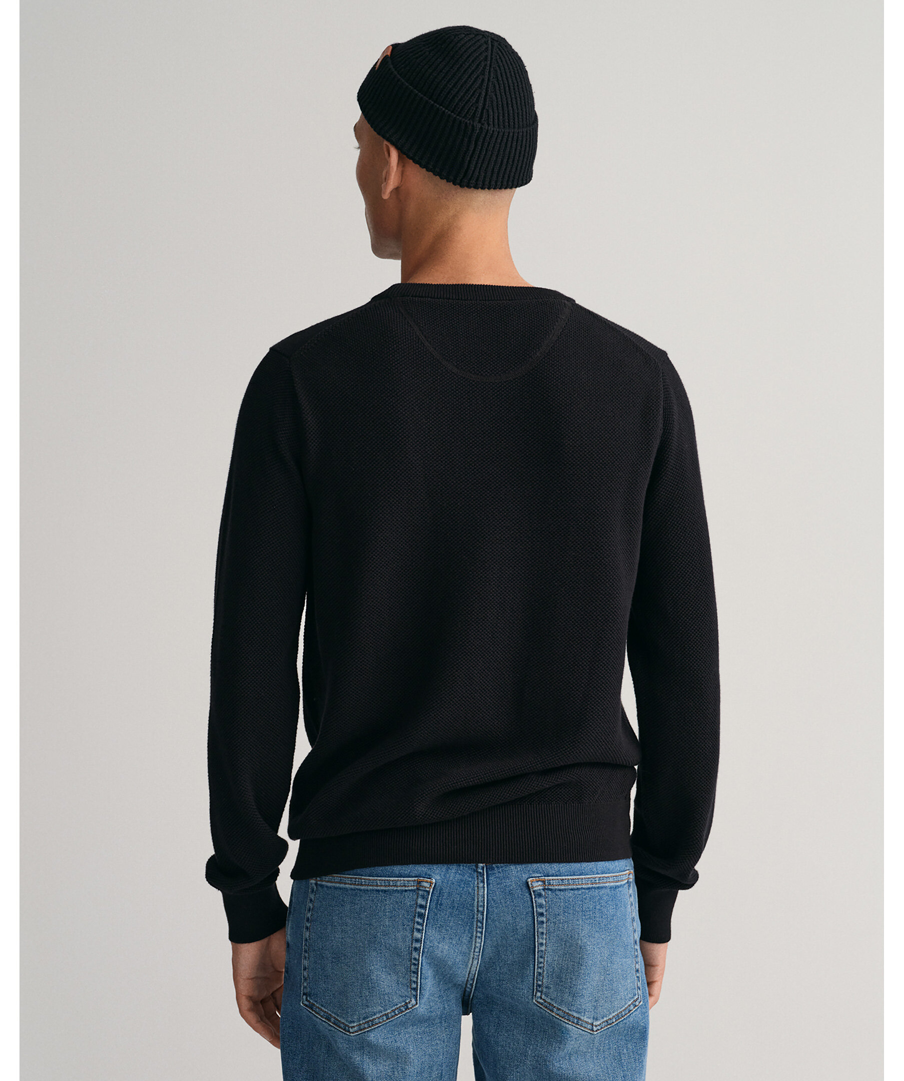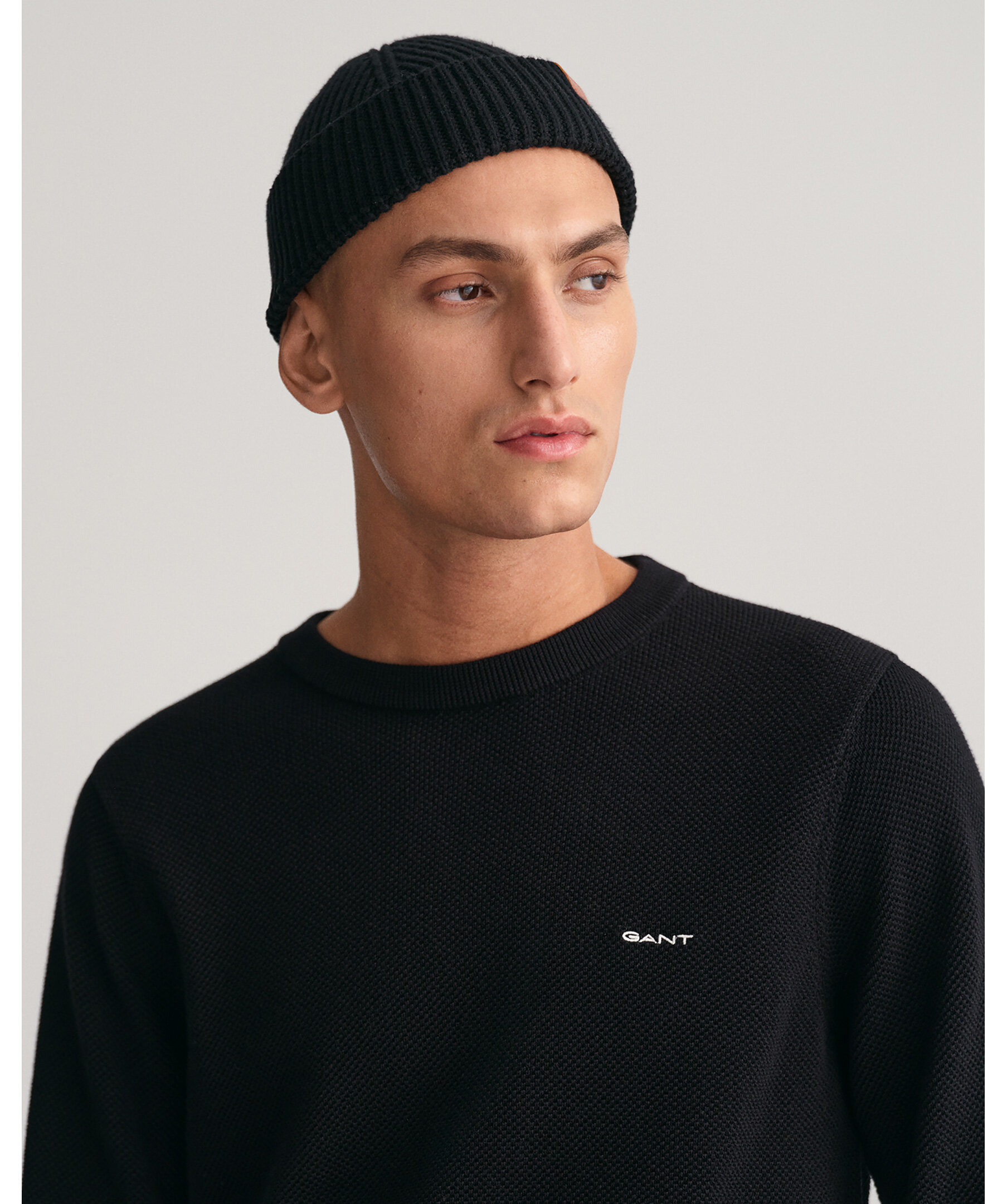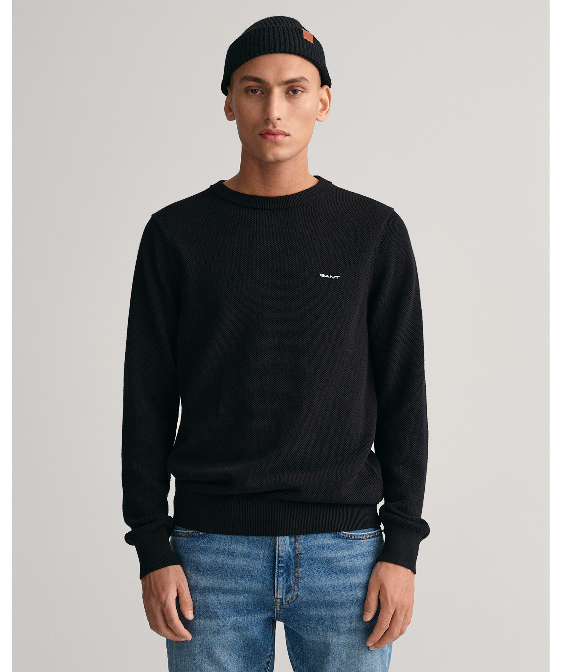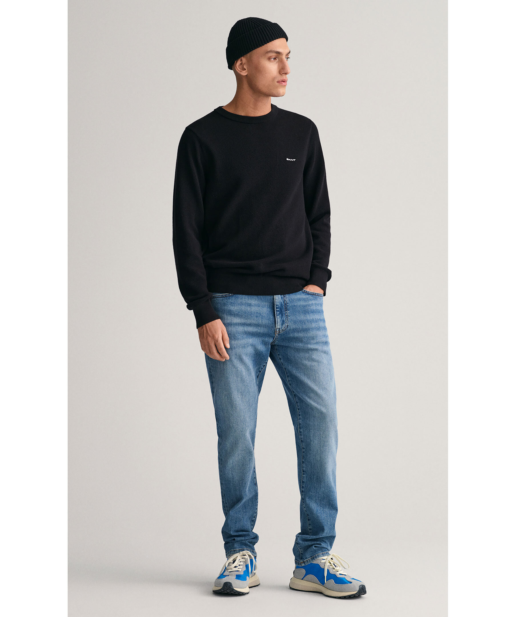 Svart tröja i tunn bomullspiké med rund halsringning för en enkel look från Gant. Den har en normal passform och vår klassiska GANT-logotyp broderad på bröstet. Ribbstickad krage och muddar. Den kommer garanterat bli en storfavorit i garderoben.