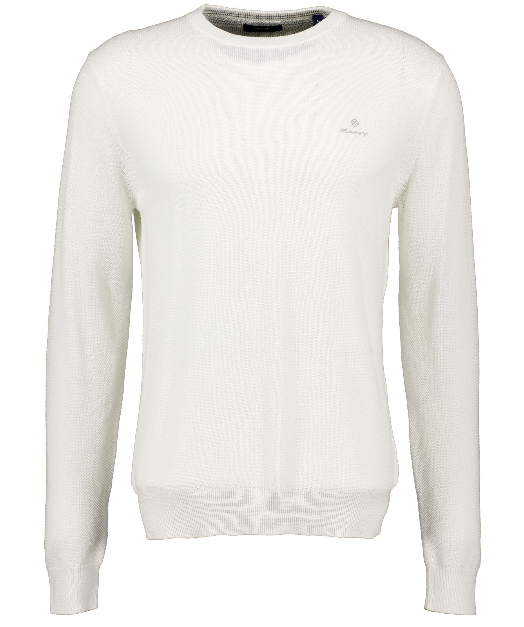 Vit långärmad tröja i pikéstruktur från Gant. Broderad logotyp i grått på bröstet. Normal passform, rundad hals och ribbade muddar.