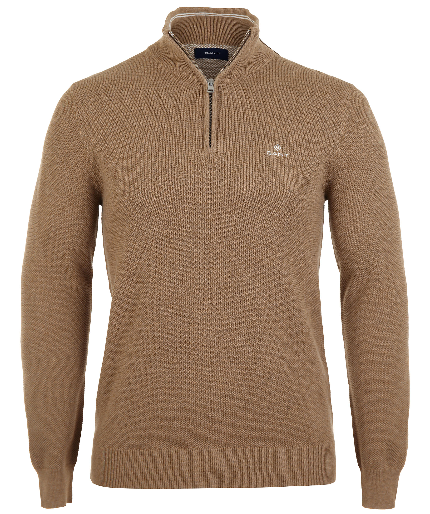Brun stickad pullover från Gant. Tillverkad i 100% bomull. Broderad logga på bröstet, half zip-krage.