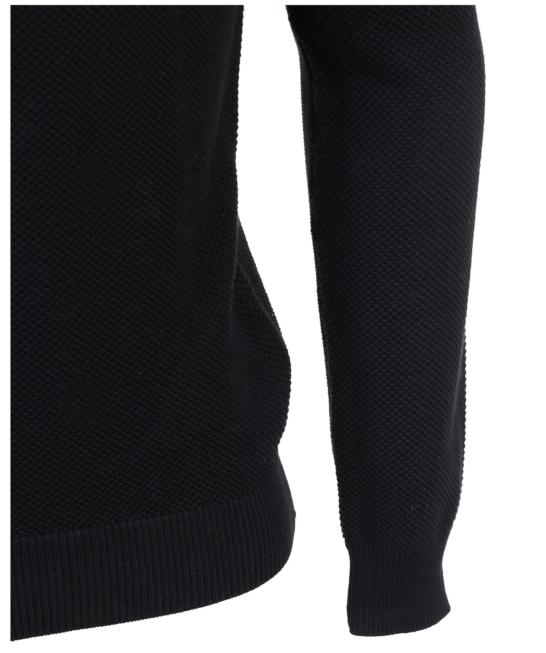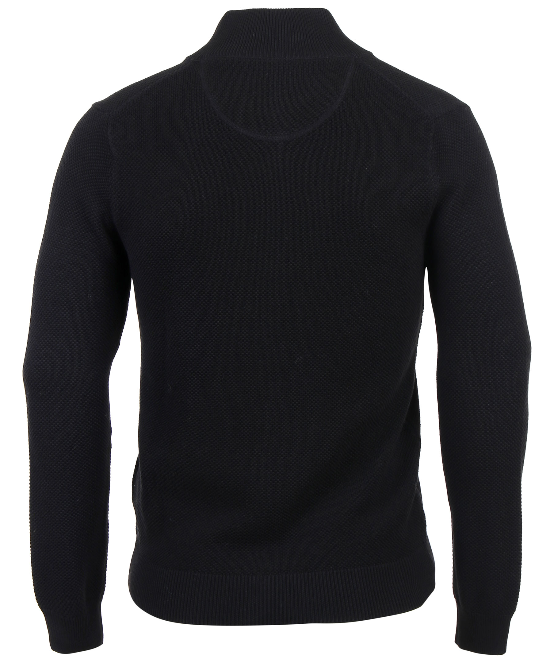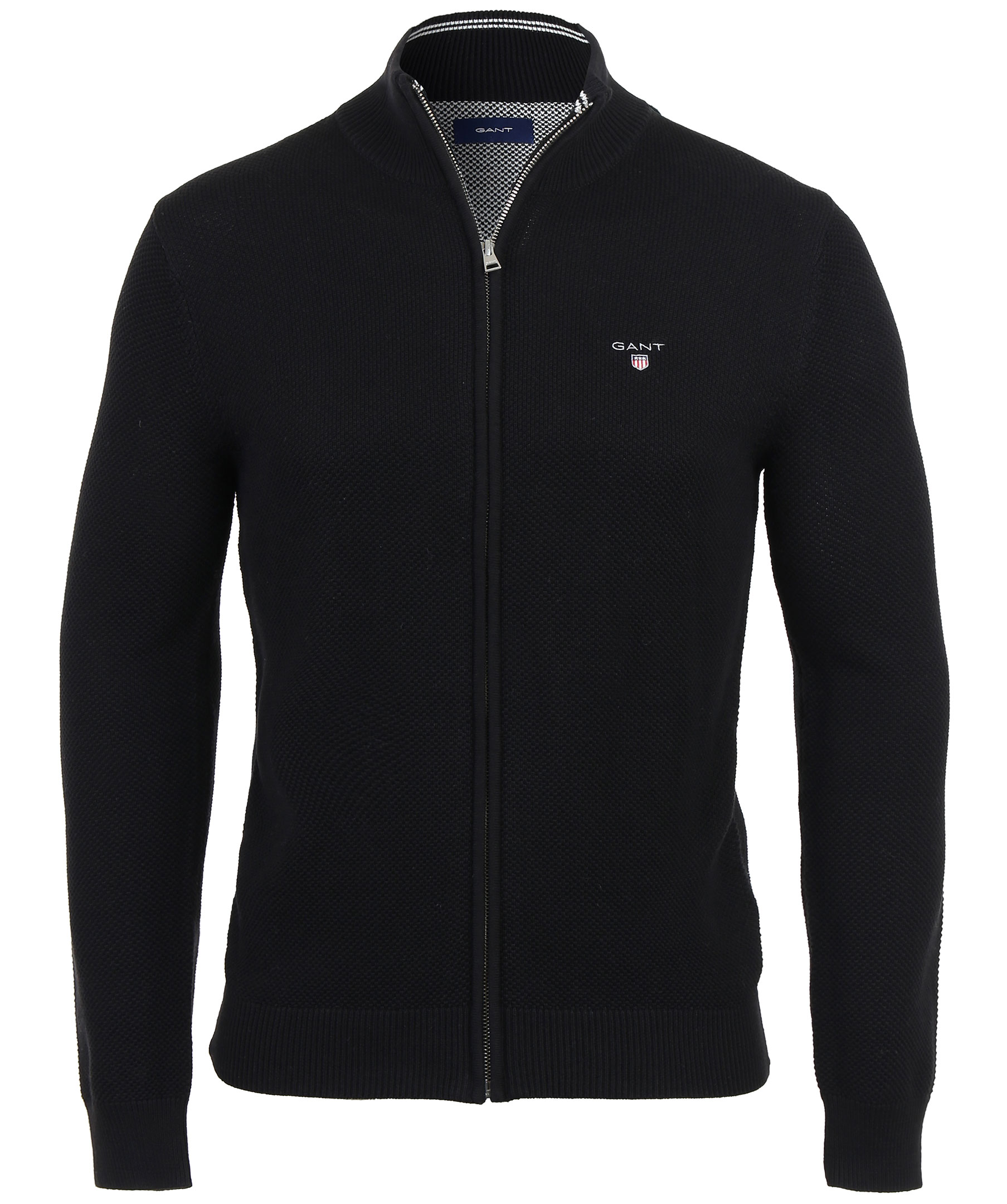 Svart stickad kofta i bomull från Gant. Tröjan stängs med dragkedja, broderad logotyp på bröstet på vänster sida och ribbstickad krage, ärm och plaggslut.