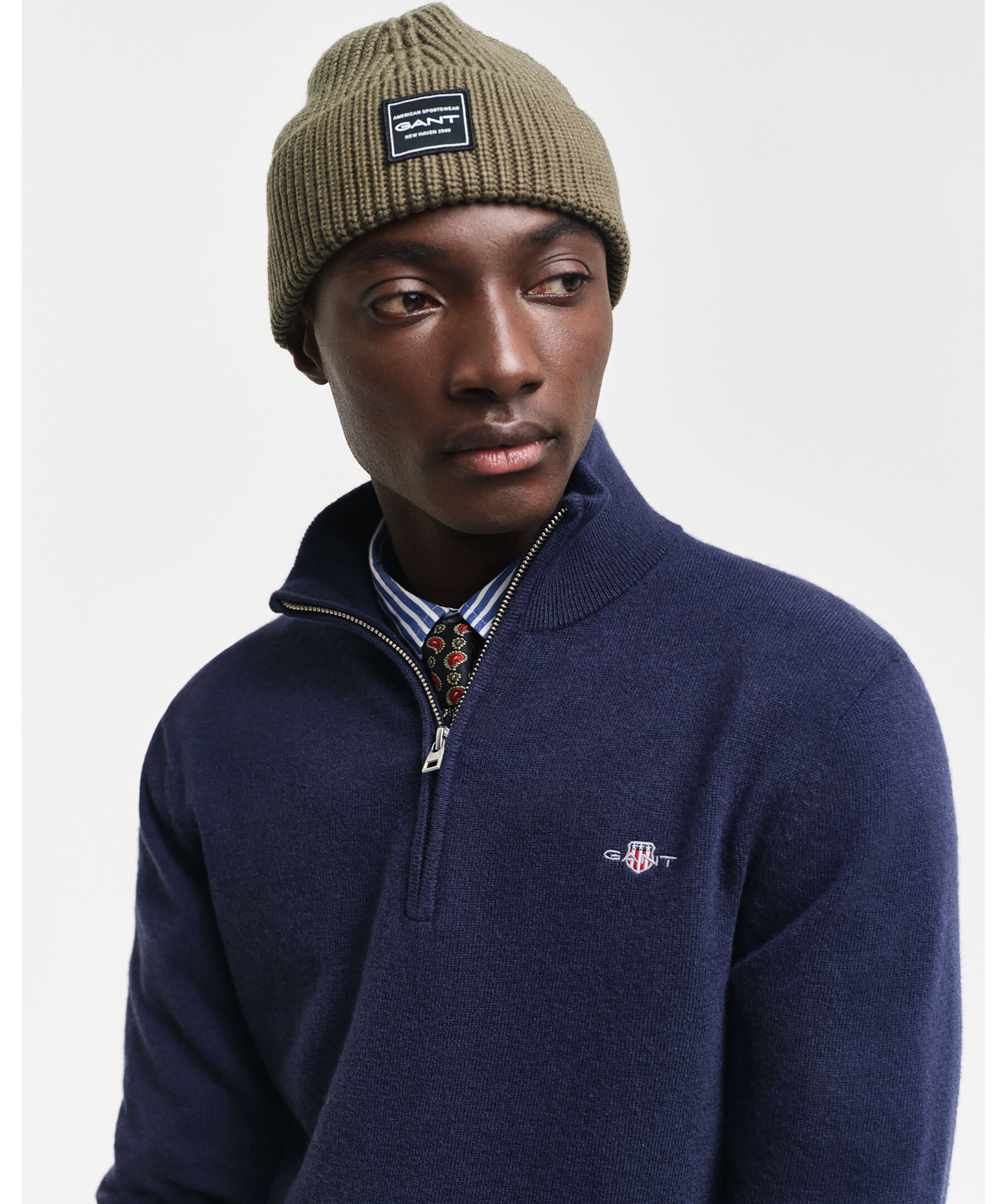 Olivgrön ribbstickad mössa från GANT. Snygg uppvikt kant med GANT-flaggan. Den är ett måste på vintern.