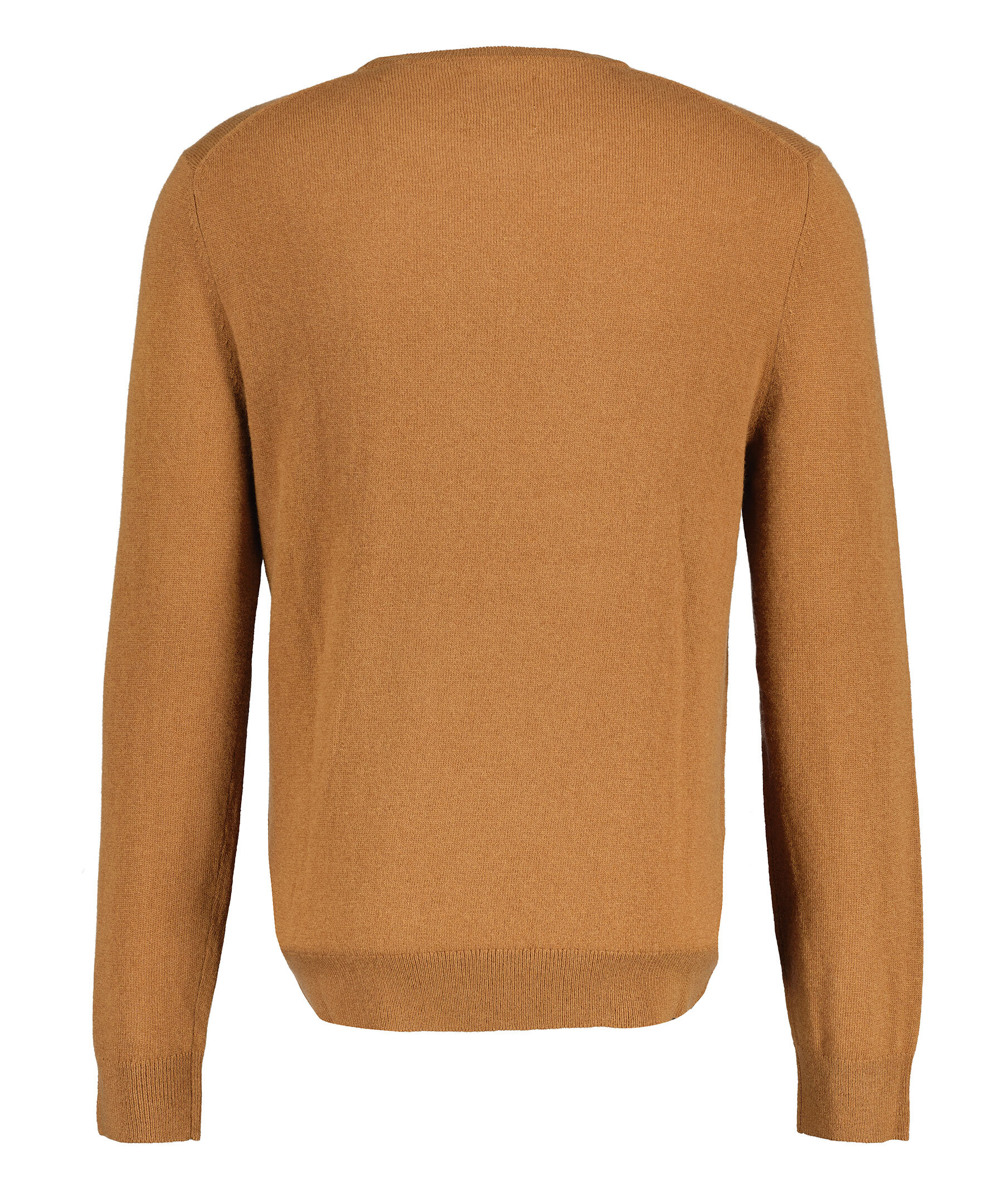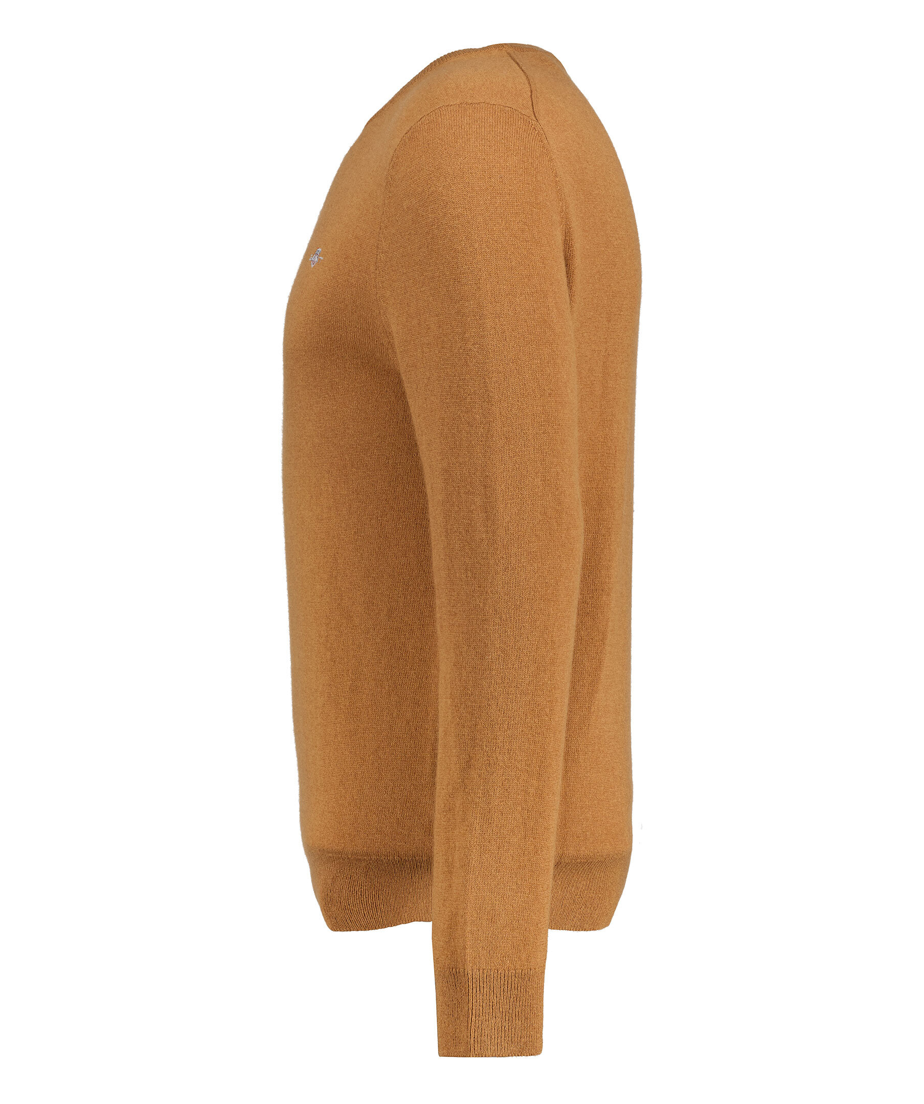 Brun, stickad tröja från Gant. Tröjan har en rund, ribbstickad halsringning, ribbstickade muddar vid ärm- och plaggslut samt en liten broderad sköldlogotyp på bröstet. Tillverkad i en ullblandning.