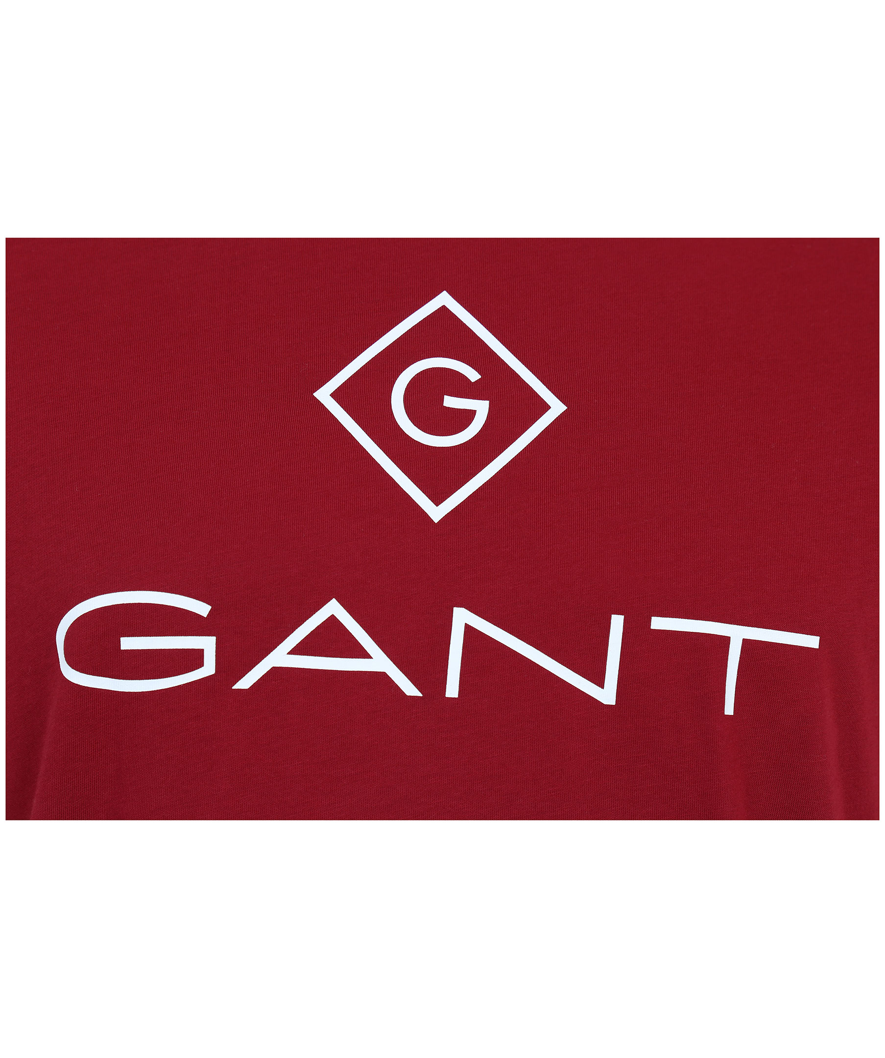 Mörkröd t-shirt i 100% bomull från Gant. Stor vit logotyp mitt på bröstet.