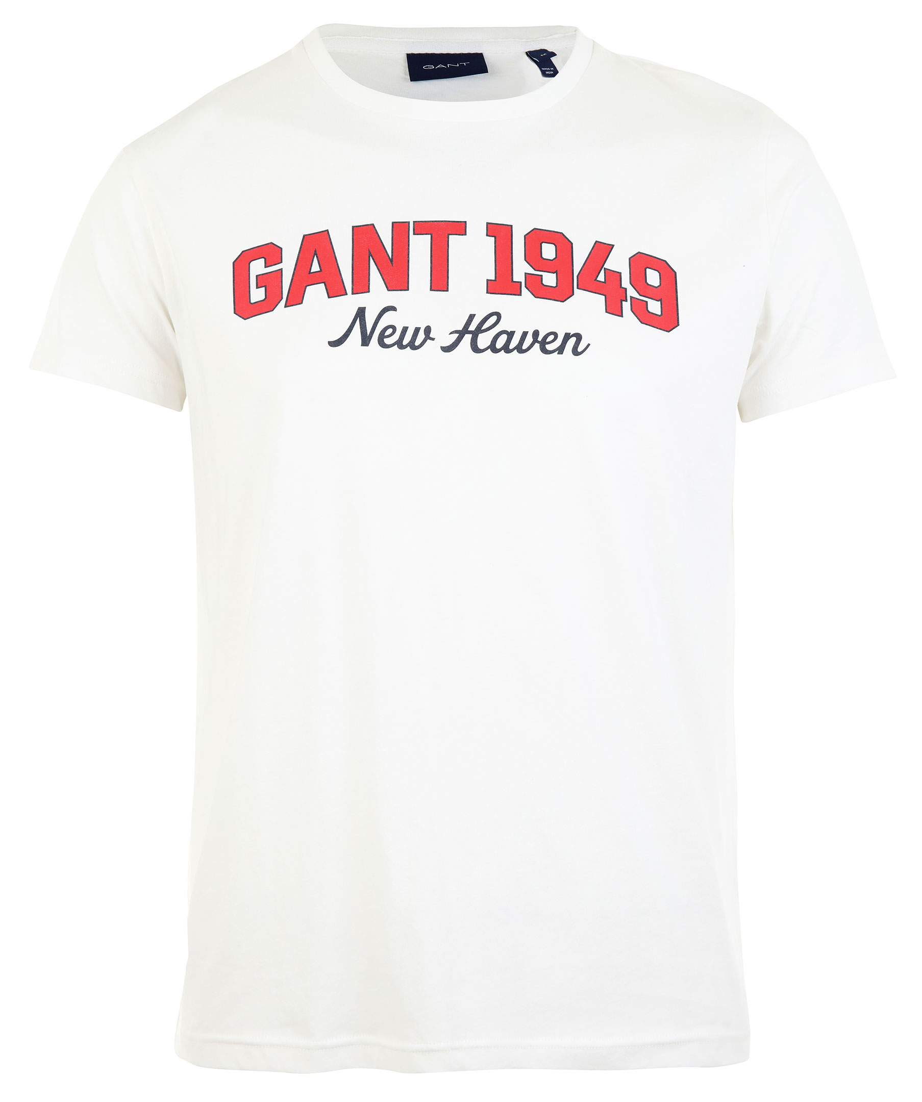 Vit t-shirt från Gant. Tillverkad i 100% bomull. Stort tryck på bröstet, rundad hals.