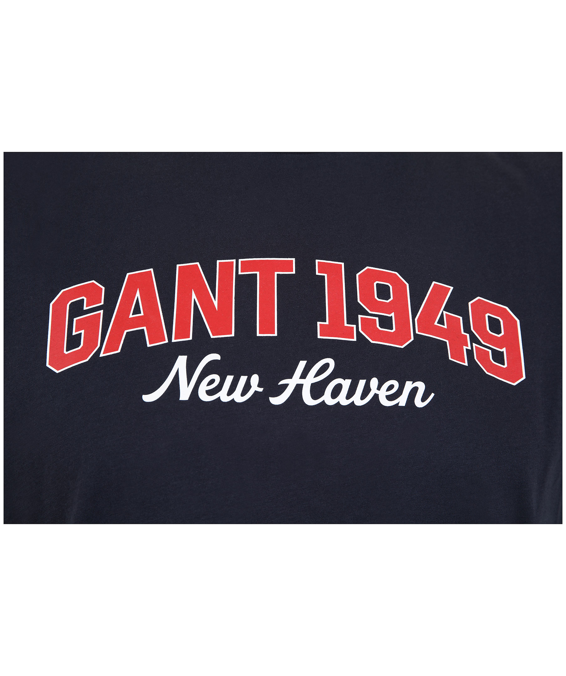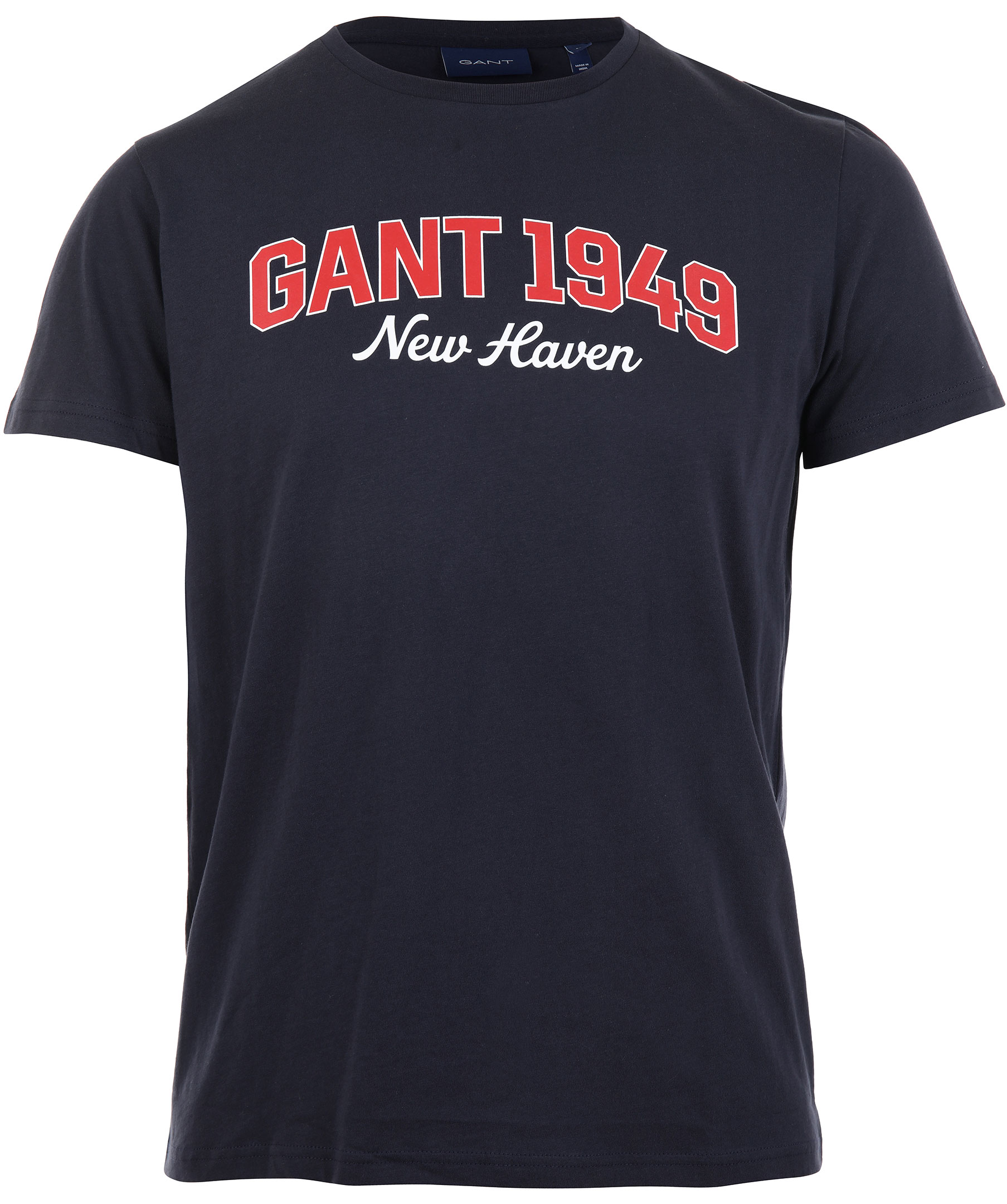 Marinblå t-shirt från Gant. Tillverkad i 100% bomull. Stort tryck på bröstet, rundad hals.