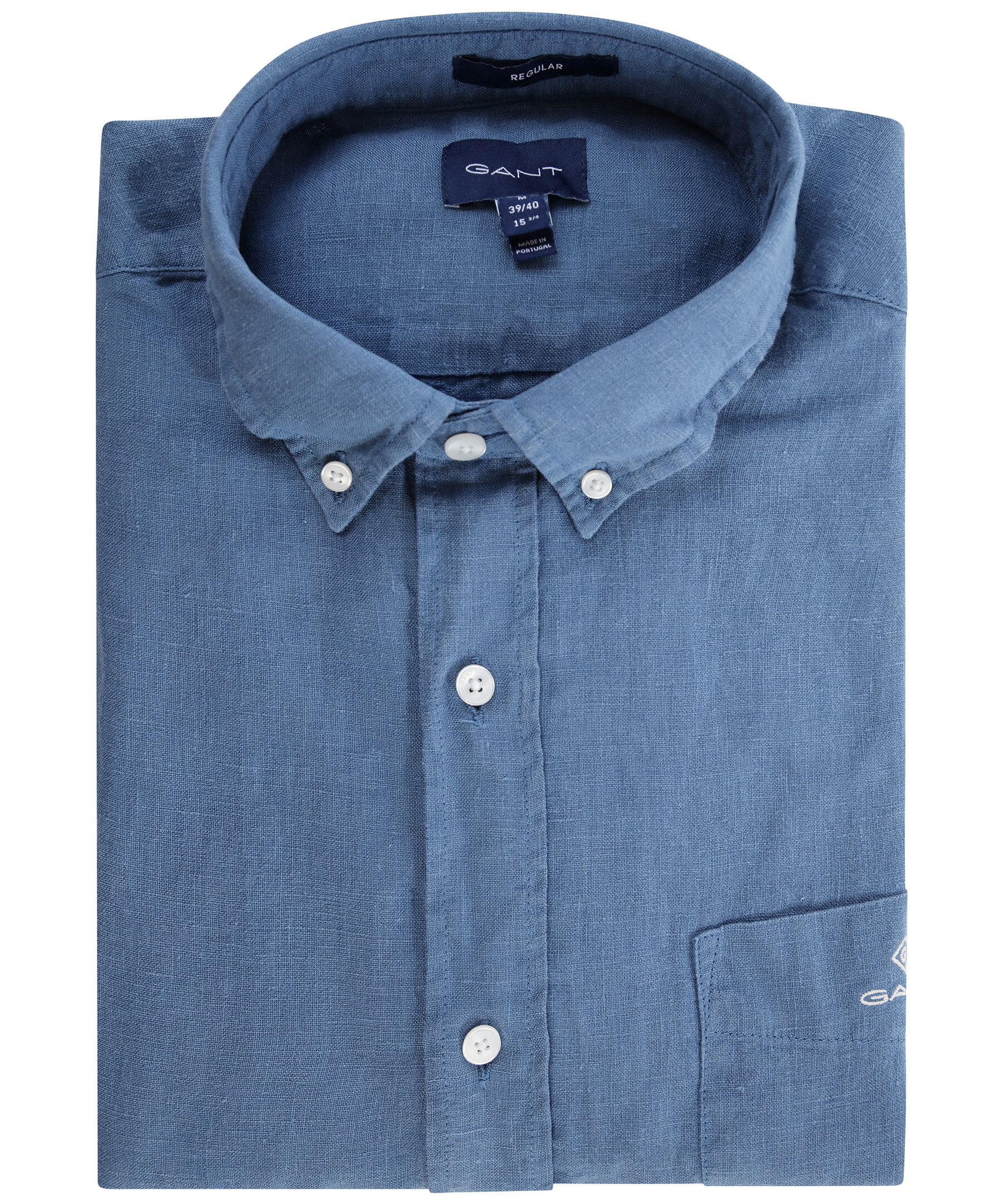 Blå långärmad linneskjorta från Gant. Skjortan är gjord i 100% linne och har en normal passform, button down-krage och en bröstficka med broderad logotyp. Perfekt skjorta till sommaren.
