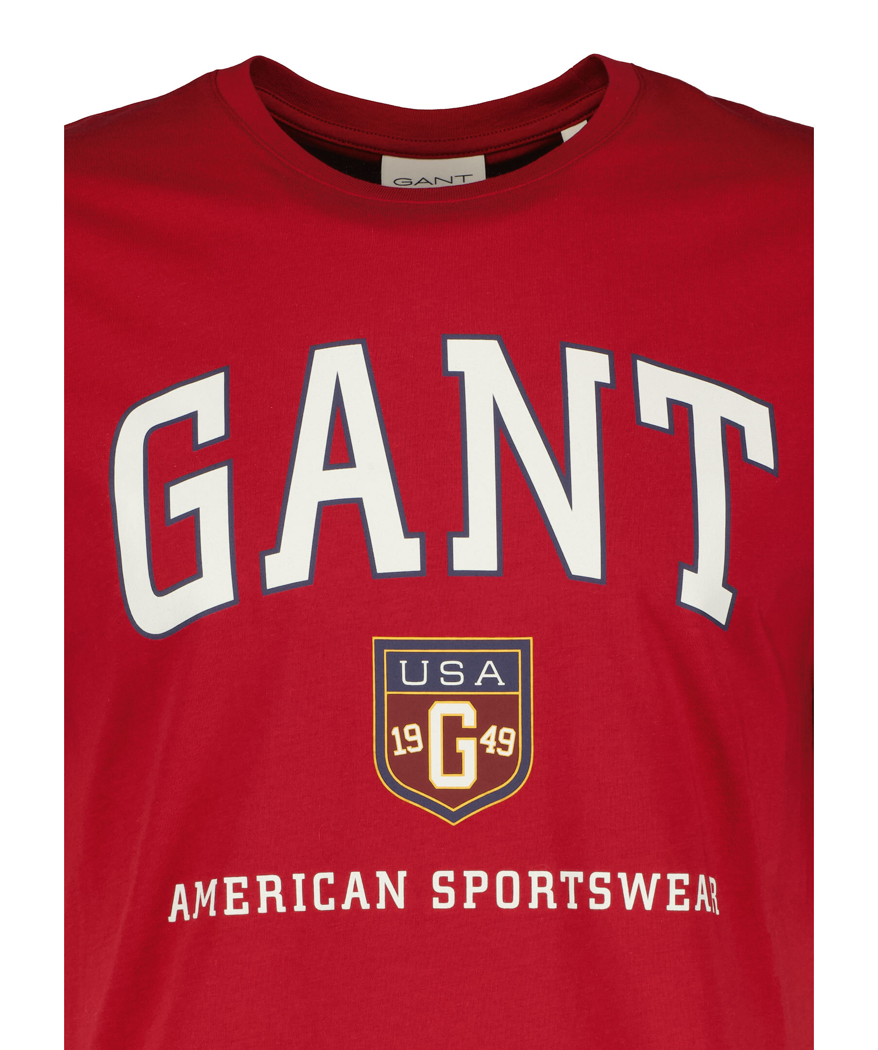 Röd t-shirt från Gant. Tröjan har rundad halsringning och stort tryck på framsidan. Tillverkad av 100% bomull.