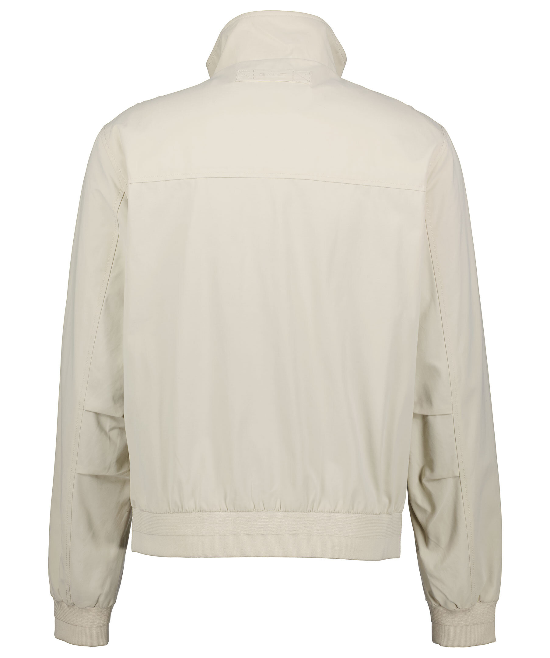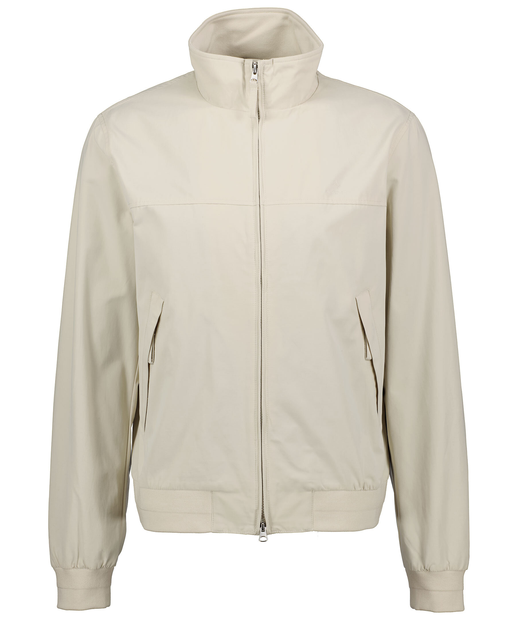Beige jacka från Gant. Stängs framtill med tvåvägsdragkedja. Ribbstickade muddar i ärm-, plaggslut och på kragens insida. Två fickor framtill med dragkedja. Broderad logotyp på vänster bröst. Ögla i nacken med broderad logotyp.