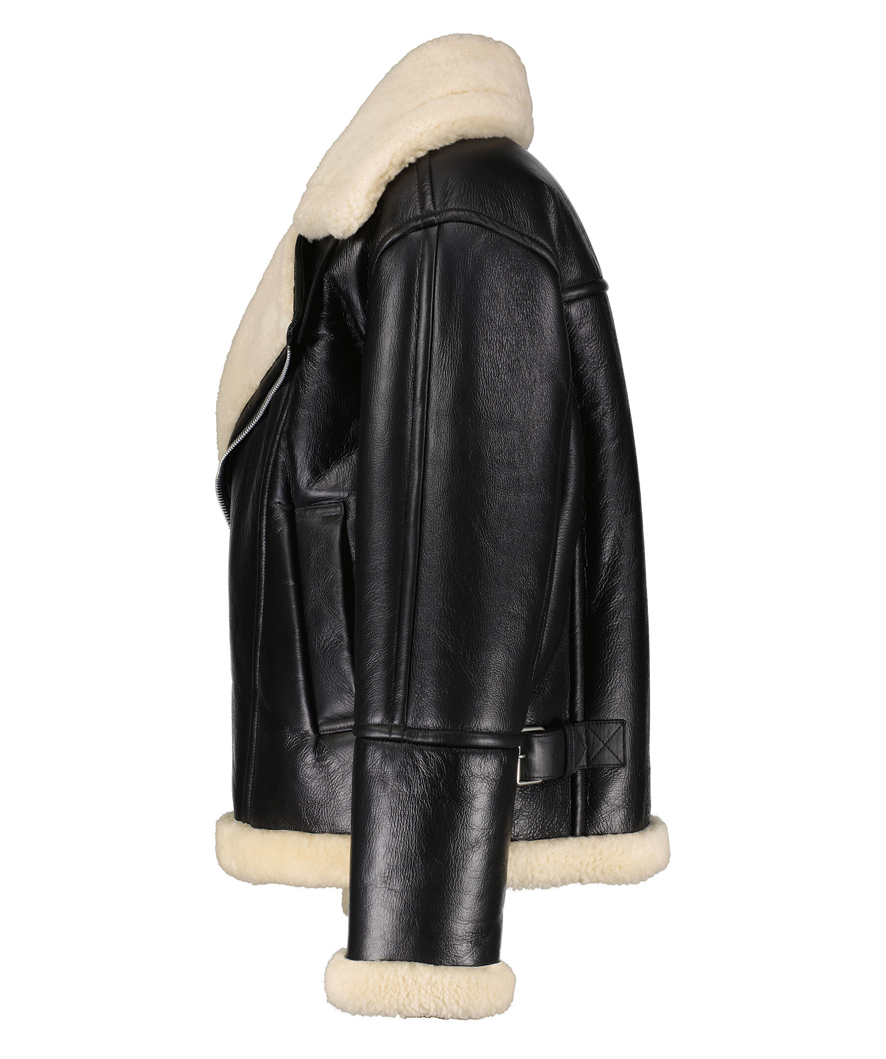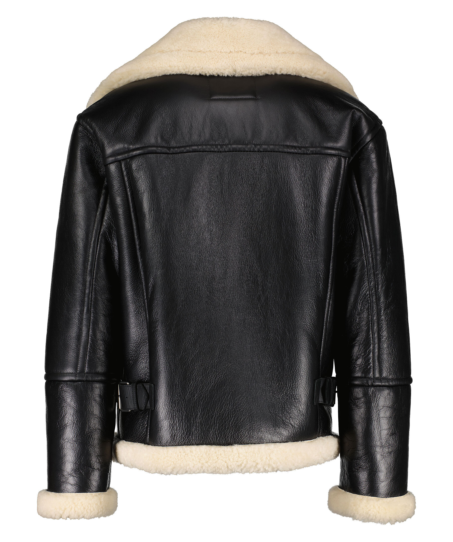 Svart läderjacka från Gant inspirerad av den klassiska pilotjackan. Gjord i 100% lammskinnspäls, som snabbt blir din nya favorit. Den är gjord i ansvarsfullt framtagna material och har en mjuk päls på insidan för premiumvärme och -komfort. Jackan når till höften och har en elegant dragkedja i metall, spänne vid kragen och i sidorna och två passpoalfickor. Plagget har en relaxed fit. För en mer figurnära passform rekommenderar vi att du väljer en mindre storlek.