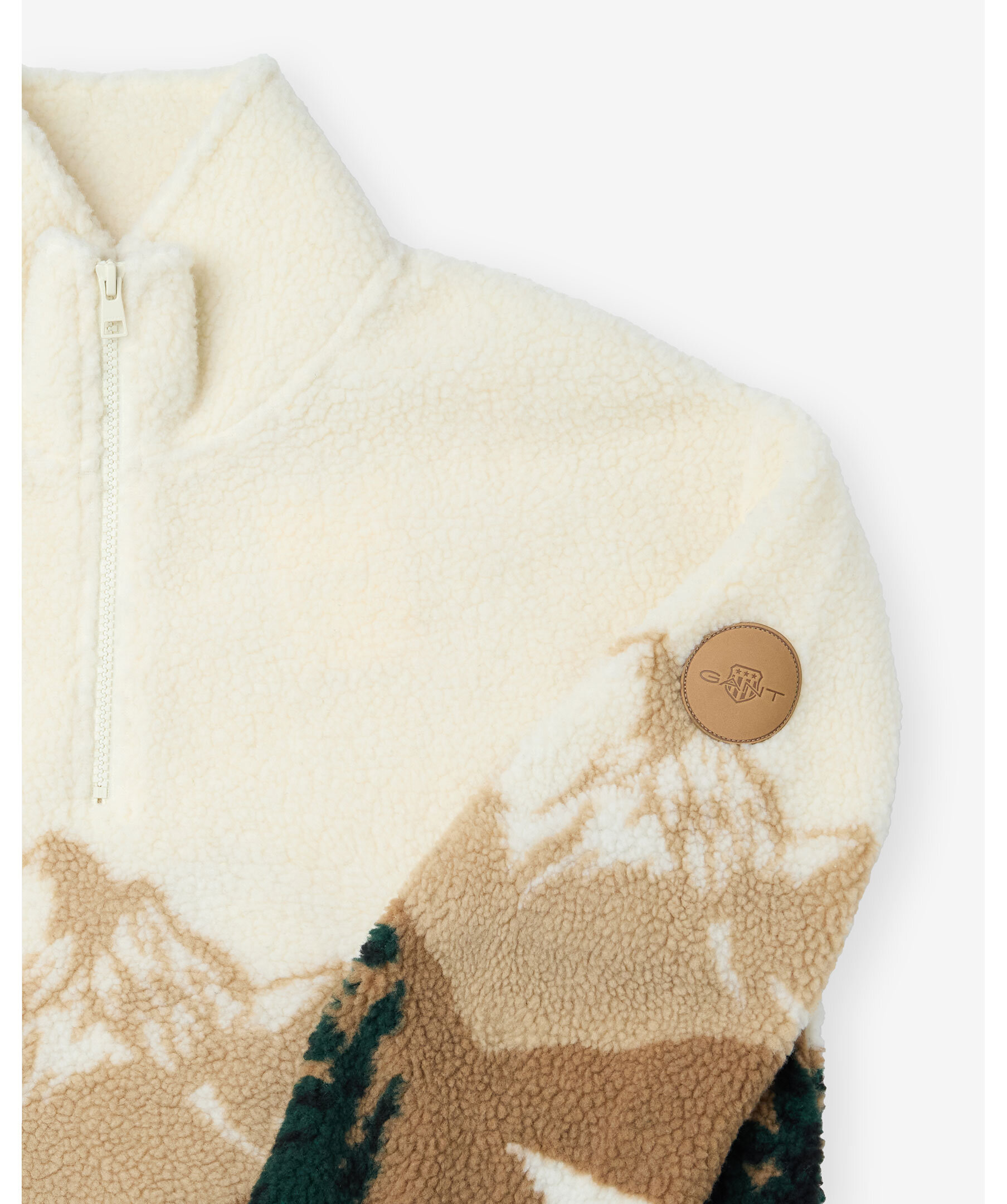 Multifärgad fleece med half-zip från Gant. Fleecen är krämvit upptill och mörkgrön samt brun nedtill. Märke med logotyp på vänster ärm. Tillverkad i polyester.