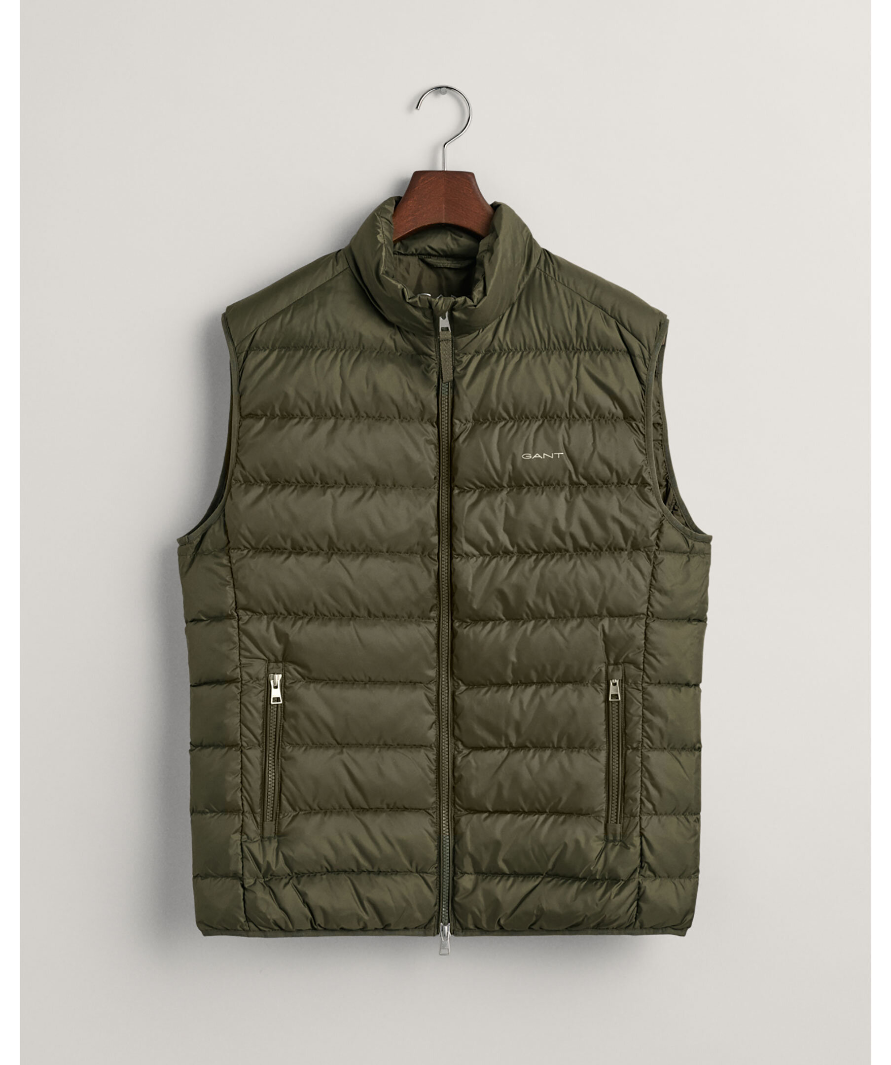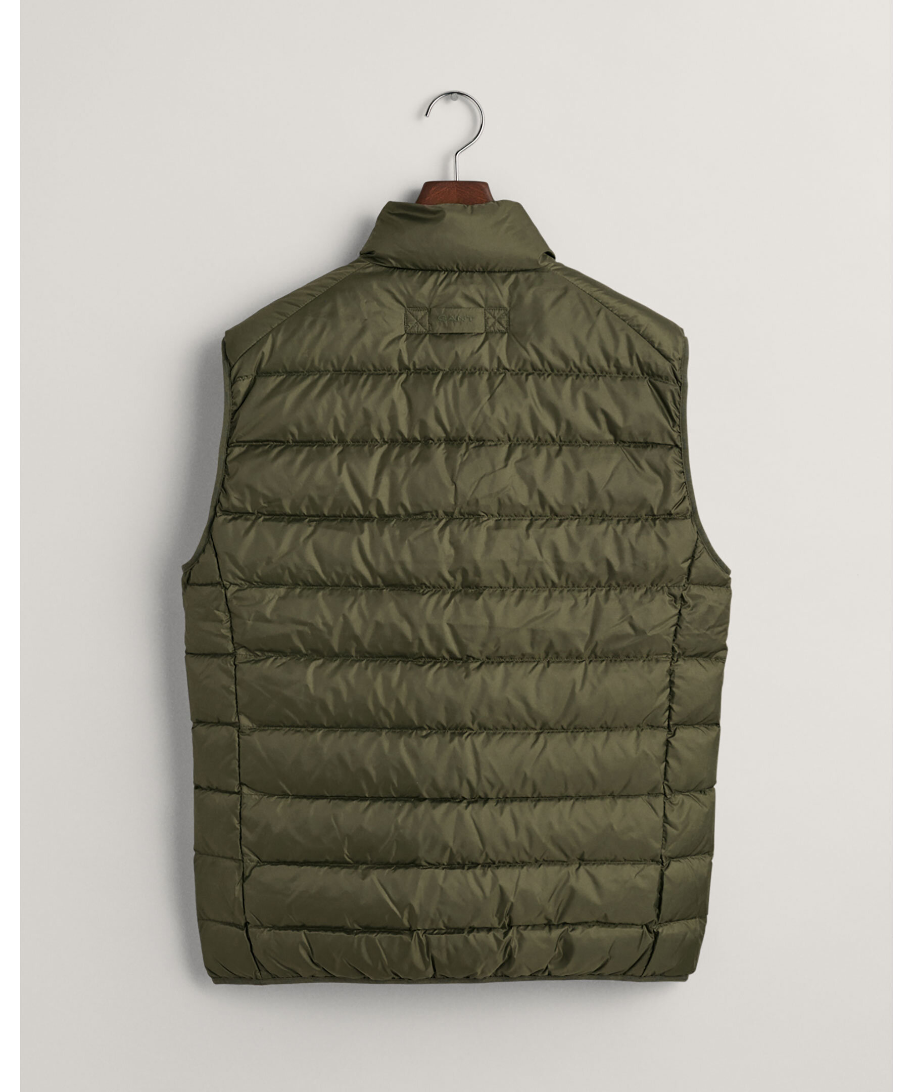 Grön dunväst från Gant.Västen stängs med dragkedja och har två sidfickor samt en innerficka med dragkedja. Tryckt GANT-logotyp på bröstet. Västen är vattenavvisande och helfodrad. Tillverkad i polyester.