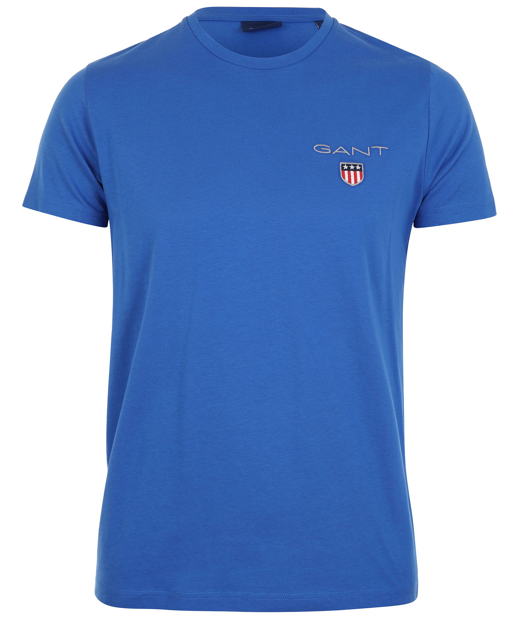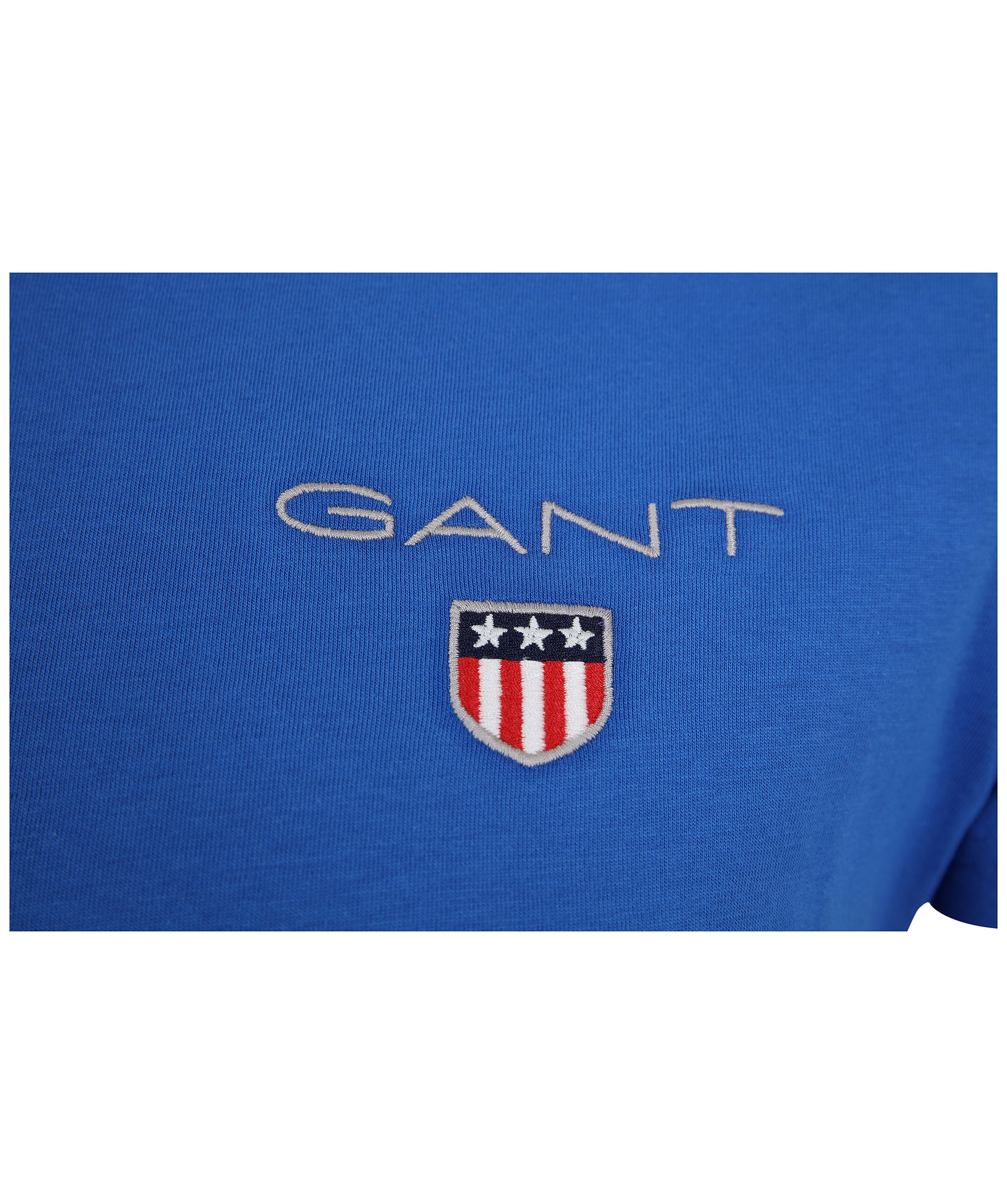 Kornblå t-shirt i 100% bomull från Gant. Broderad logotyp till vänster på bröstet. Rundad halsringning.